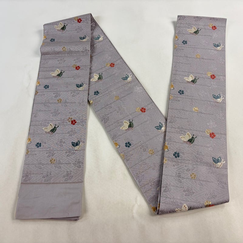 【半幅帯】 灰色系 灰紫 名品 B 帯丈401cm~425cm 9990-29990 二万以下