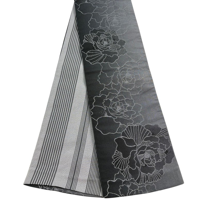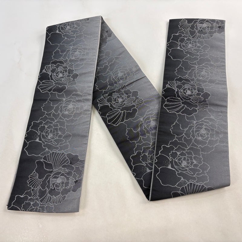 【半幅帯】 灰色系 黒灰 優品 B 帯丈355cm以下 7990-9980 二万以下