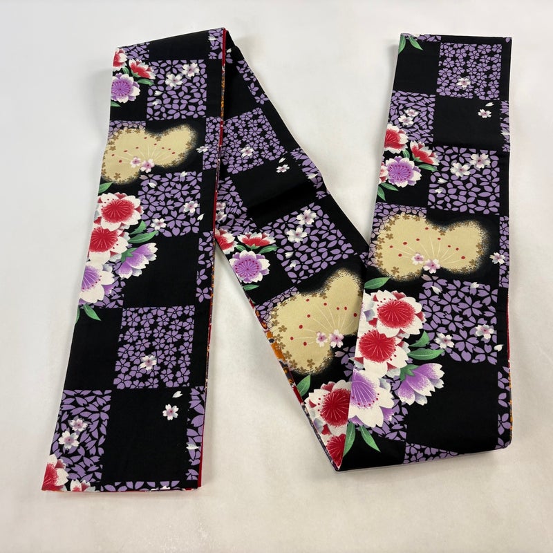 帯の幅が半分で扱いやすい半幅帯でございます。 手軽に締められるのが魅力です。 浴衣や買い物などの普段使いのほか、色柄によってはお出かけや気軽なパーティにもご使用いただけます。 帯結びも色々ありますので可愛らしい装いから粋なスタイルまでお楽しみいただけます。 締め跡がございますが、目立ったシミ汚れは無くリユース品としては状態の良いお品でございます。 沢山の商品の中からご覧いただき誠にありがとうございます。