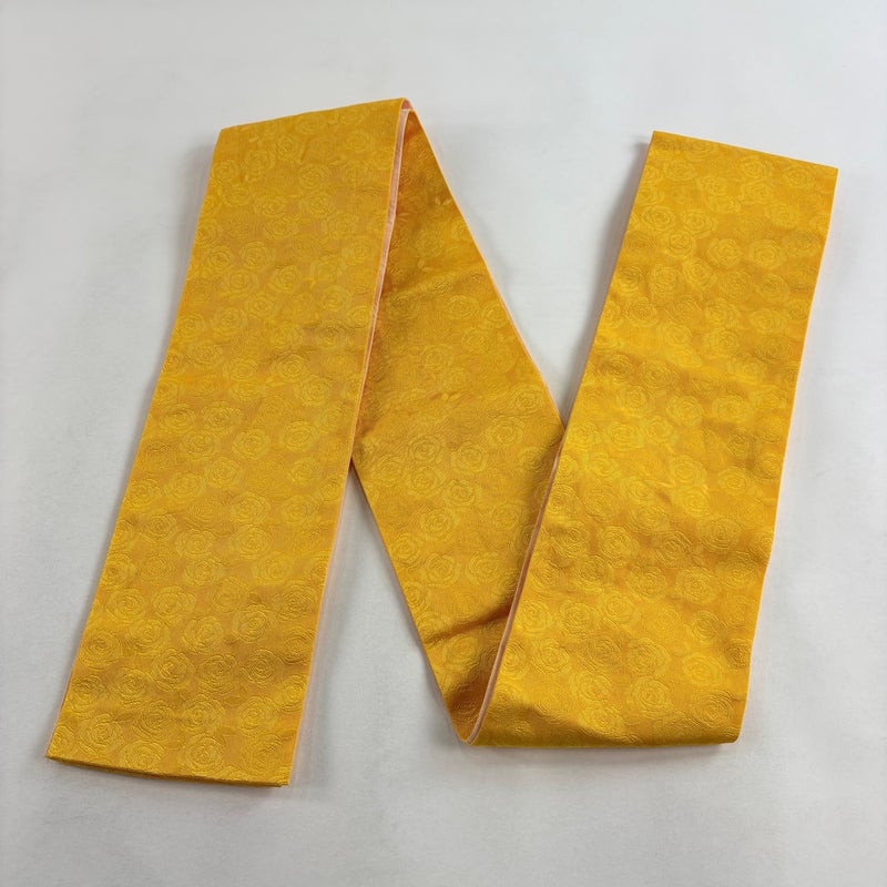帯の幅が半分で扱いやすい半幅帯でございます。 手軽に締められるのが魅力です。 浴衣や買い物などの普段使いのほか、色柄によってはお出かけや気軽なパーティにもご使用いただけます。 帯結びも色々ありますので可愛らしい装いから粋なスタイルまでお楽しみいただけます。 帯の締め跡がありますが、まだまだご活用頂けると思われます。 沢山の商品の中からご覧いただき誠にありがとうございます。