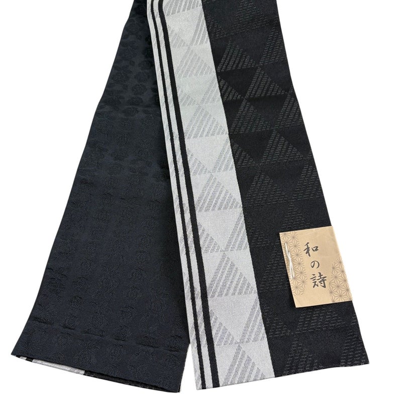 【半幅帯】 灰色系 黒灰 優品 A 帯丈356cm~365cm 7990-9980 美品 二万以下