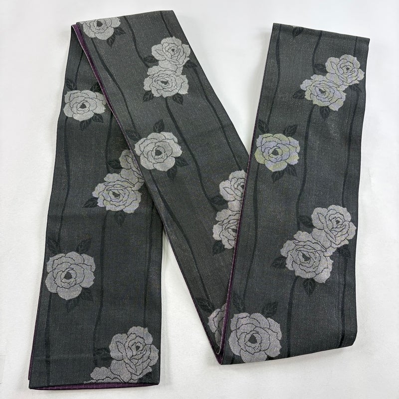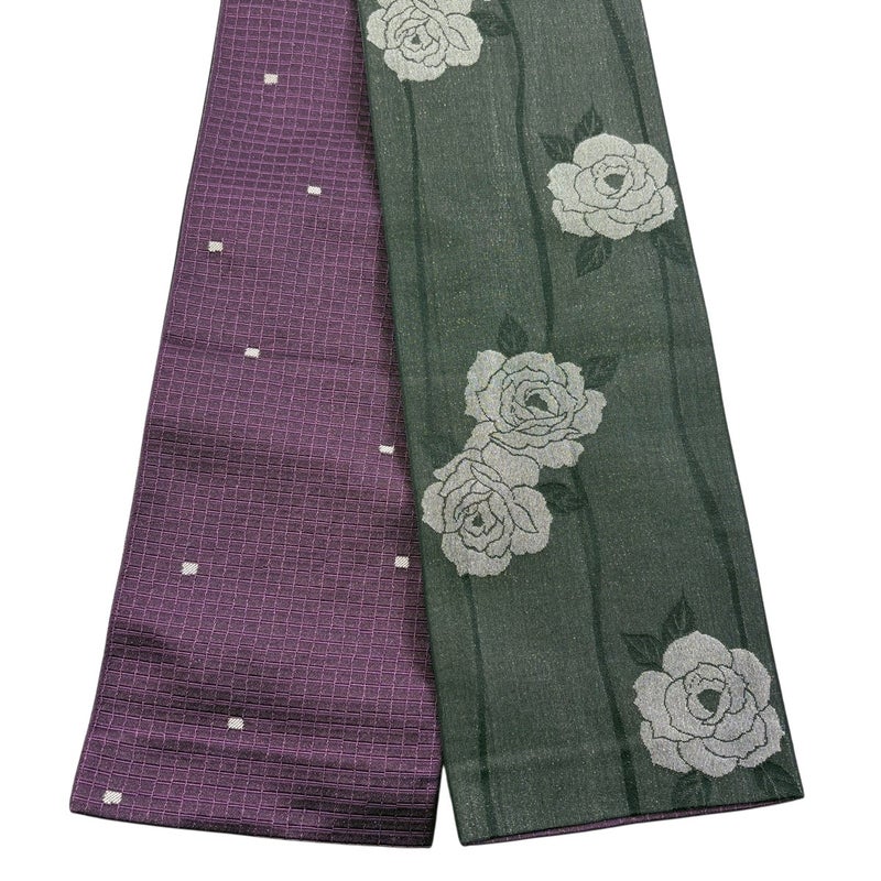 帯の幅が半分で扱いやすい半幅帯でございます。 手軽に締められるのが魅力です。 浴衣や買い物などの普段使いのほか、色柄によってはお出かけや気軽なパーティにもご使用いただけます。 帯結びも色々ありますので可愛らしい装いから粋なスタイルまでお楽しみいただけます。 ※商品の仕立て上、手先垂先の織り出し口から裏地がはみ出ております。 締め跡、表地裏地所々に使用によるシワがございますが、まだまだご活用頂けると思われます。 沢山の商品の中からご覧いただき誠にありがとうございます。