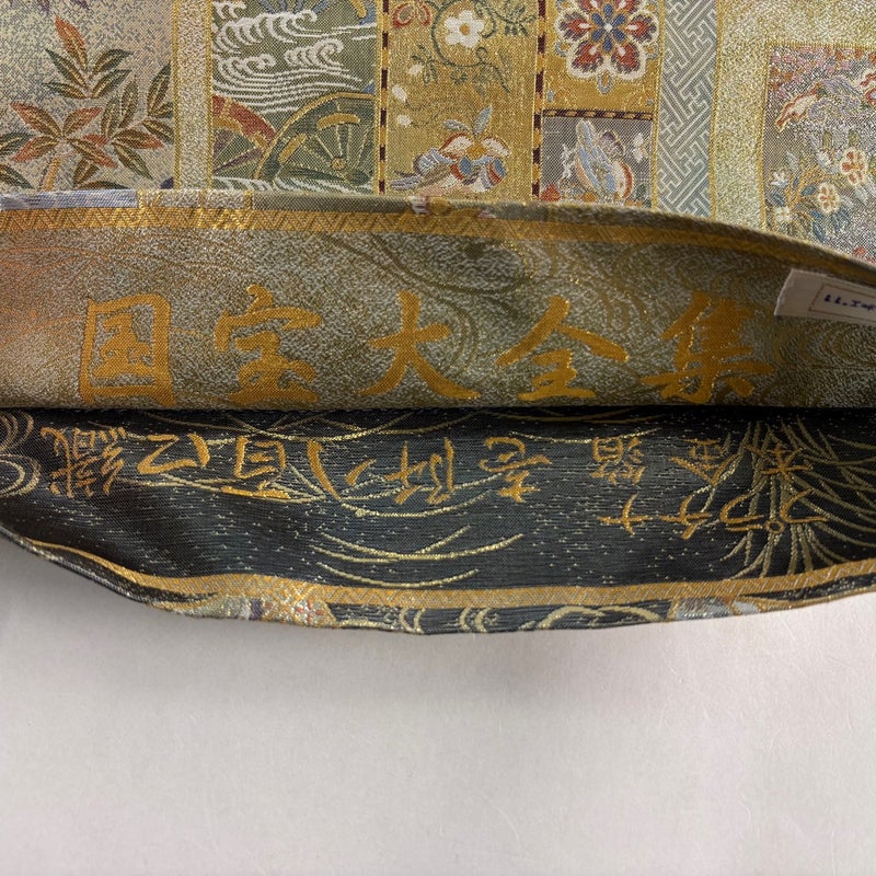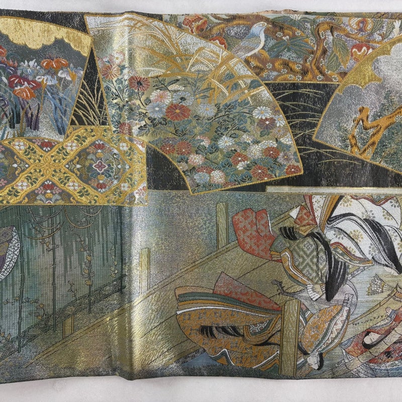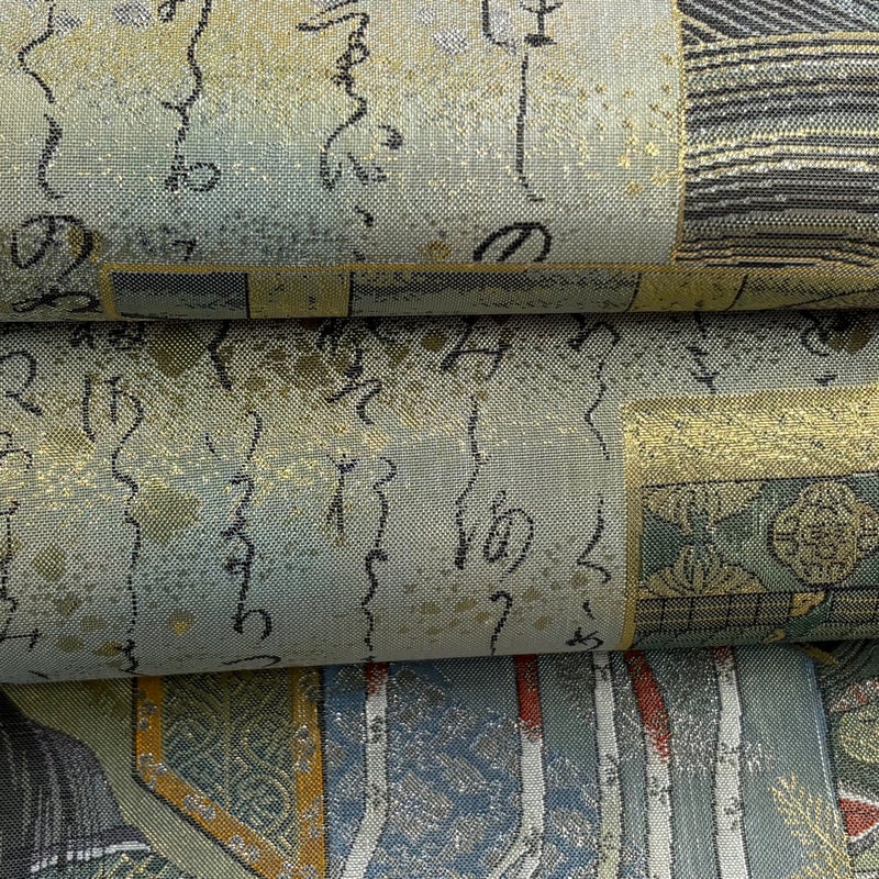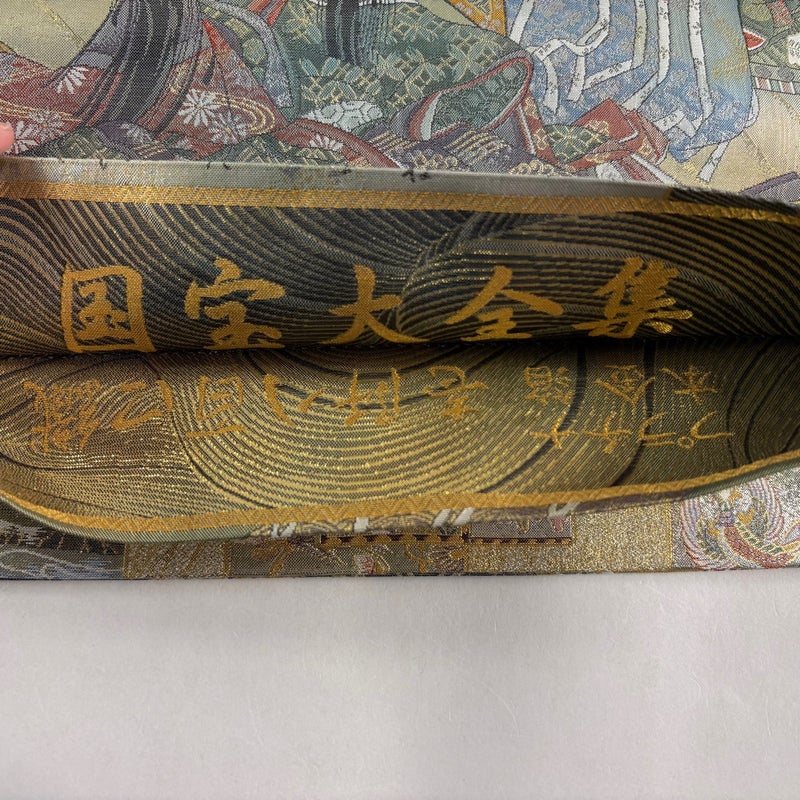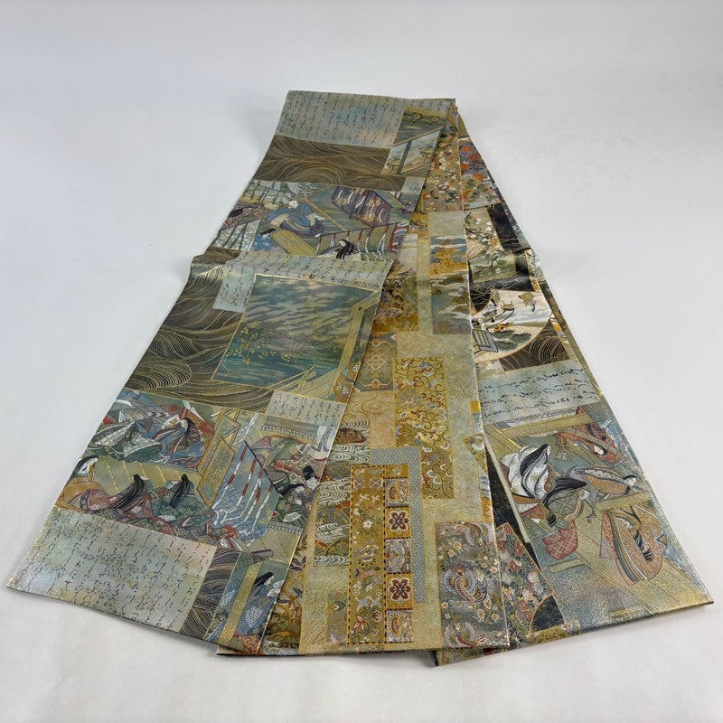 【丸帯】 灰色系 灰緑 名品 A 帯丈436cm以上 9990-29990 美品 二万以下