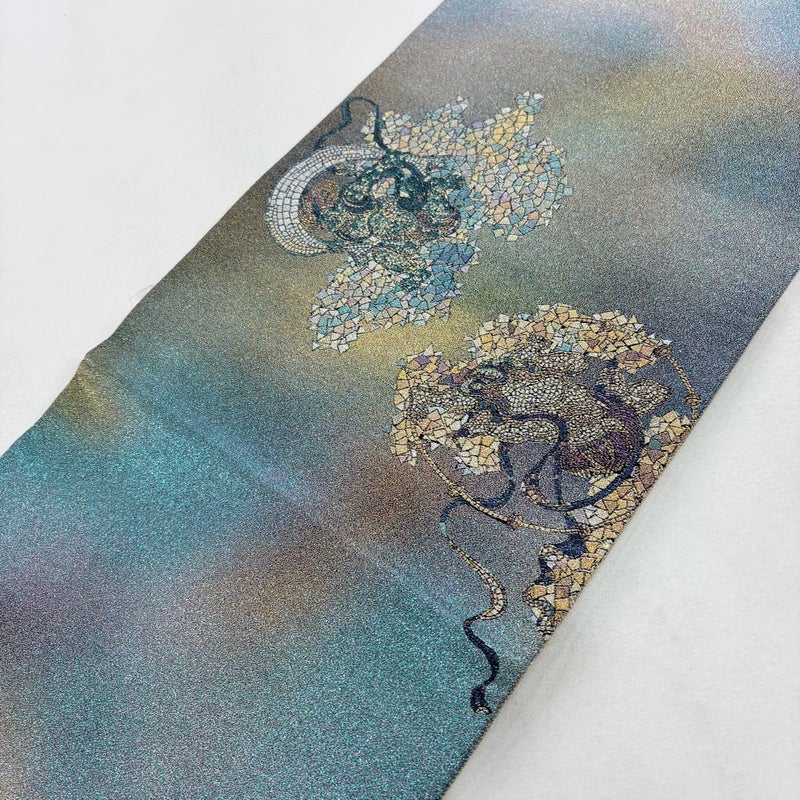 【丸帯】 青系 青緑 逸品 A 帯丈436cm以上 30000- 美品 五万以下