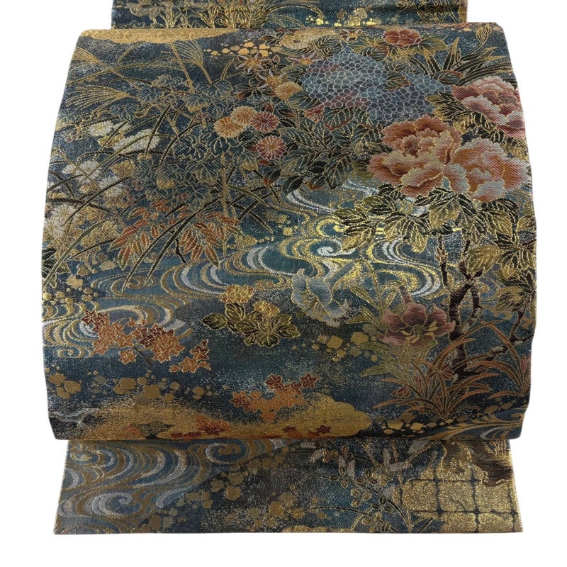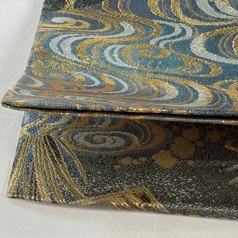 【丸帯】 青系 青緑 逸品 A 帯丈426cm~435cm 30000- 美品 五万以下