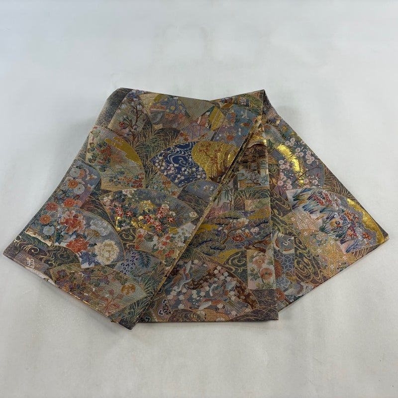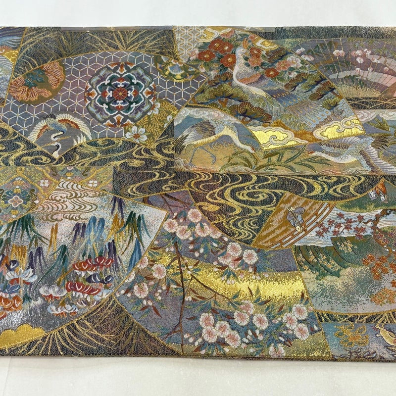 【丸帯】 灰色系 灰緑 逸品 A 帯丈436cm以上 30000- 美品 五万以下
