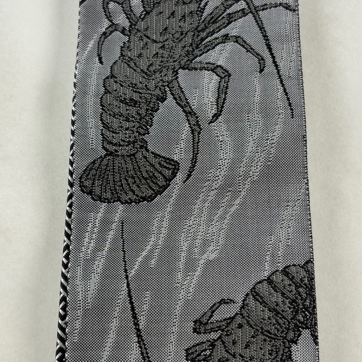 【美品】角帯 名品 博多織 証紙 男儀 海老 紗綾形 青灰色 正絹