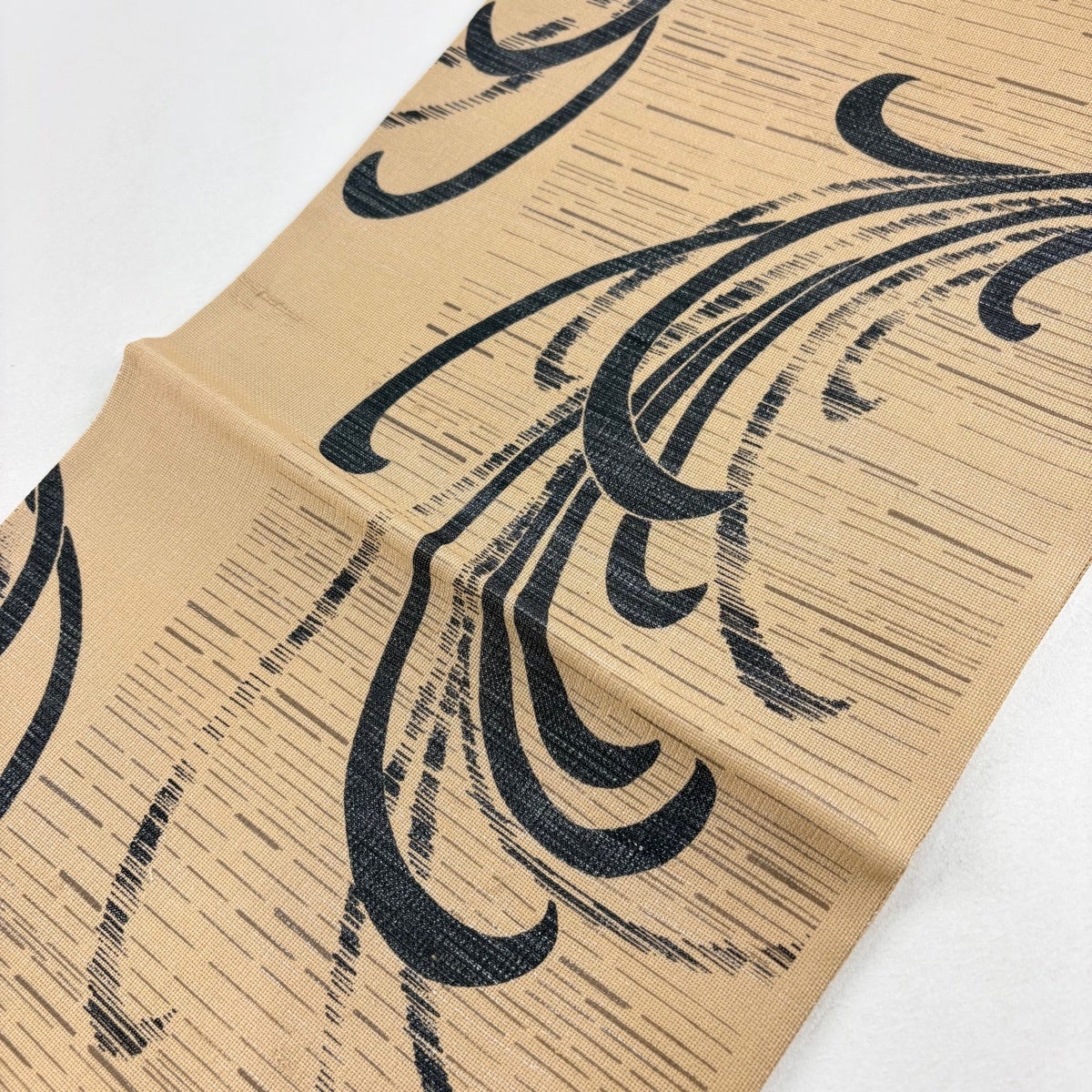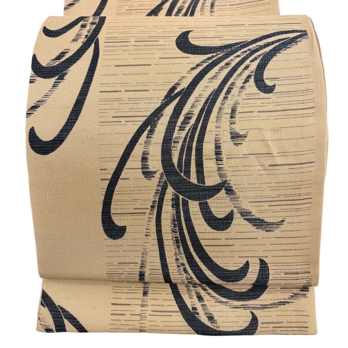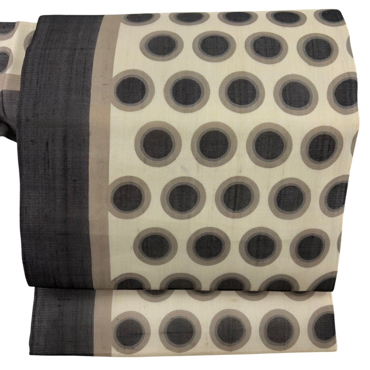 名古屋帯 秀品 川村久太郎 落款あり 夏帯 丸紋 幾何学 ベージュ 正絹