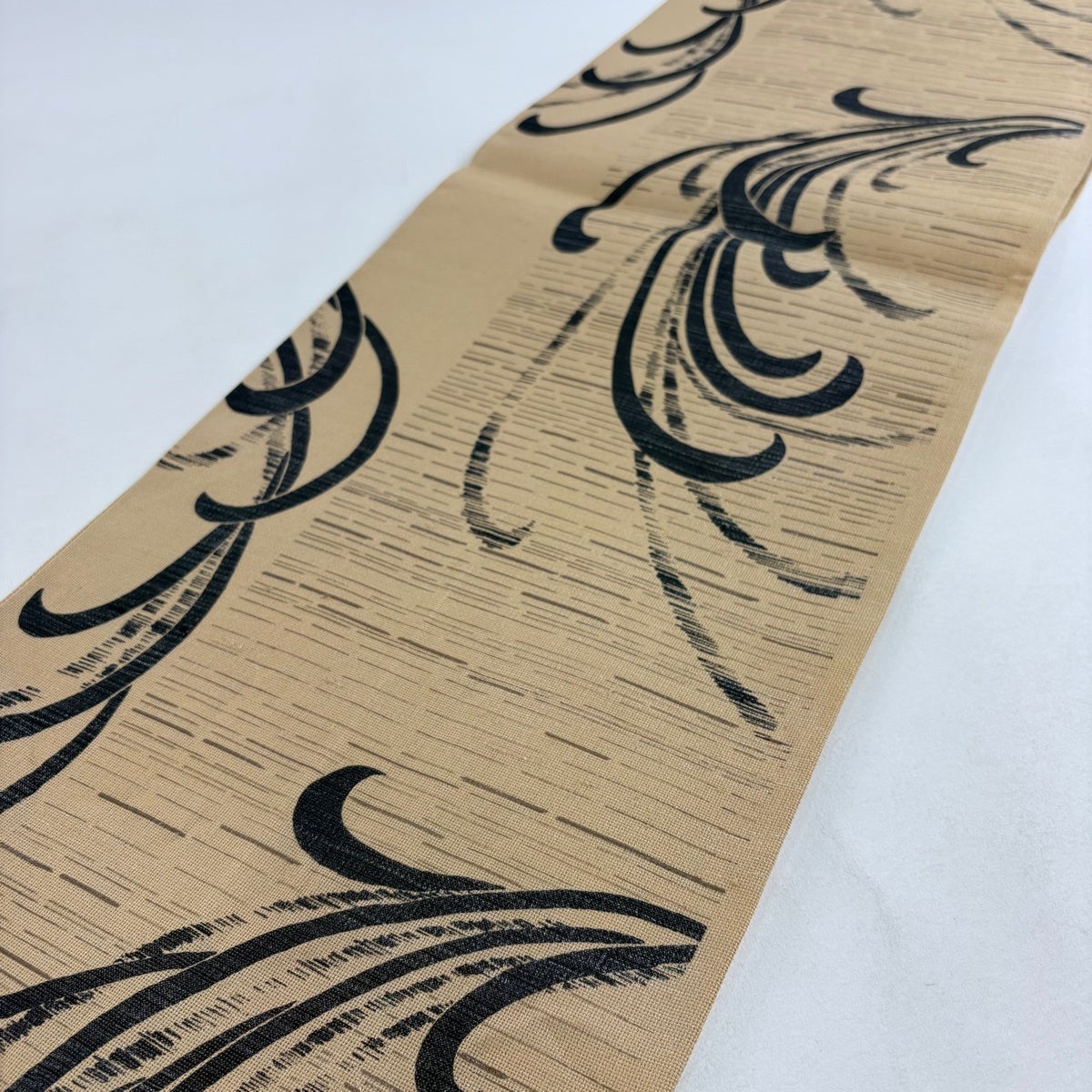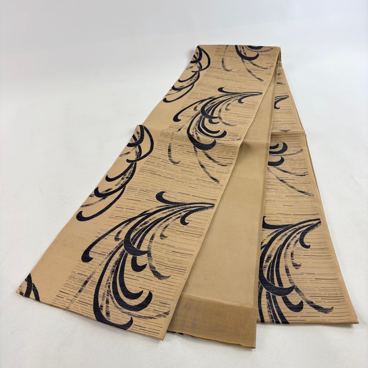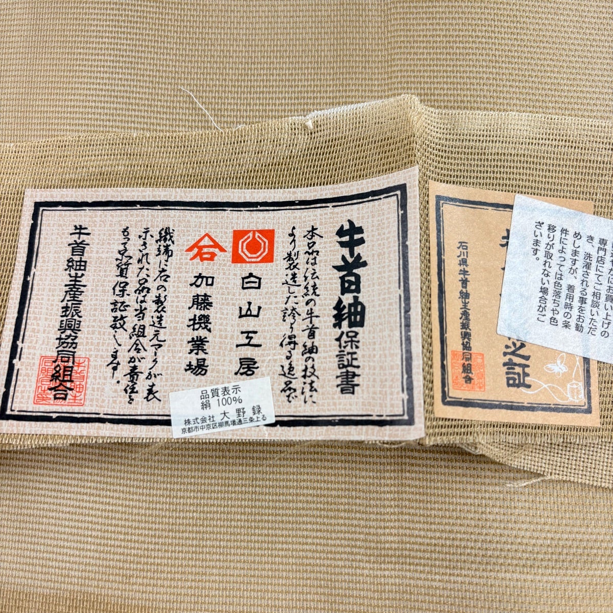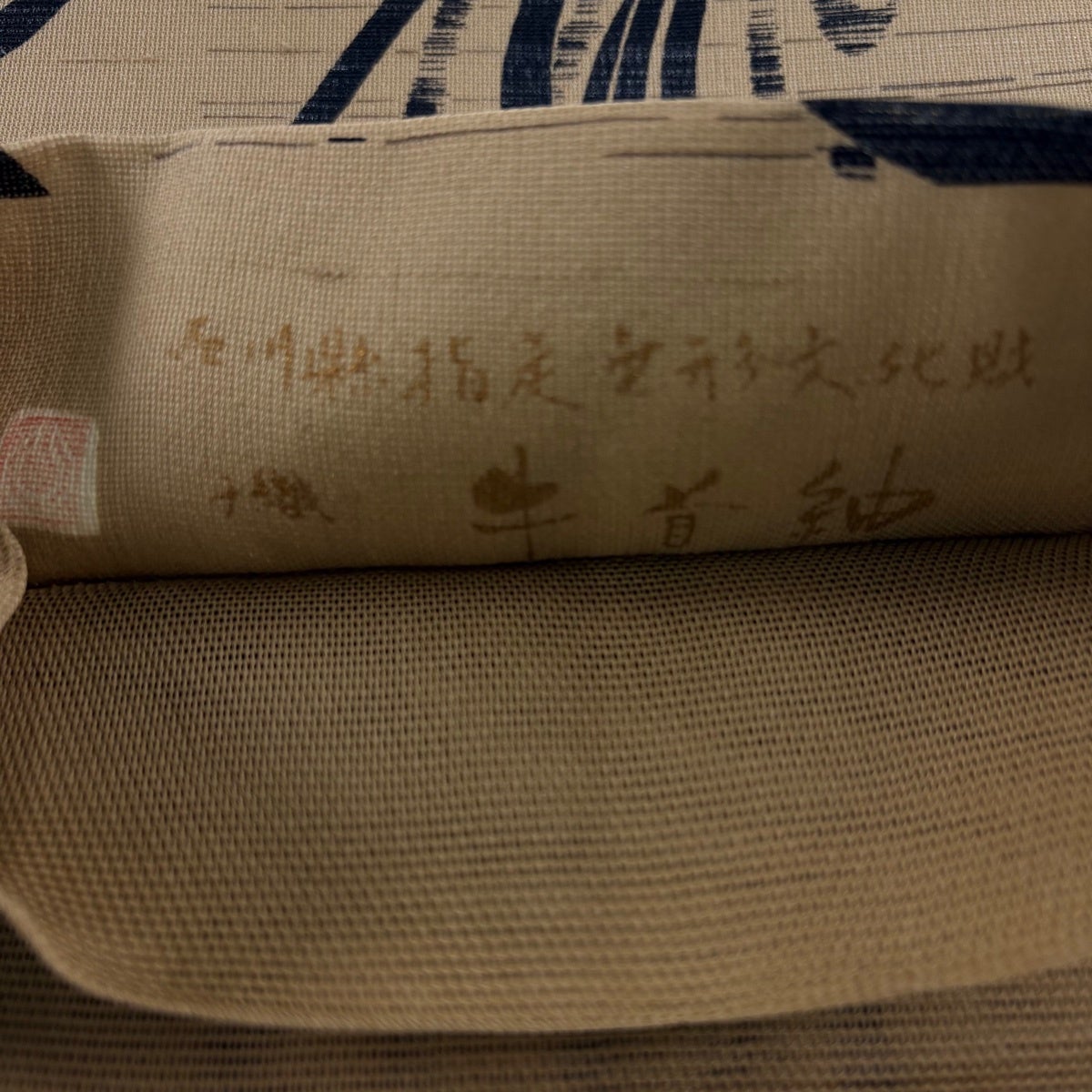 名古屋帯 秀品 川村久太郎 落款あり 夏帯 丸紋 幾何学 ベージュ 正絹