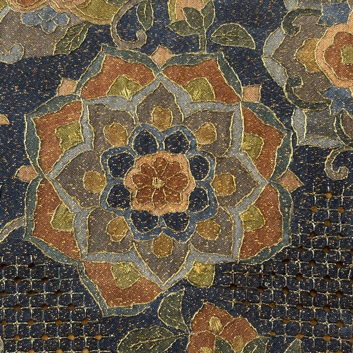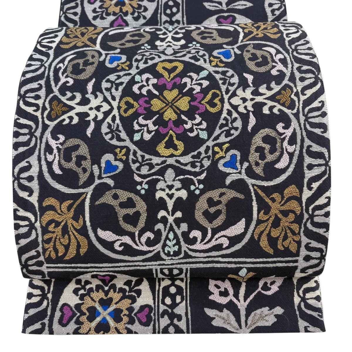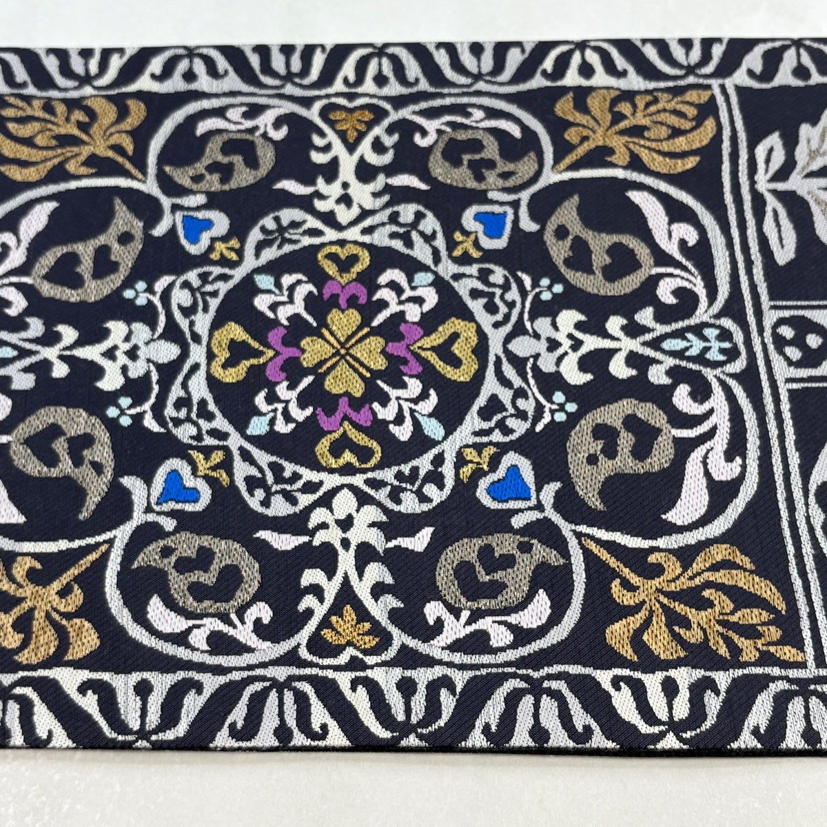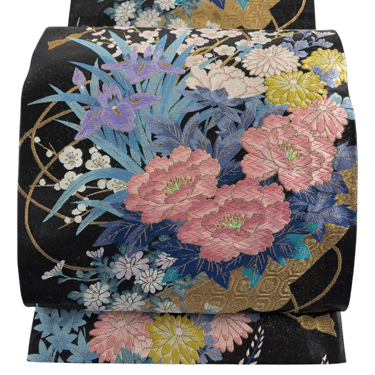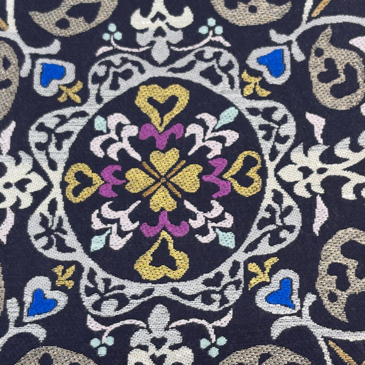 【美品】 袋帯 逸品 華文 華唐草 金糸 金通し 紺色 全通 正絹