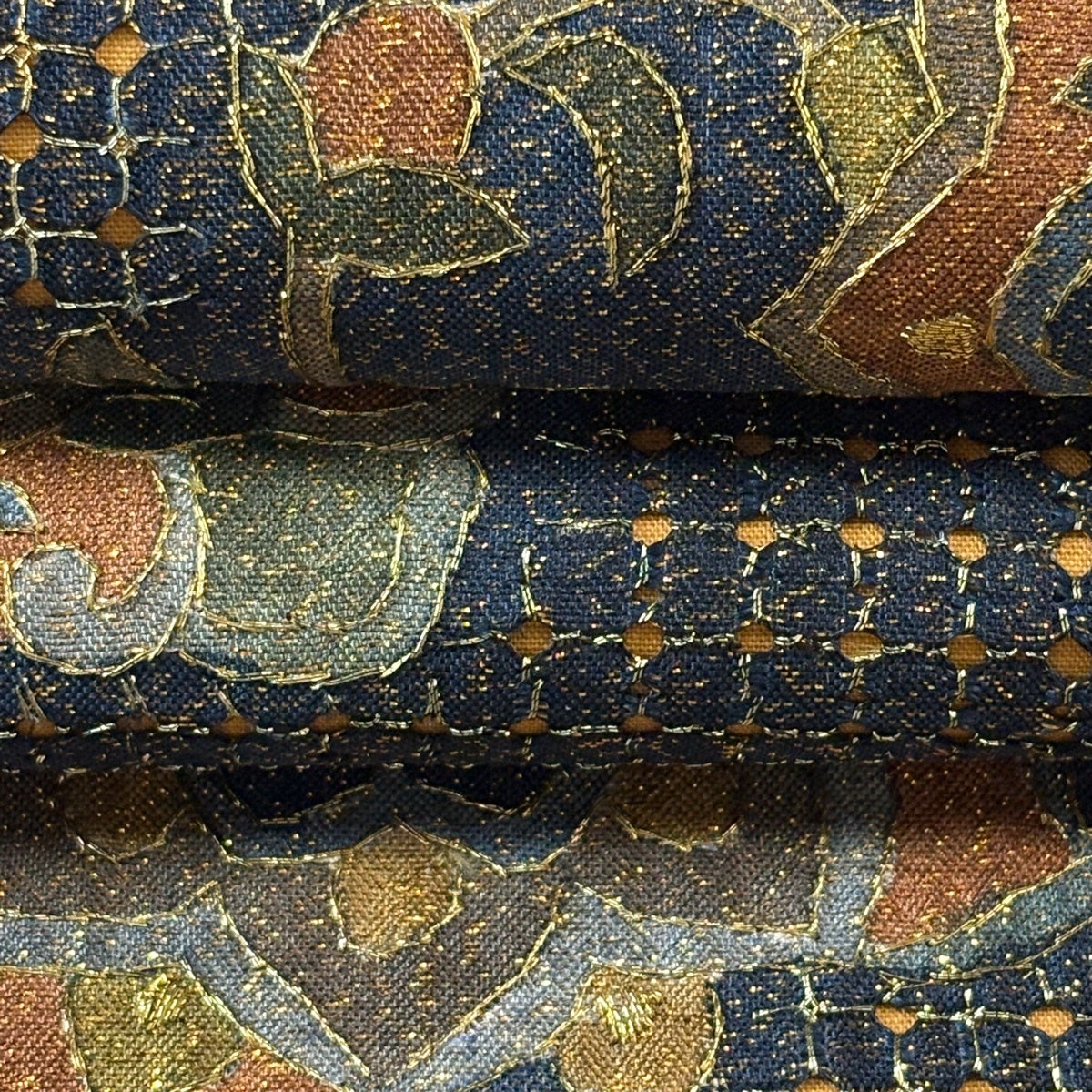 【美品】 袋帯 秀品 花唐草 ペイズリー 藍色 六通 正絹