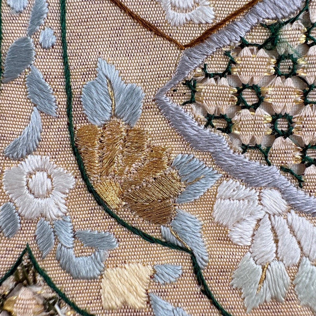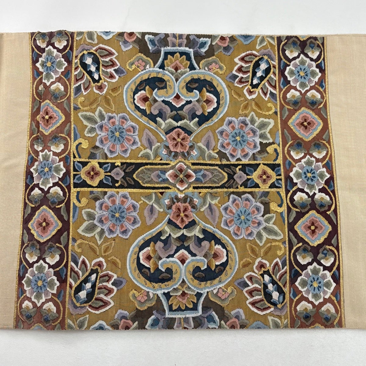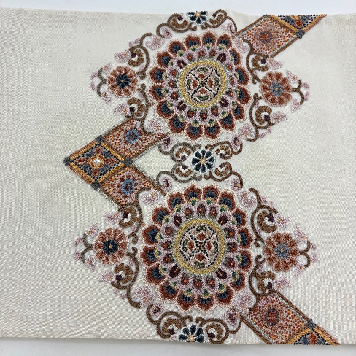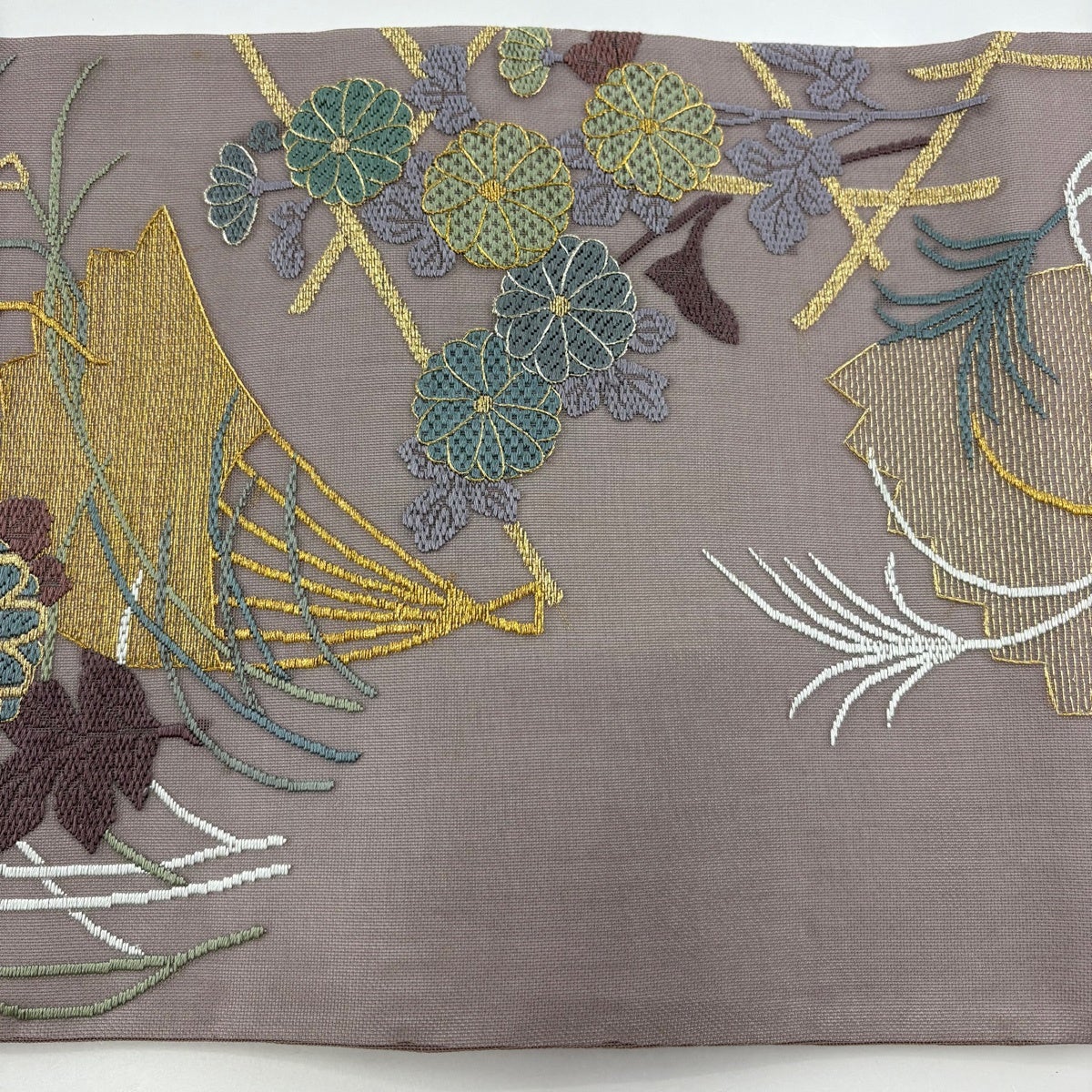 袋帯 逸品 華文 松皮菱 刺繍 金銀糸 ベージュ 六通 正絹