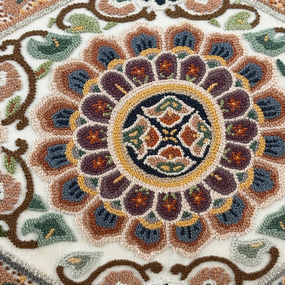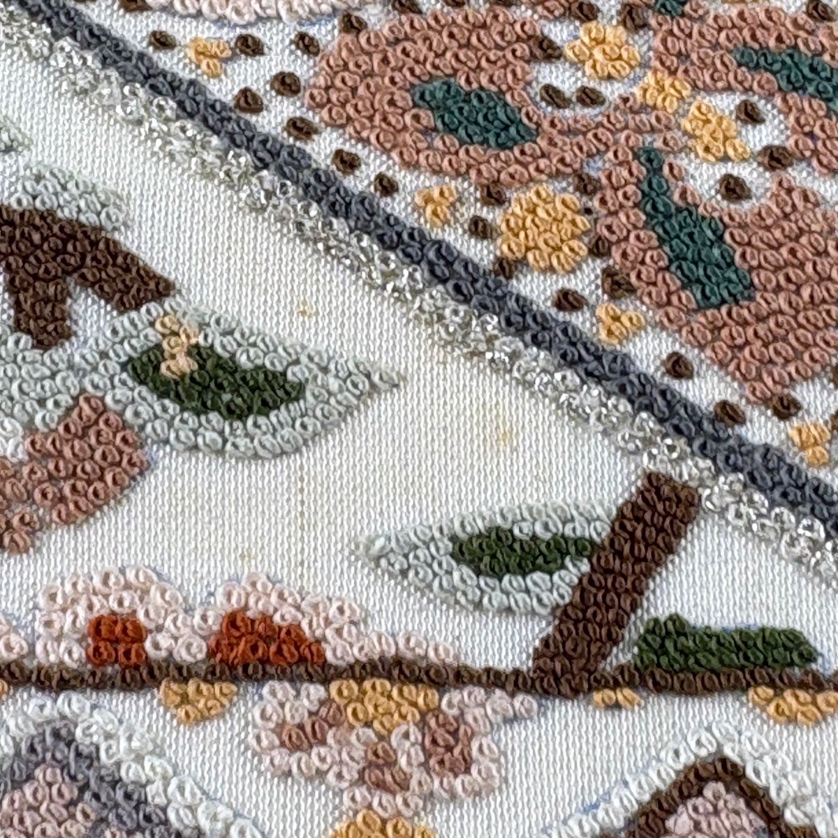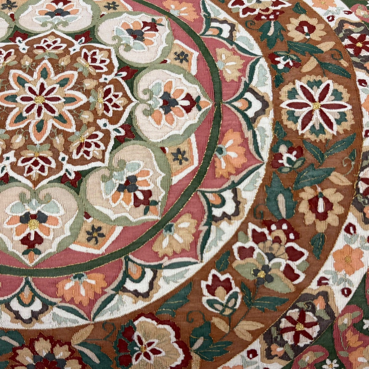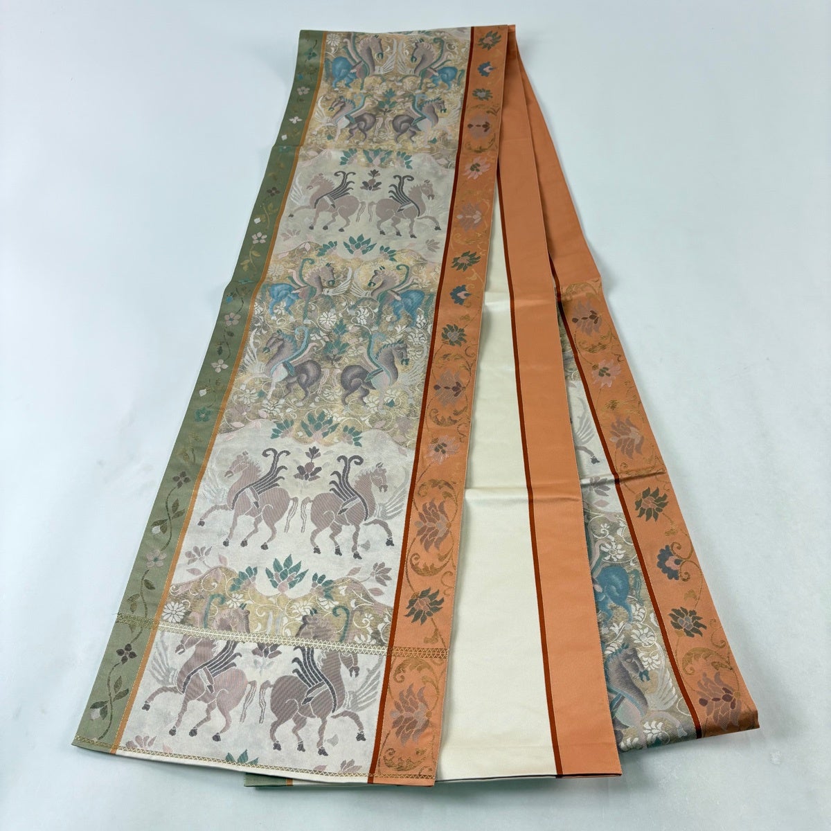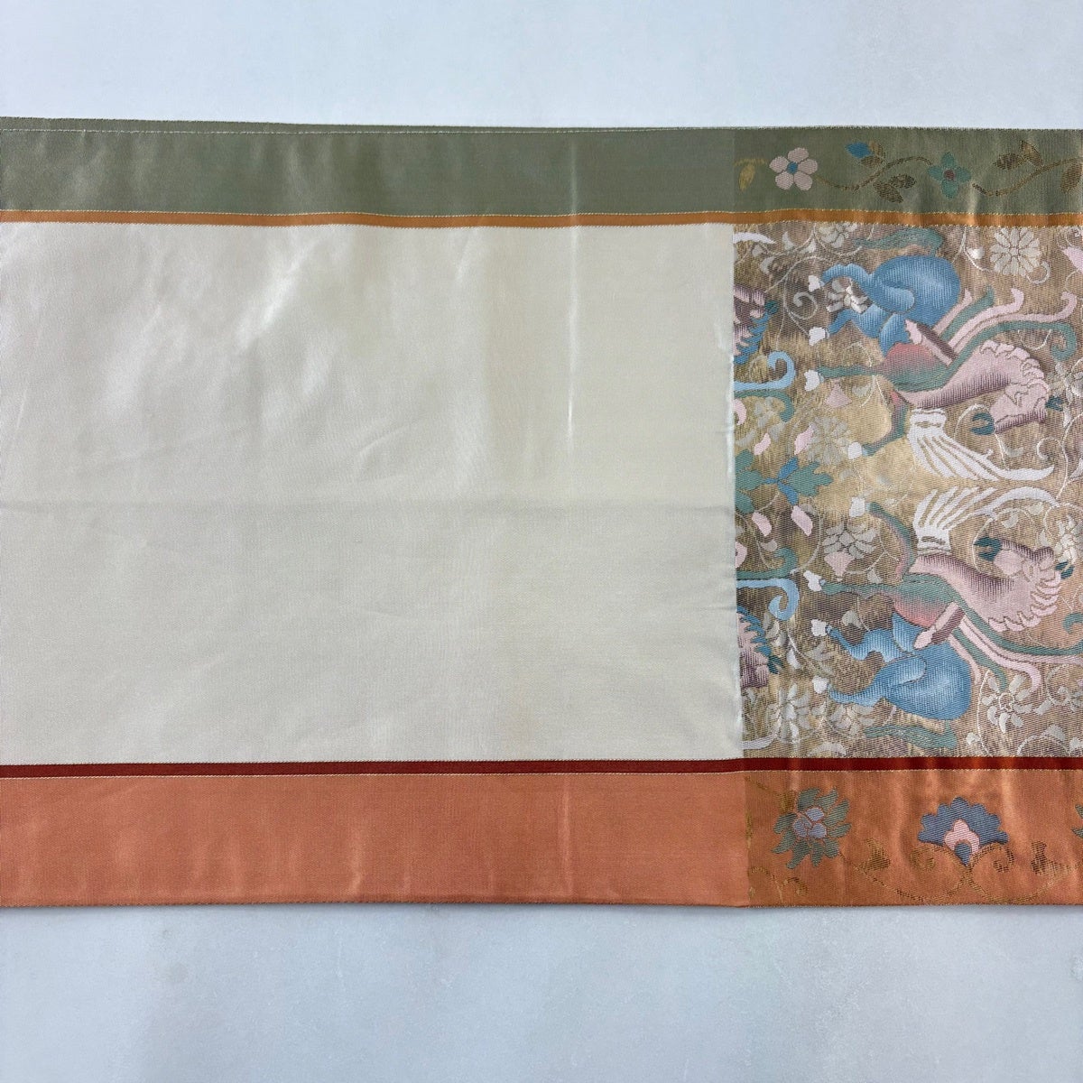 袋帯 逸品 華文 松皮菱 刺繍 金銀糸 ベージュ 六通 正絹