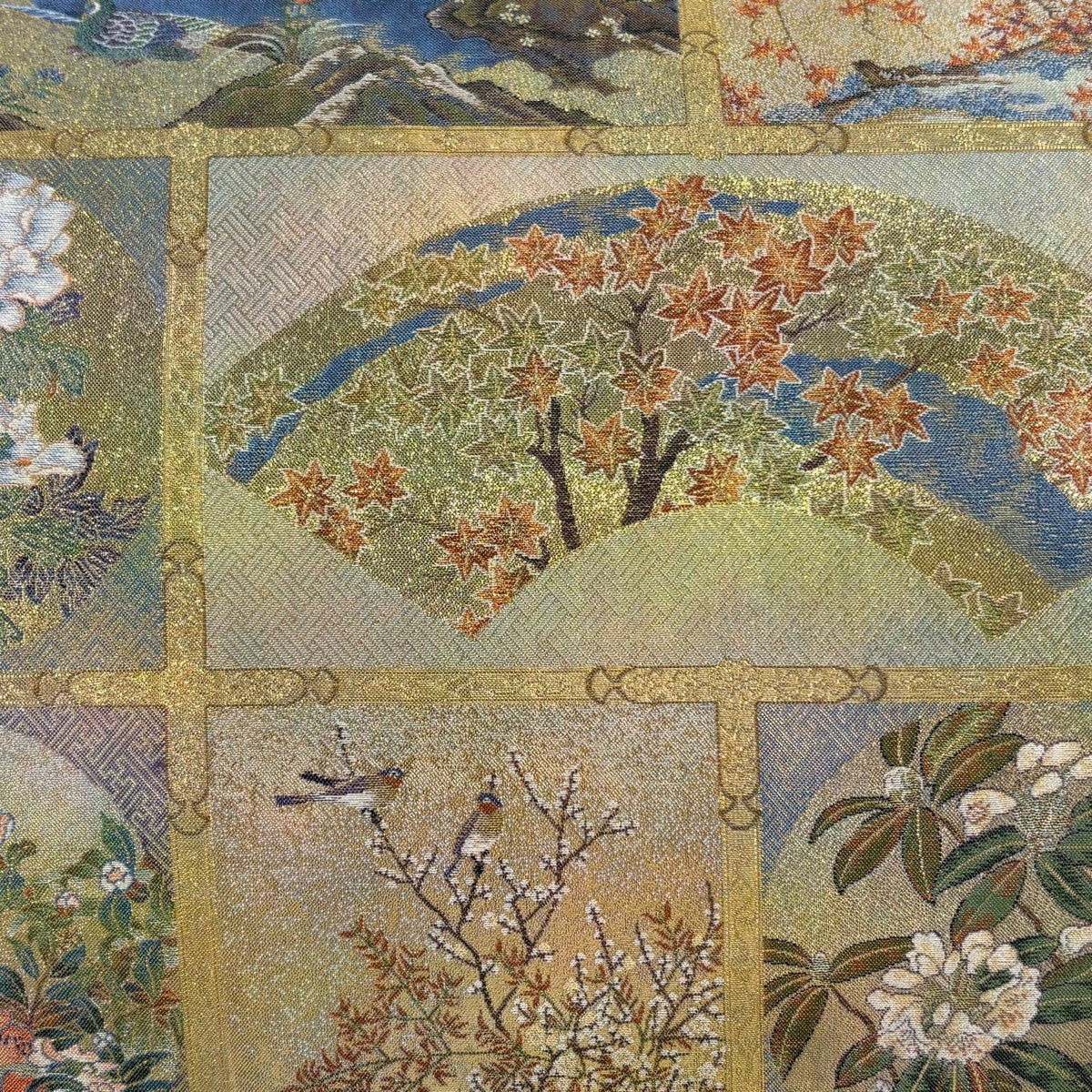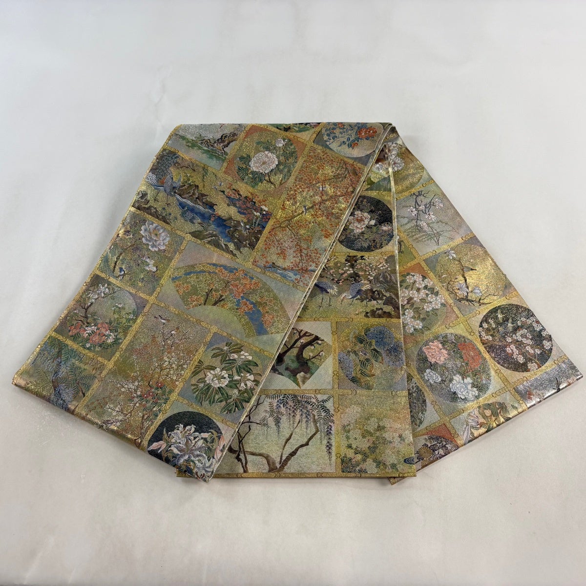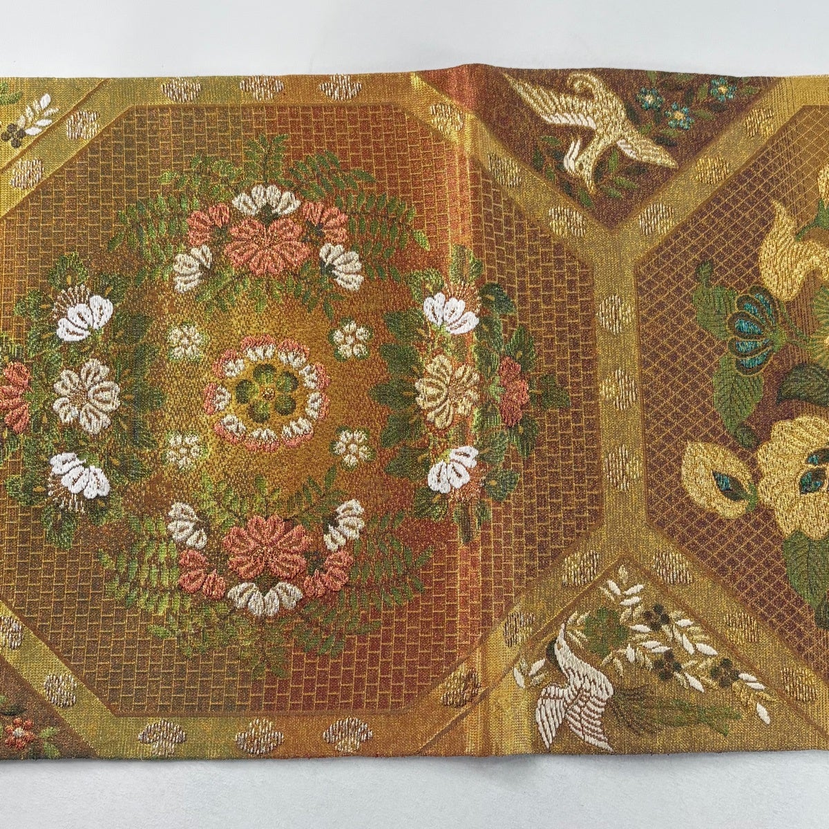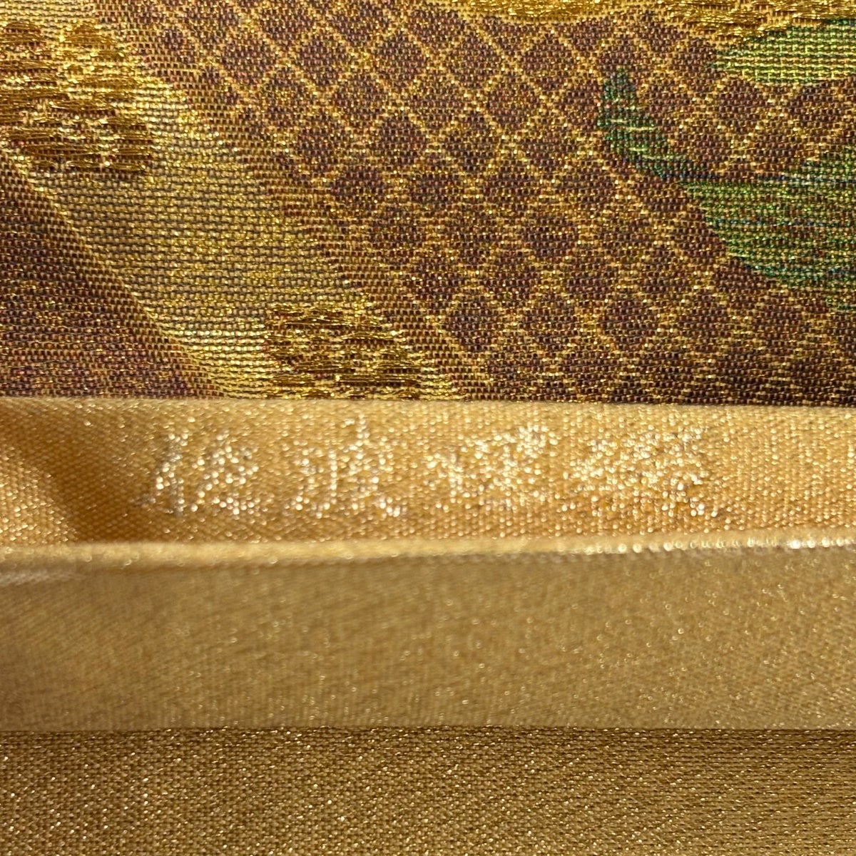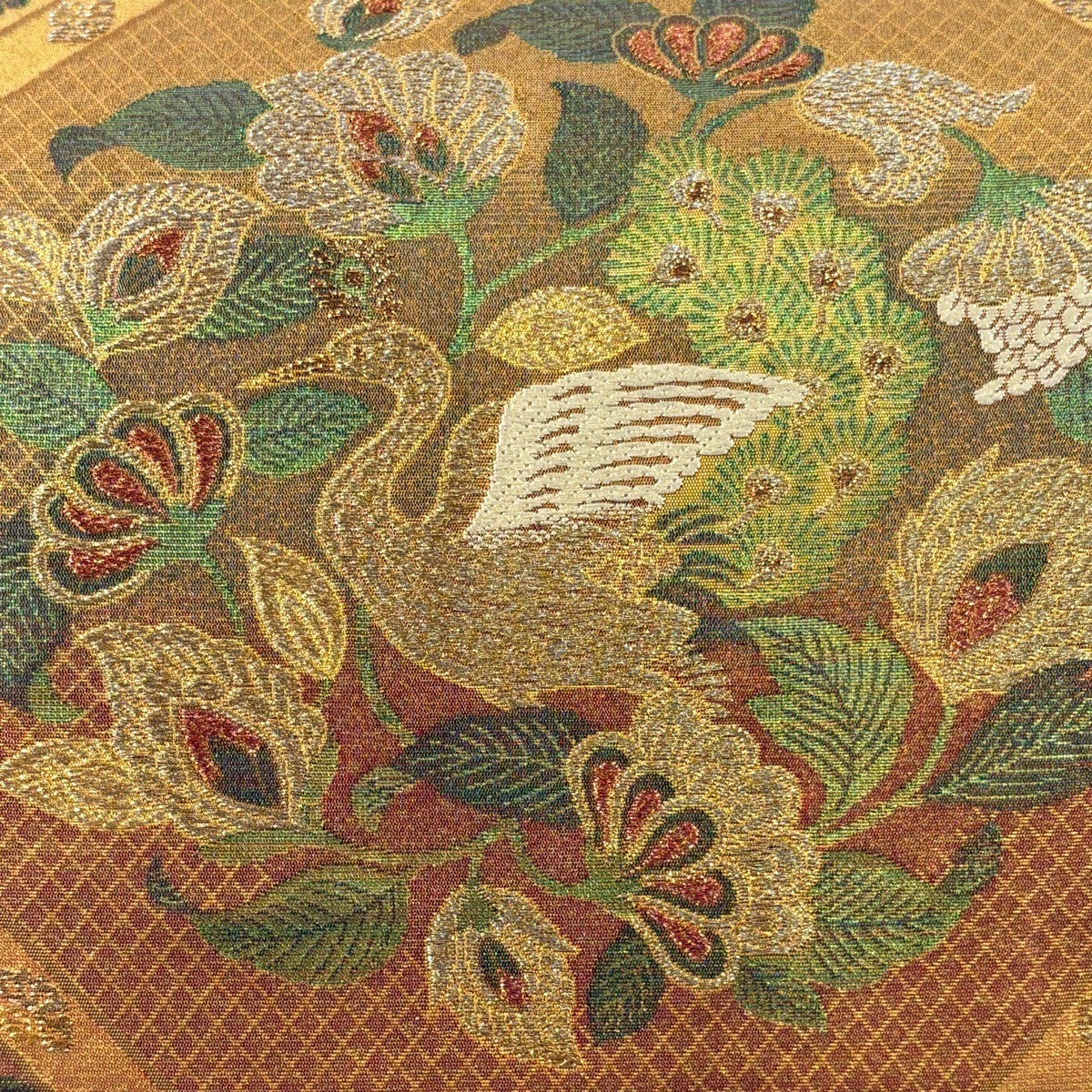 【美品】 袋帯 逸品 花鳥天井画絵巻 金糸 箔 金色 全通 正絹