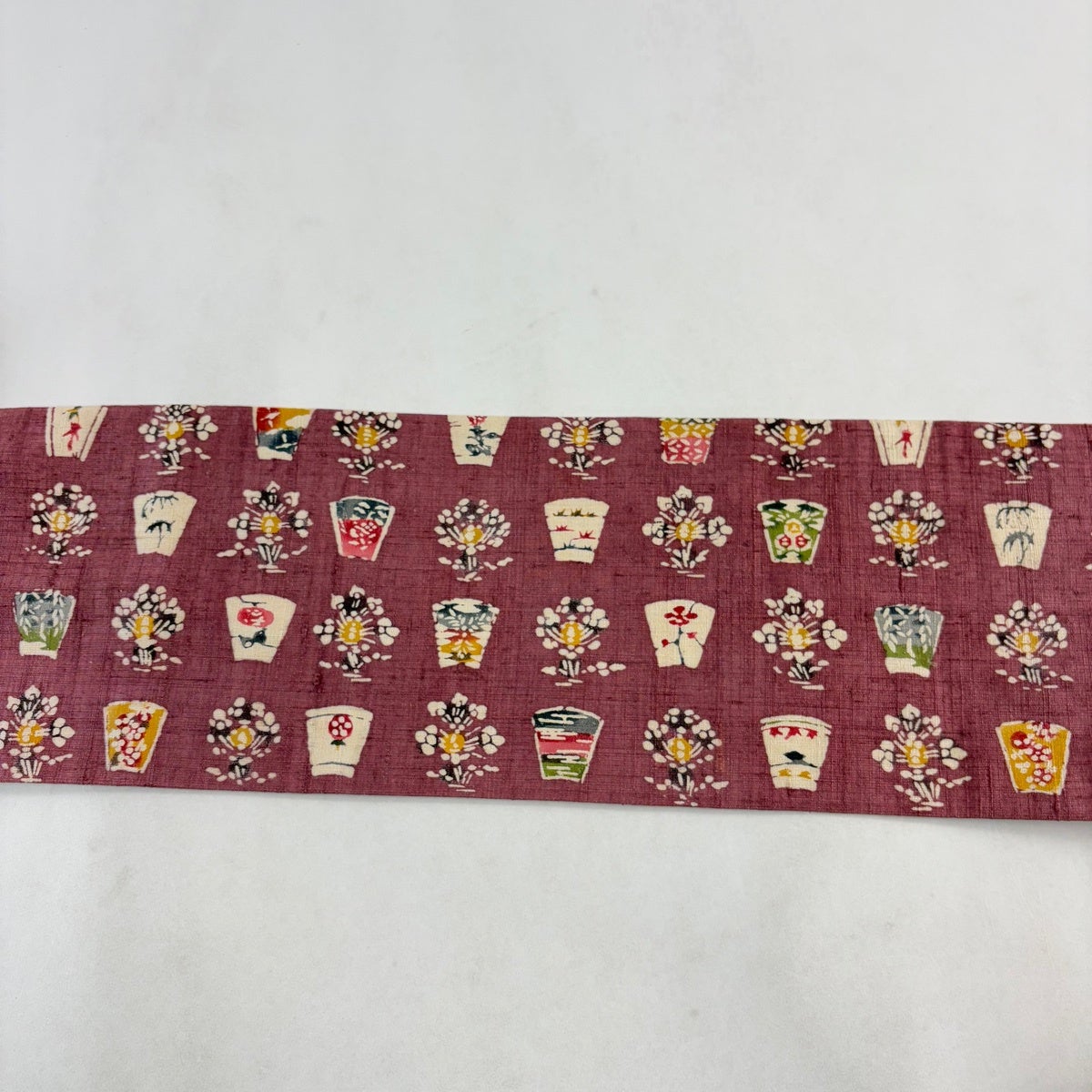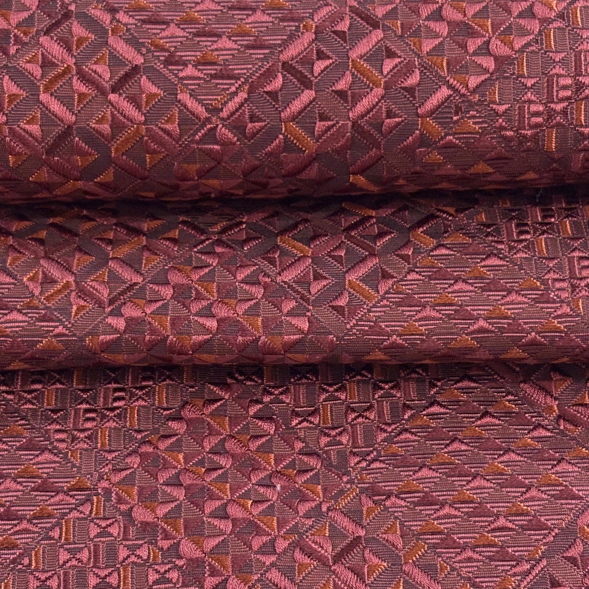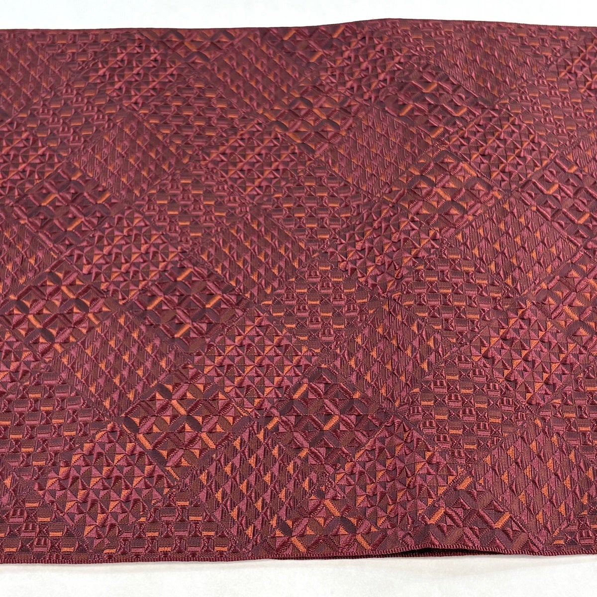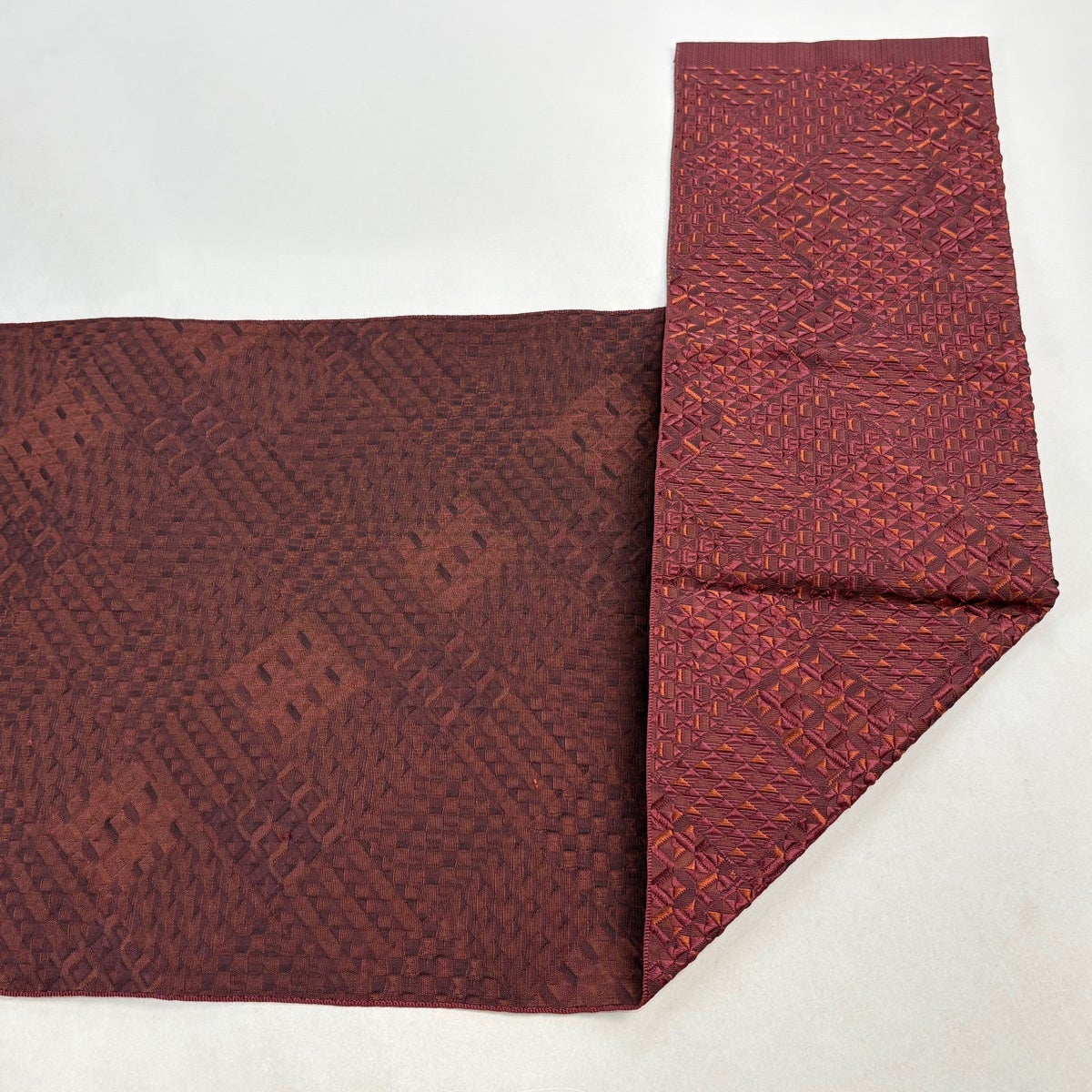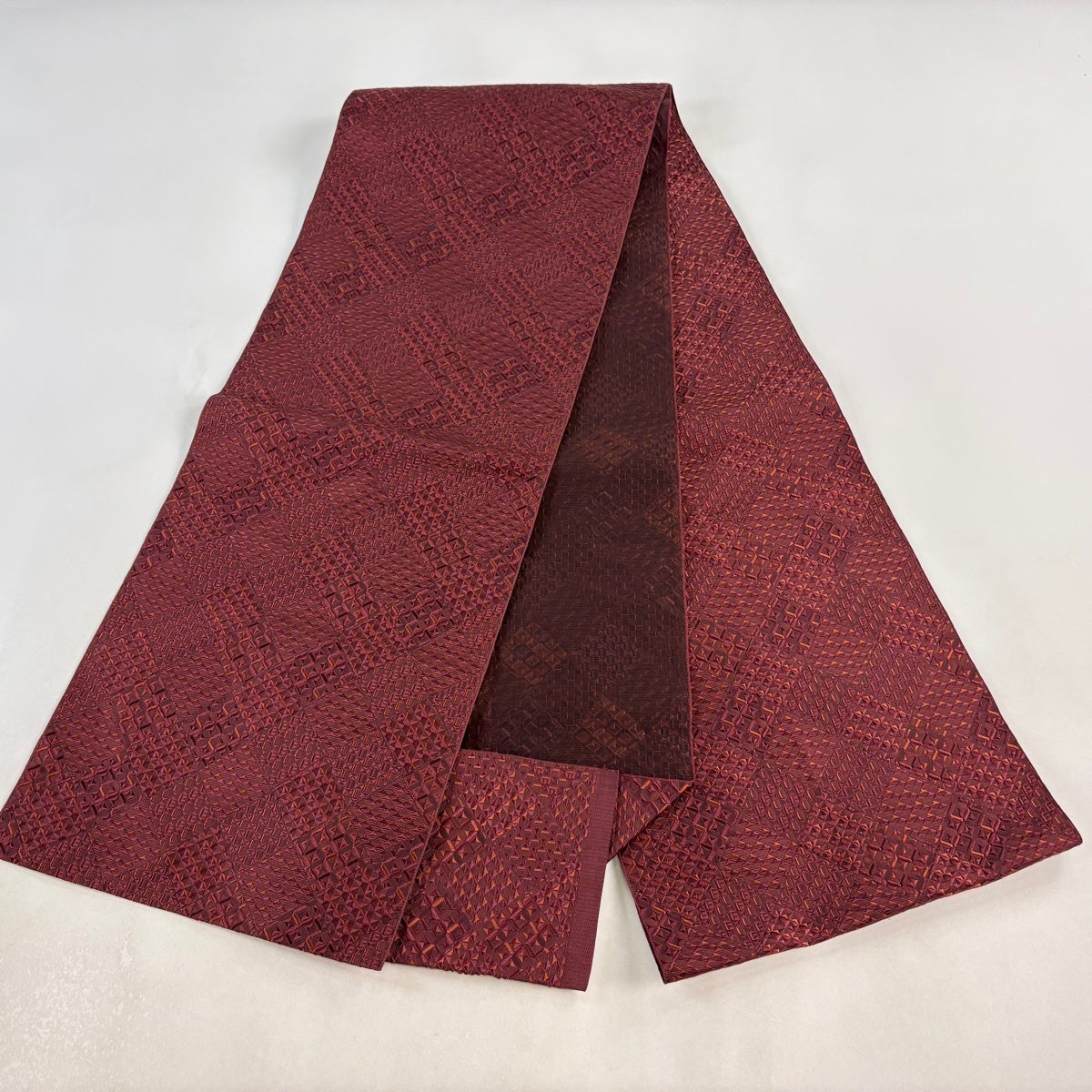 【美品】 名古屋帯 逸品 証紙あり 博多織 八寸名古屋帯 松葉仕立て 幾何学 えんじ色 正絹