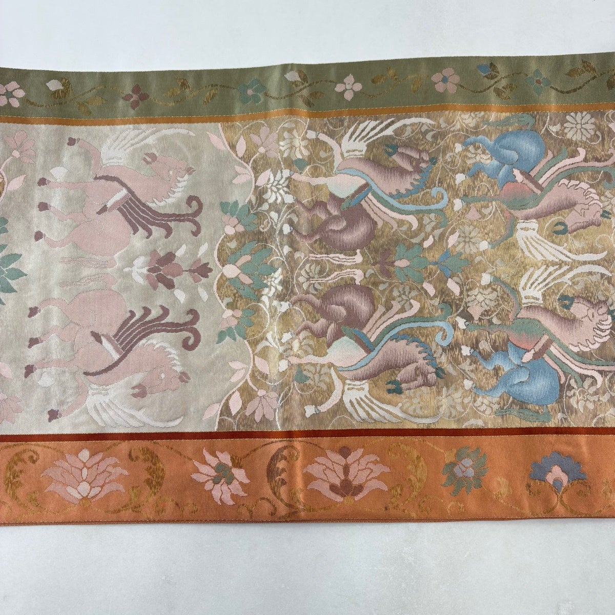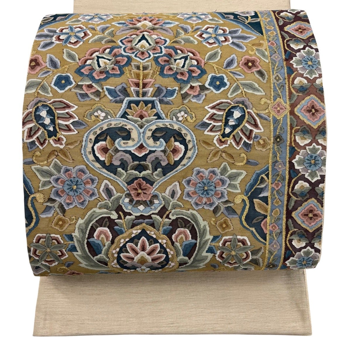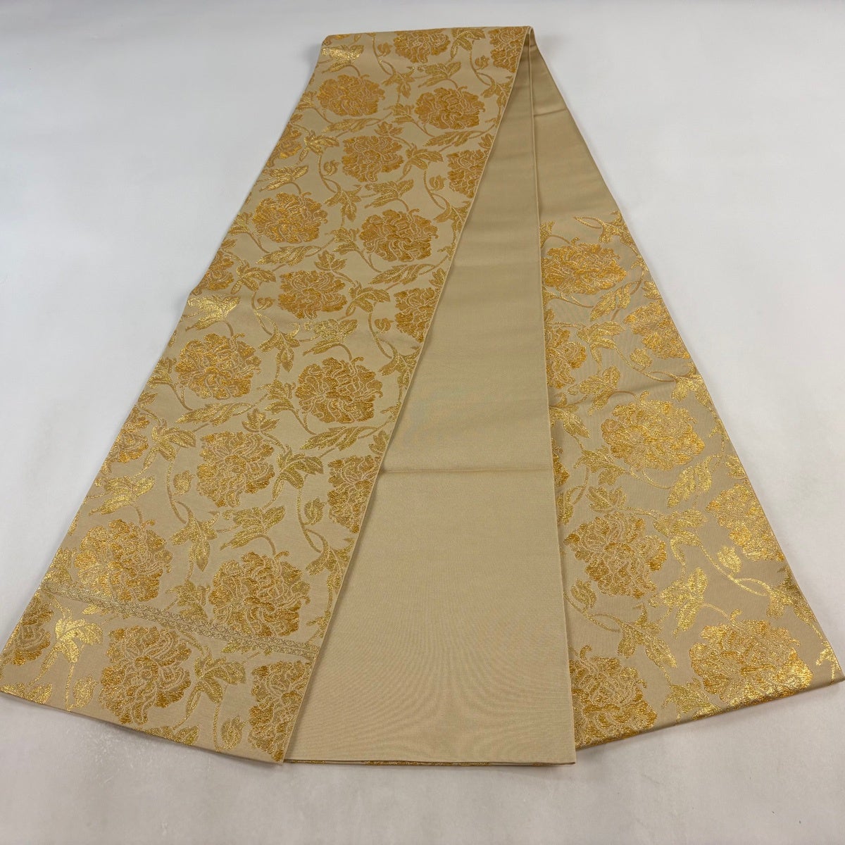 袋帯 秀品 花唐草 金糸 箔 ベージュ 六通 正絹
