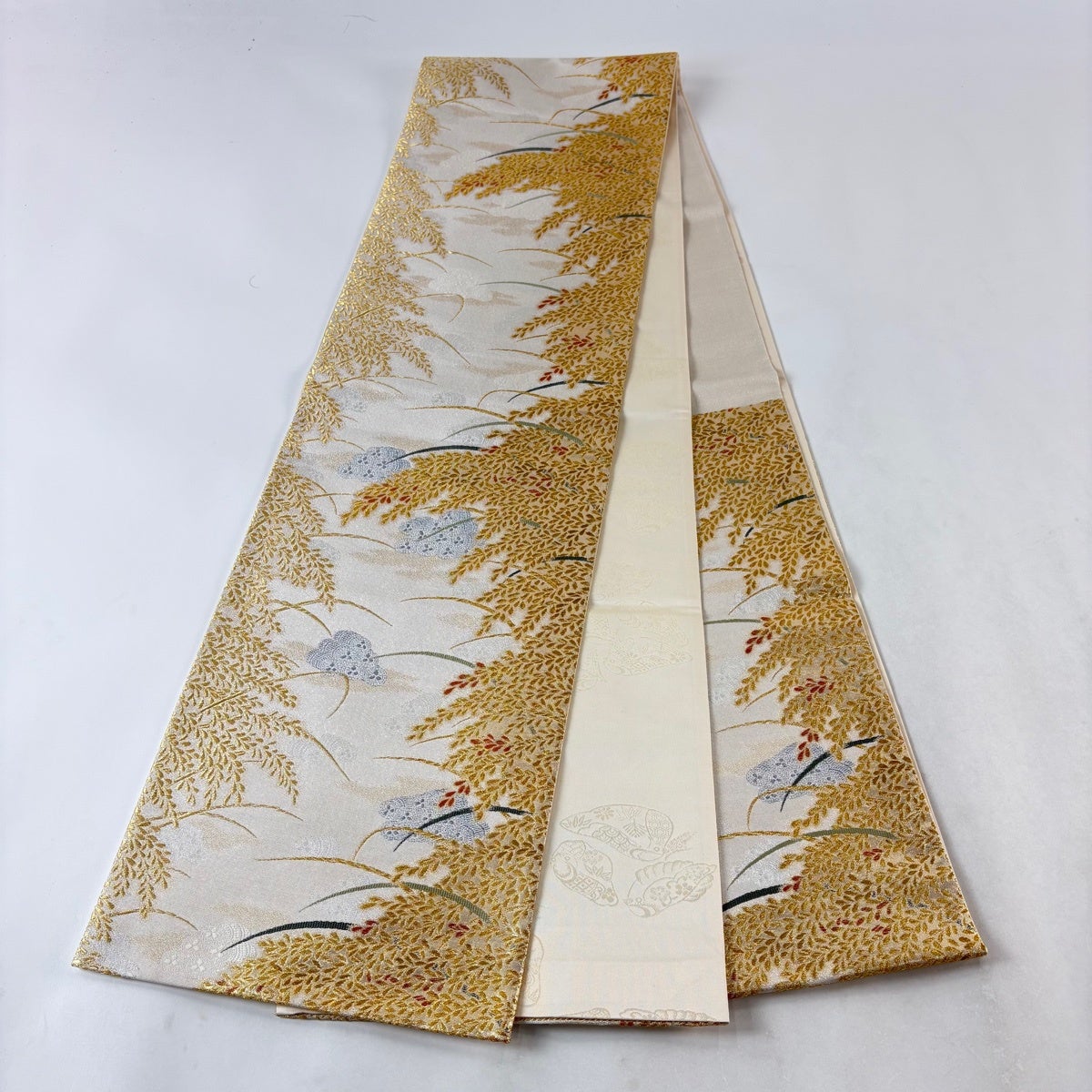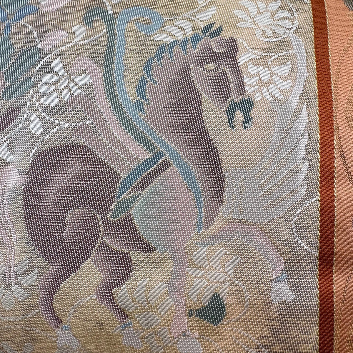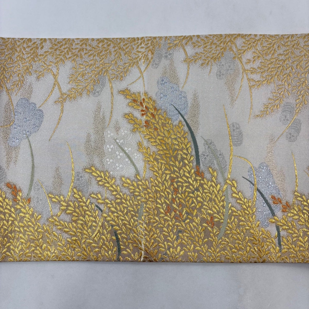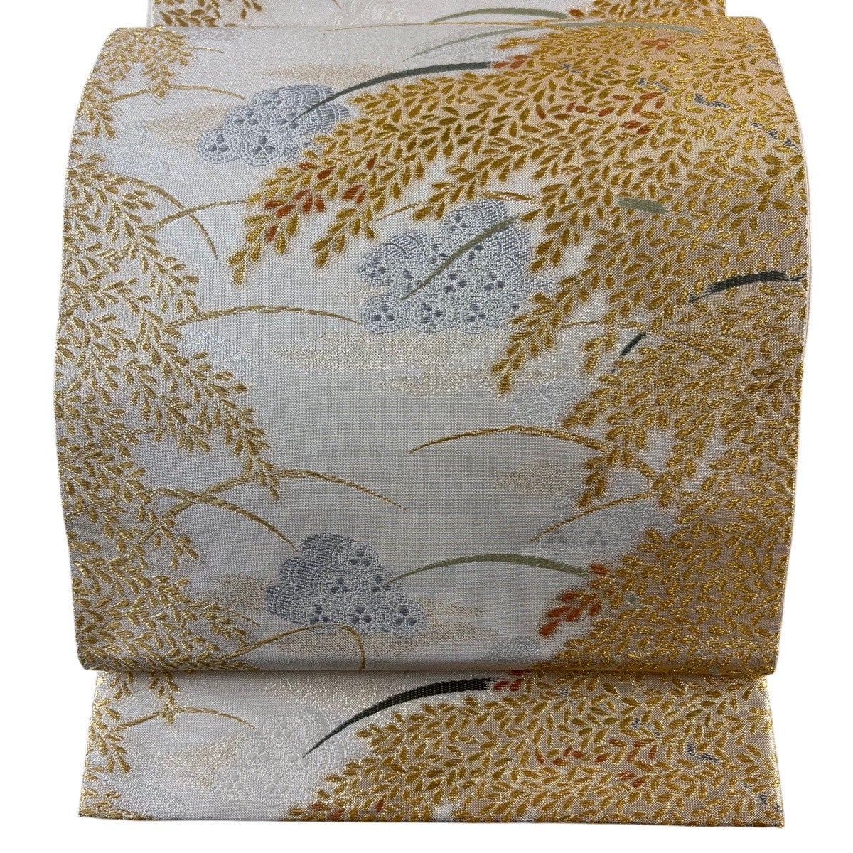 袋帯 秀品 花唐草 金糸 箔 ベージュ 六通 正絹