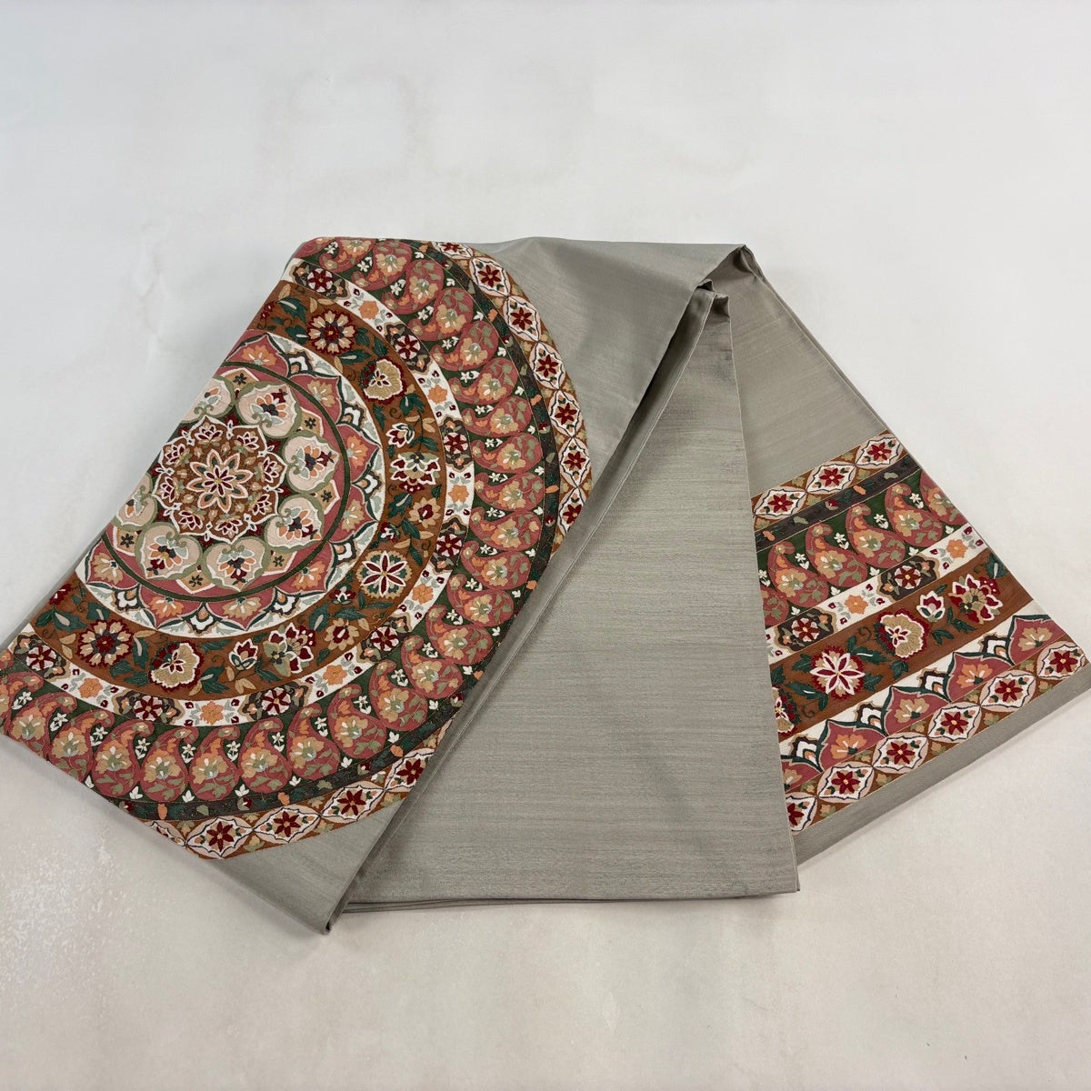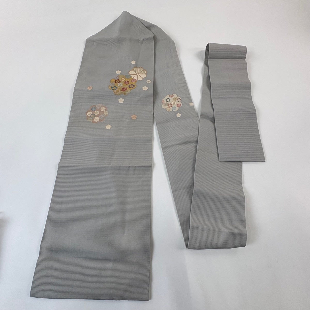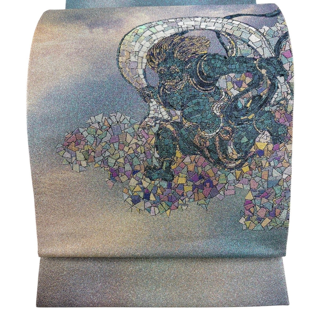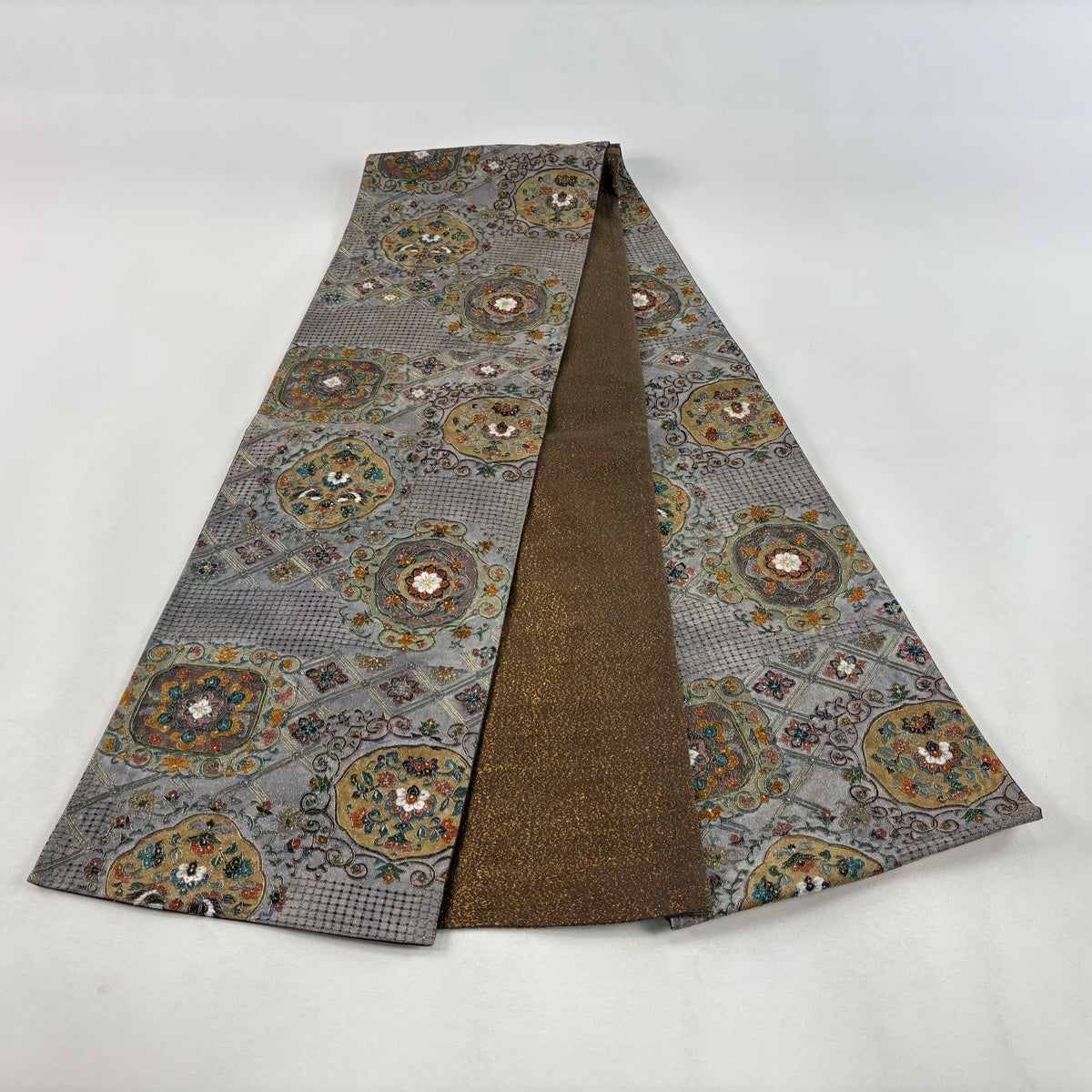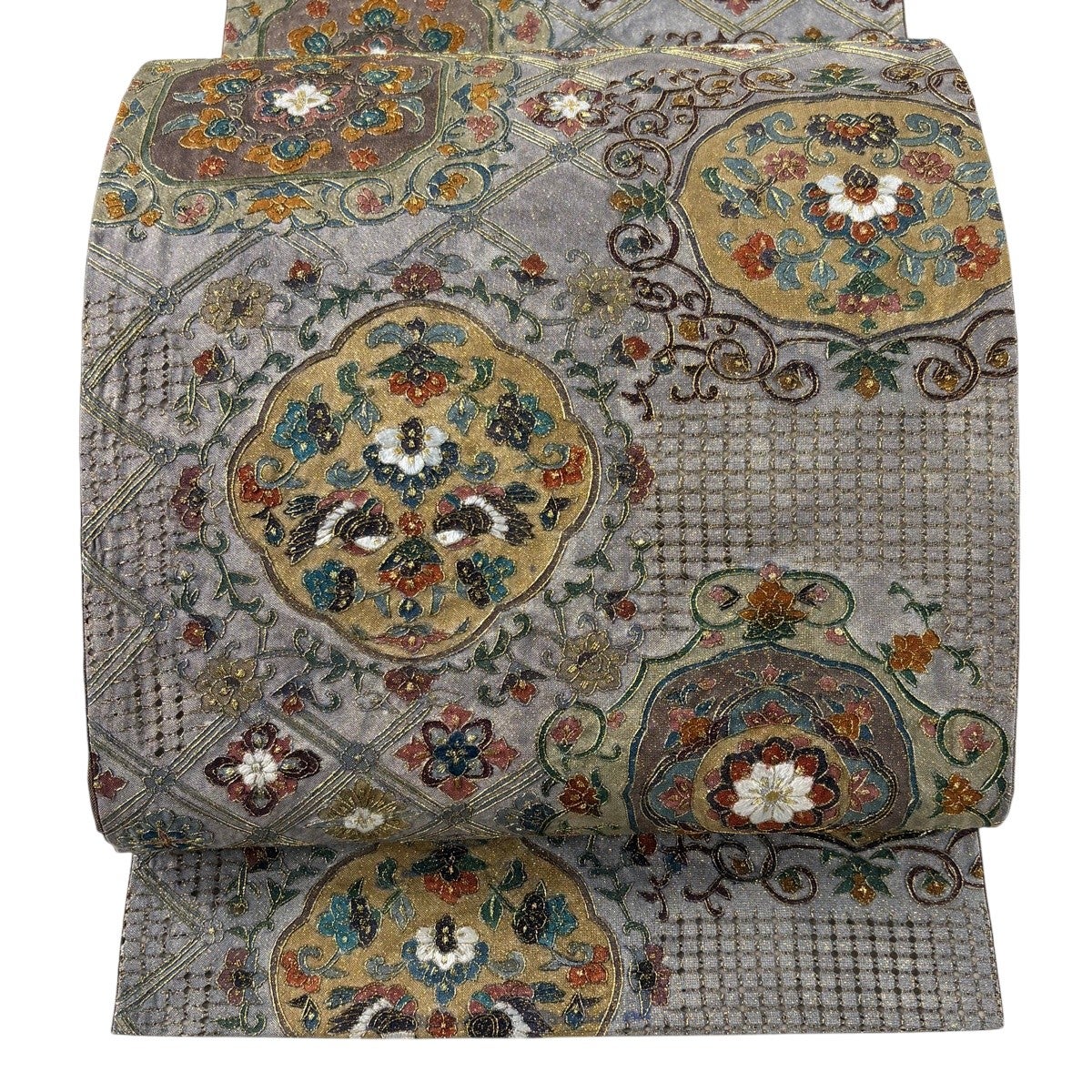袋帯 逸品 華文 金糸 灰色 お太鼓柄 正絹