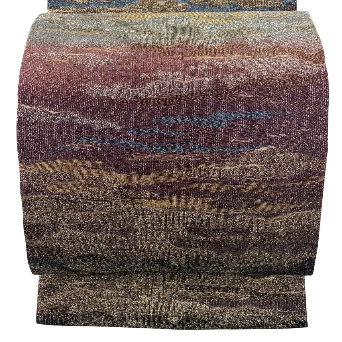 【美品】 袋帯 秀品 草木染 手染織 霞 箔 紫 六通 正絹