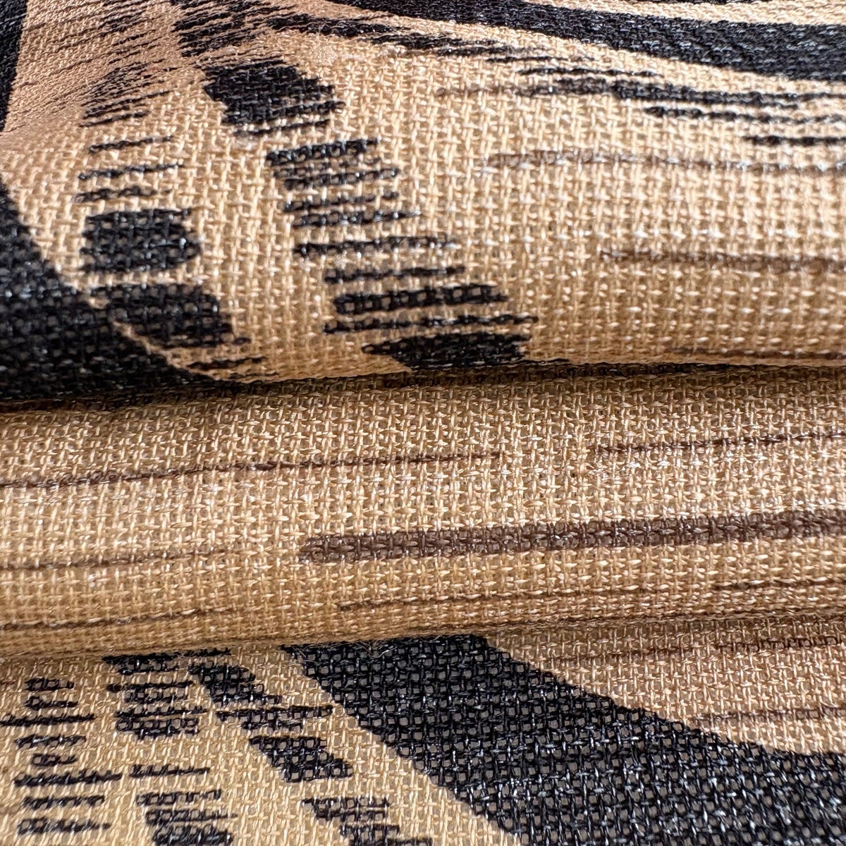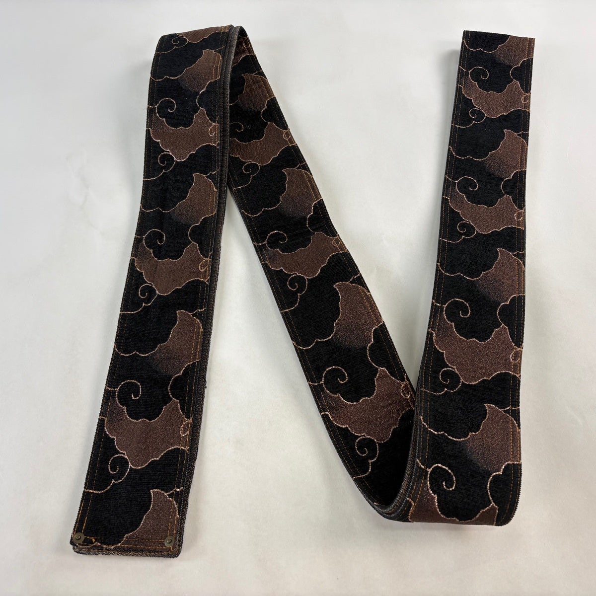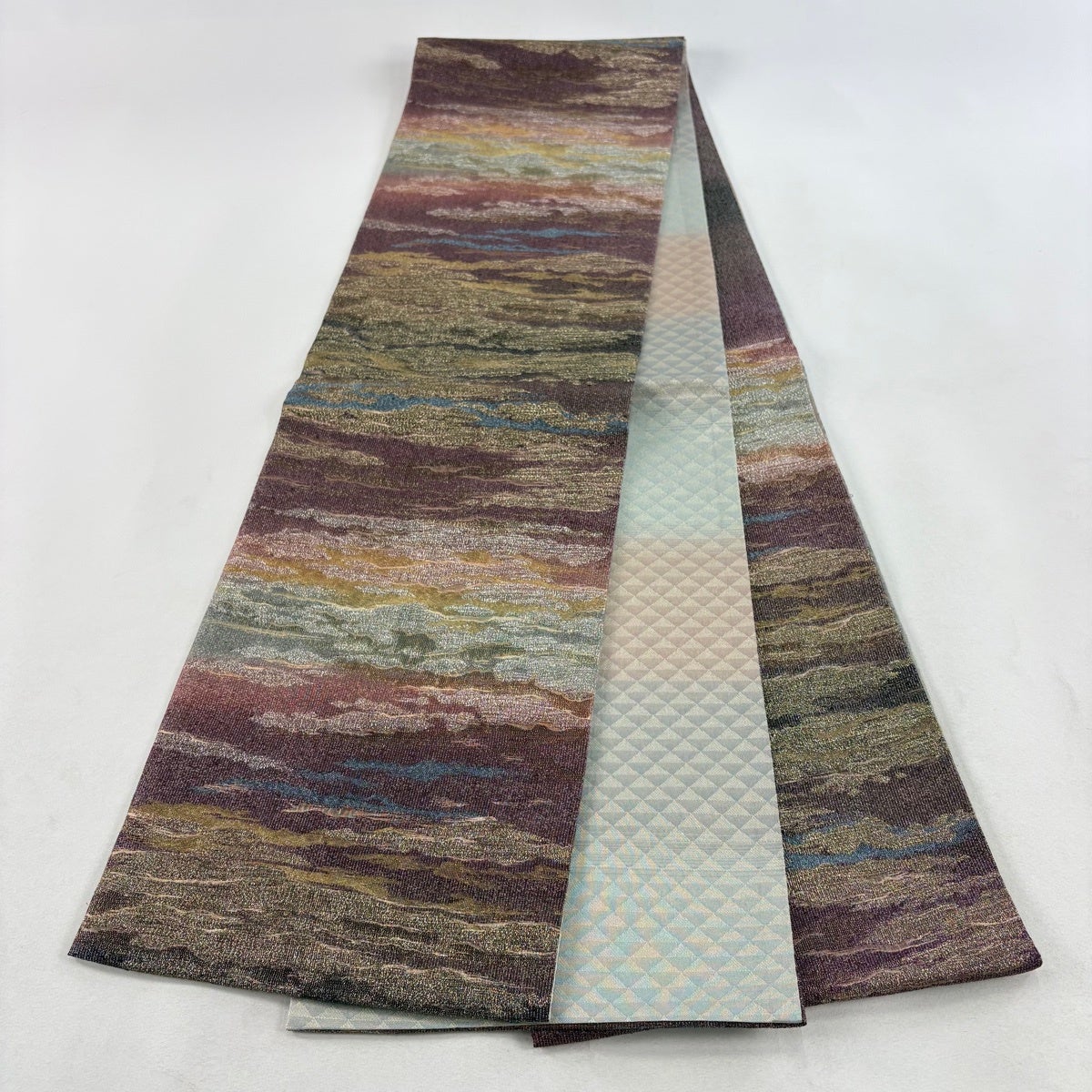 開き名古屋帯 秀品 縞 幾何学模様 ぼかし 茶色 正絹