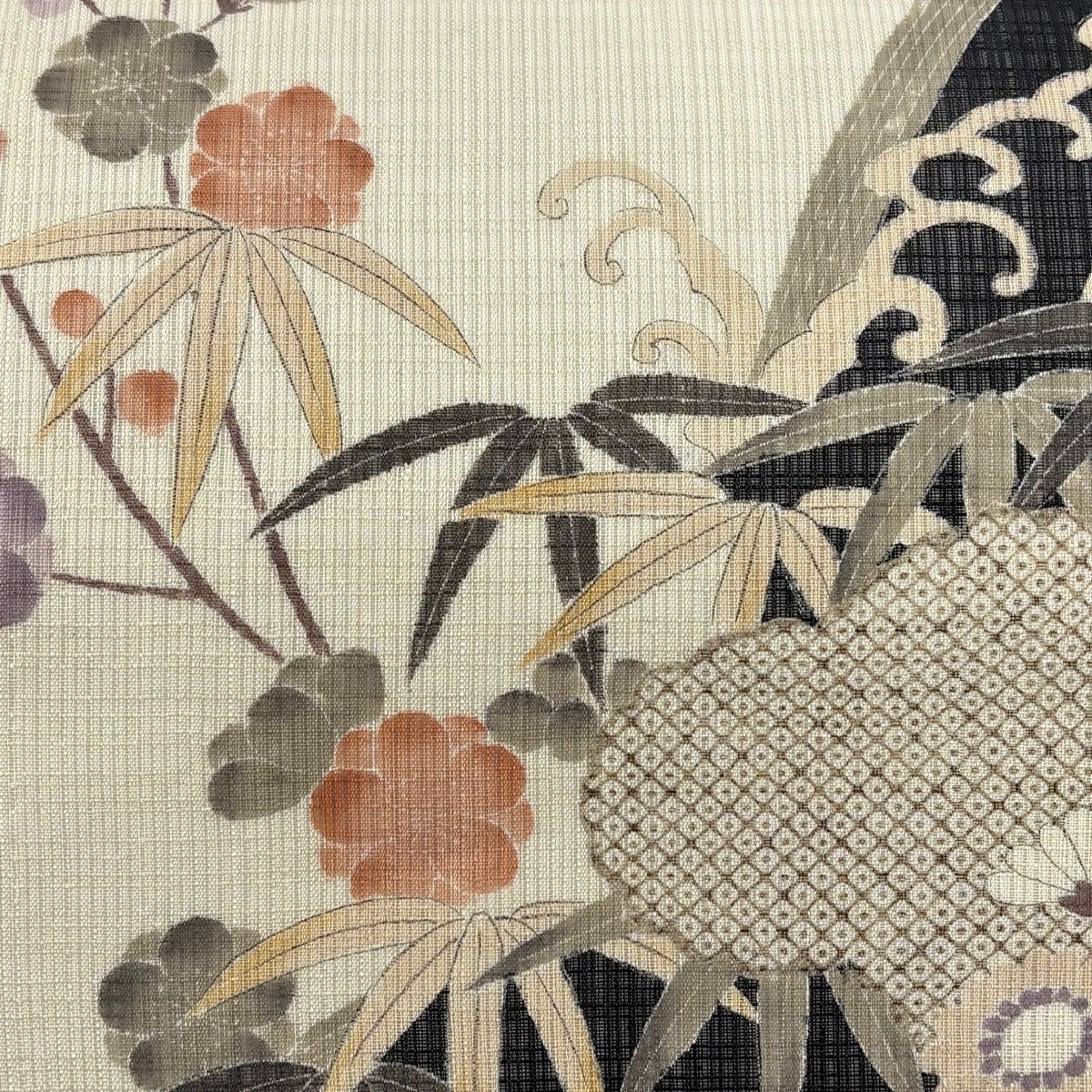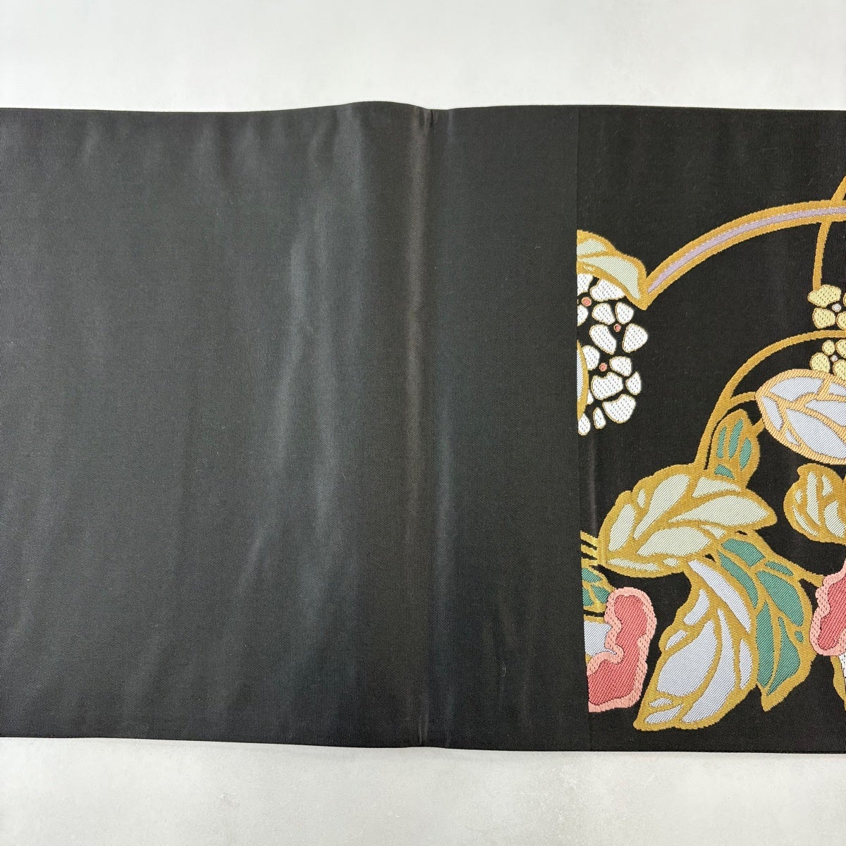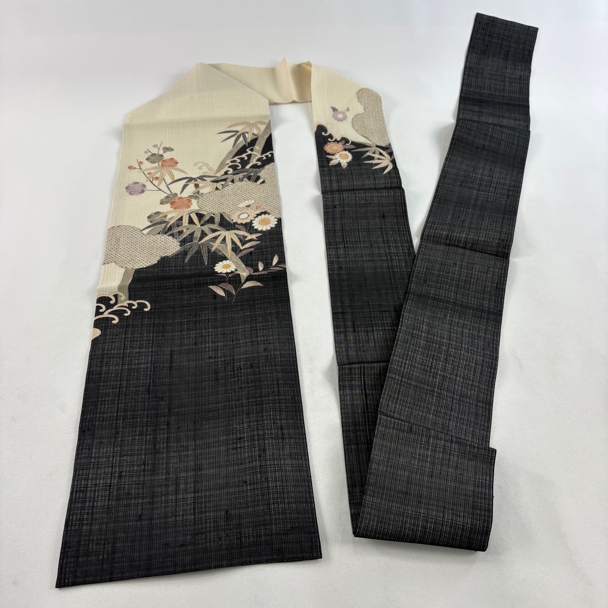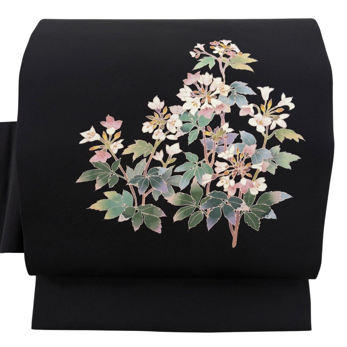 【美品】 名古屋帯 秀品 落款あり 草花 ぼかし 墨色 正絹
