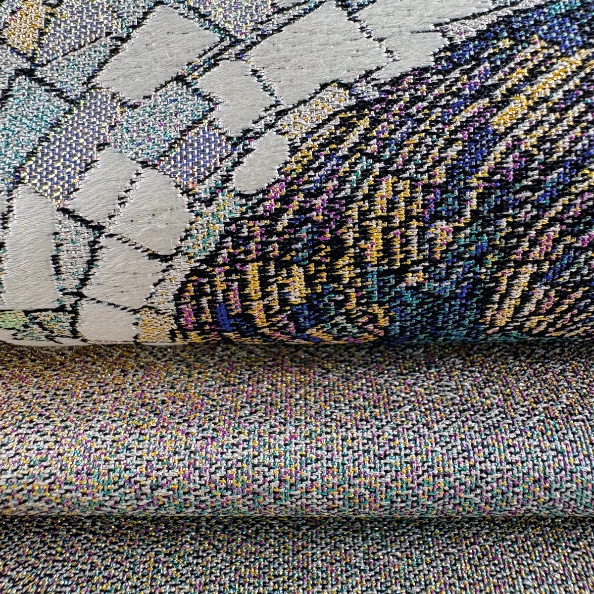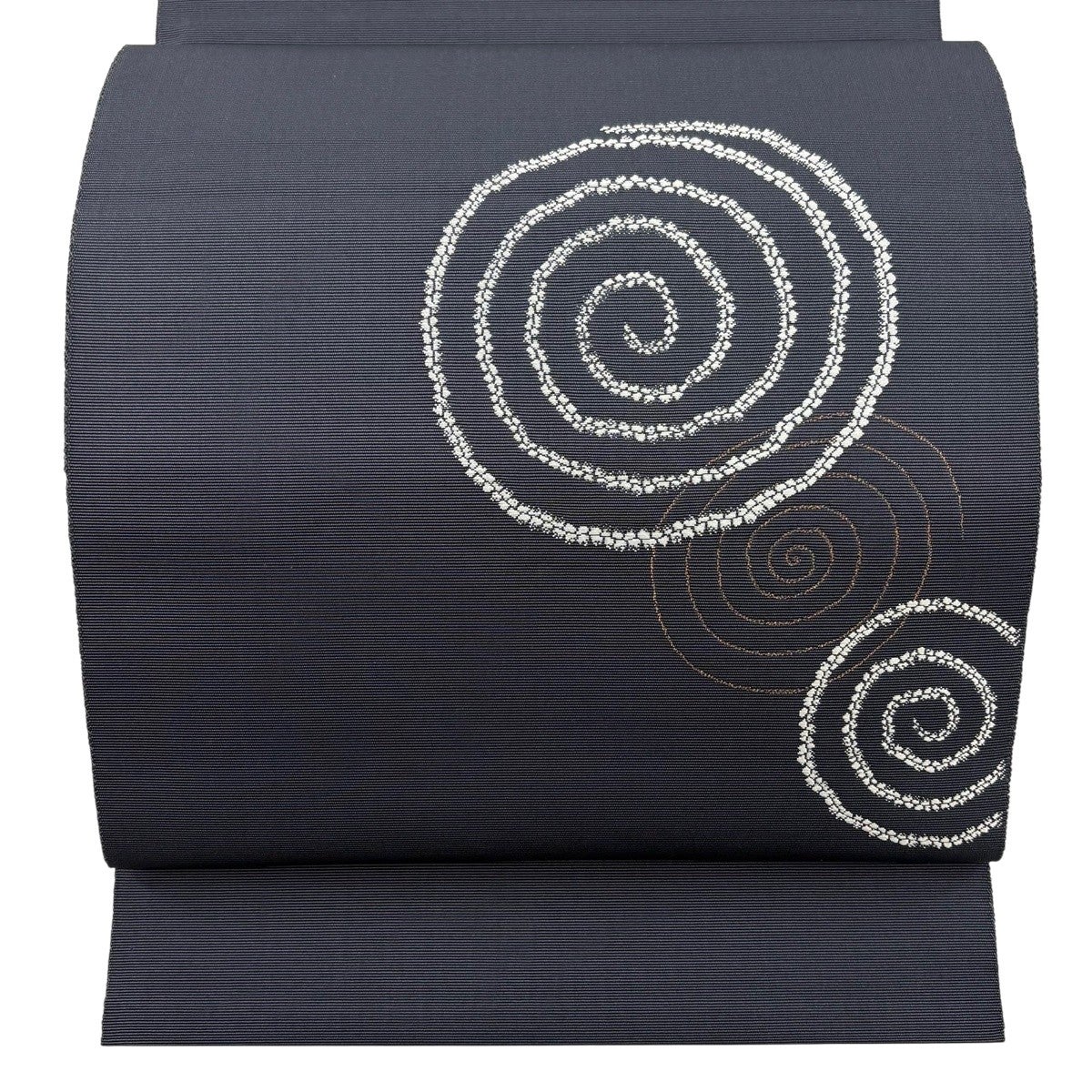 【美品】 名古屋帯 秀品 落款あり 八寸名古屋帯 渦巻き 幾何学 箔 青紫 正絹