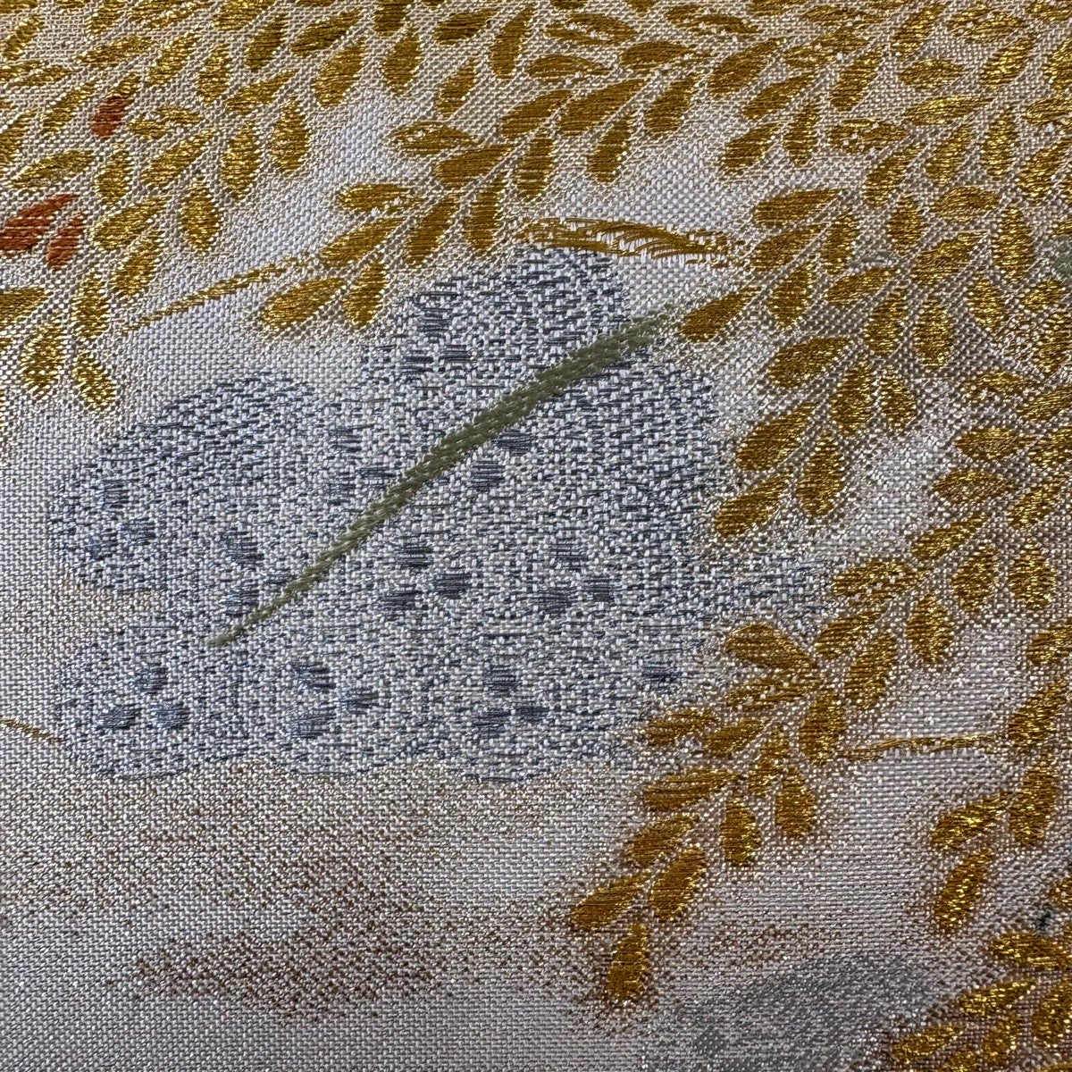 【美品】 袋帯 秀品 夏帯 絽 華文 花喰い鳥 金銀糸 クリーム お太鼓柄 正絹