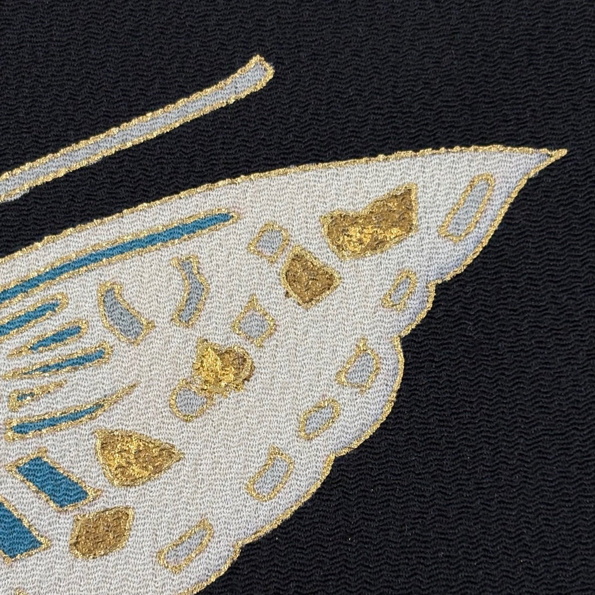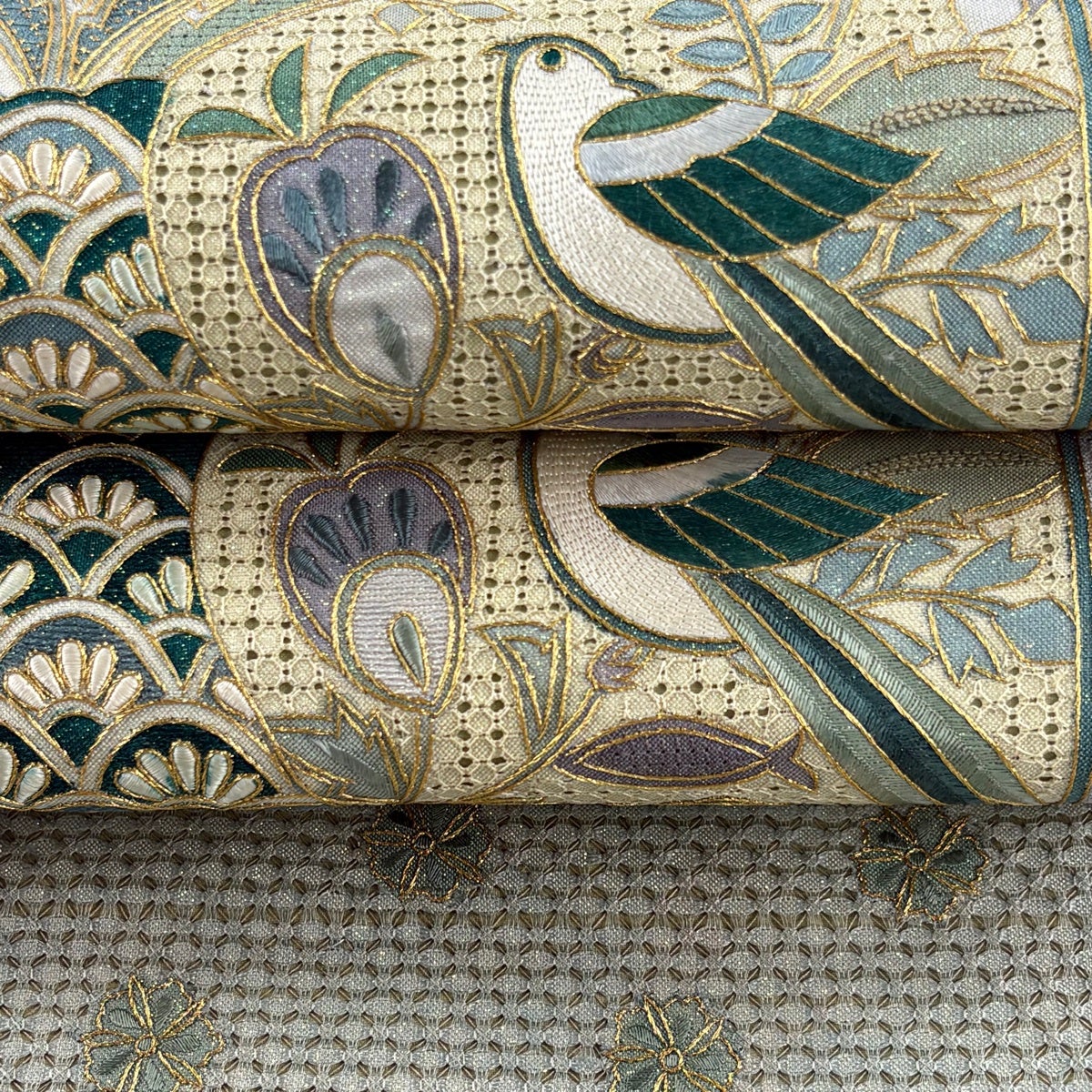 【美品】 袋帯 逸品 華文 向かい鳥 刺繍 金糸 金色 六通 正絹