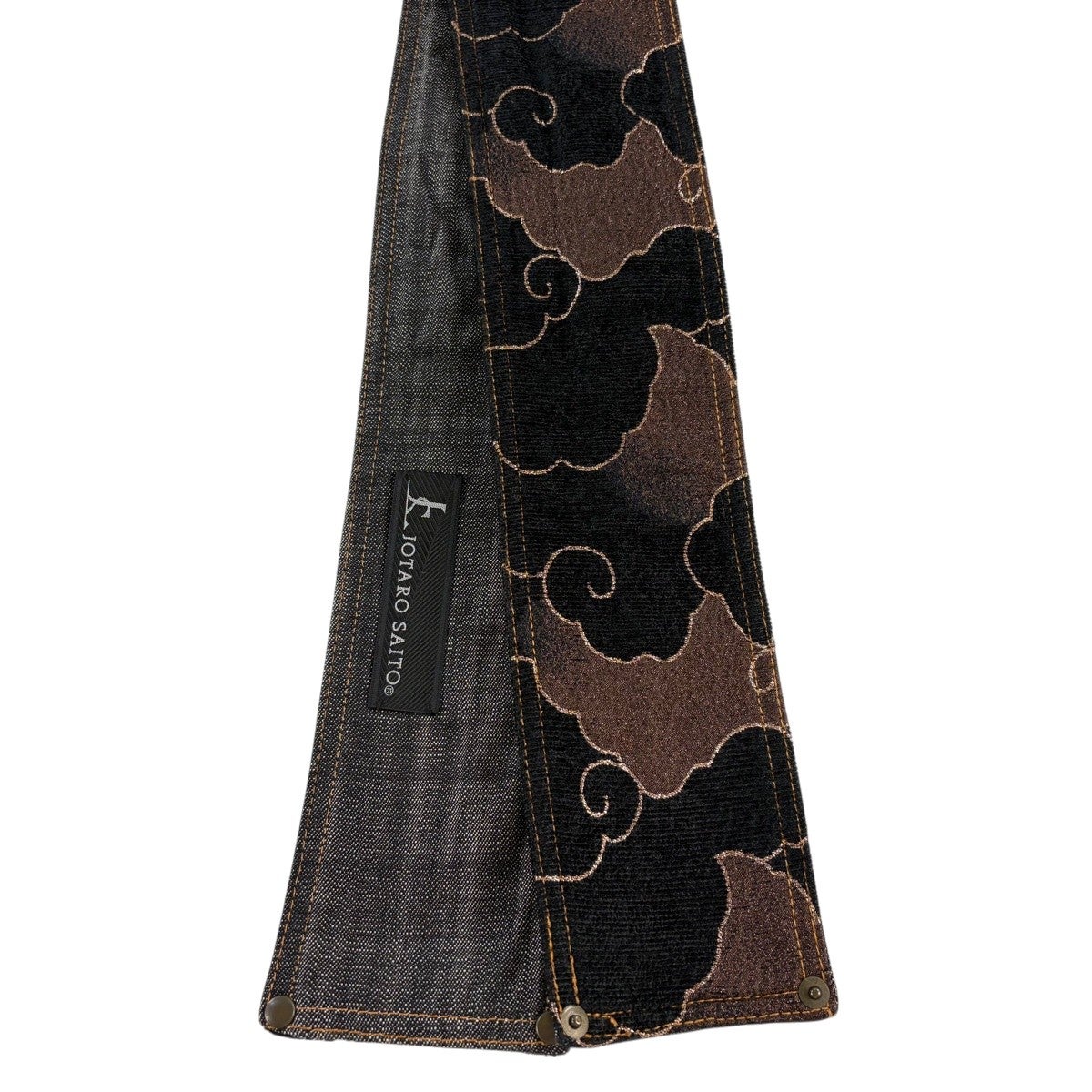 開き名古屋帯 秀品 やまと 風車 金彩 焦茶色 正絹