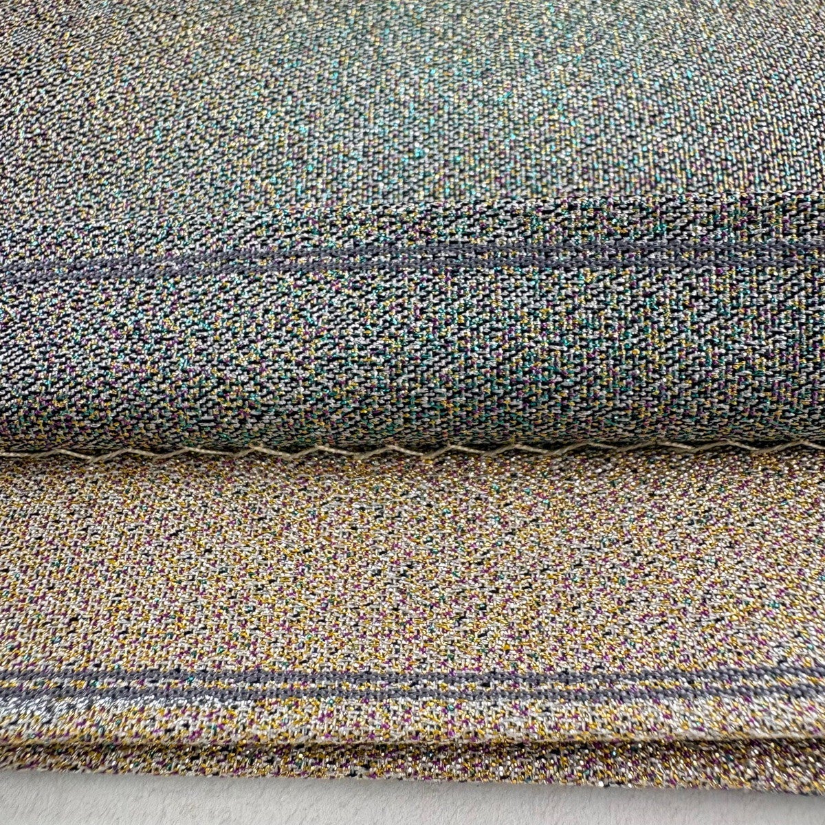 【美品】 袋帯 秀品 辻が花柄 よろけ縞 金糸 箔 銀色 六通 正絹