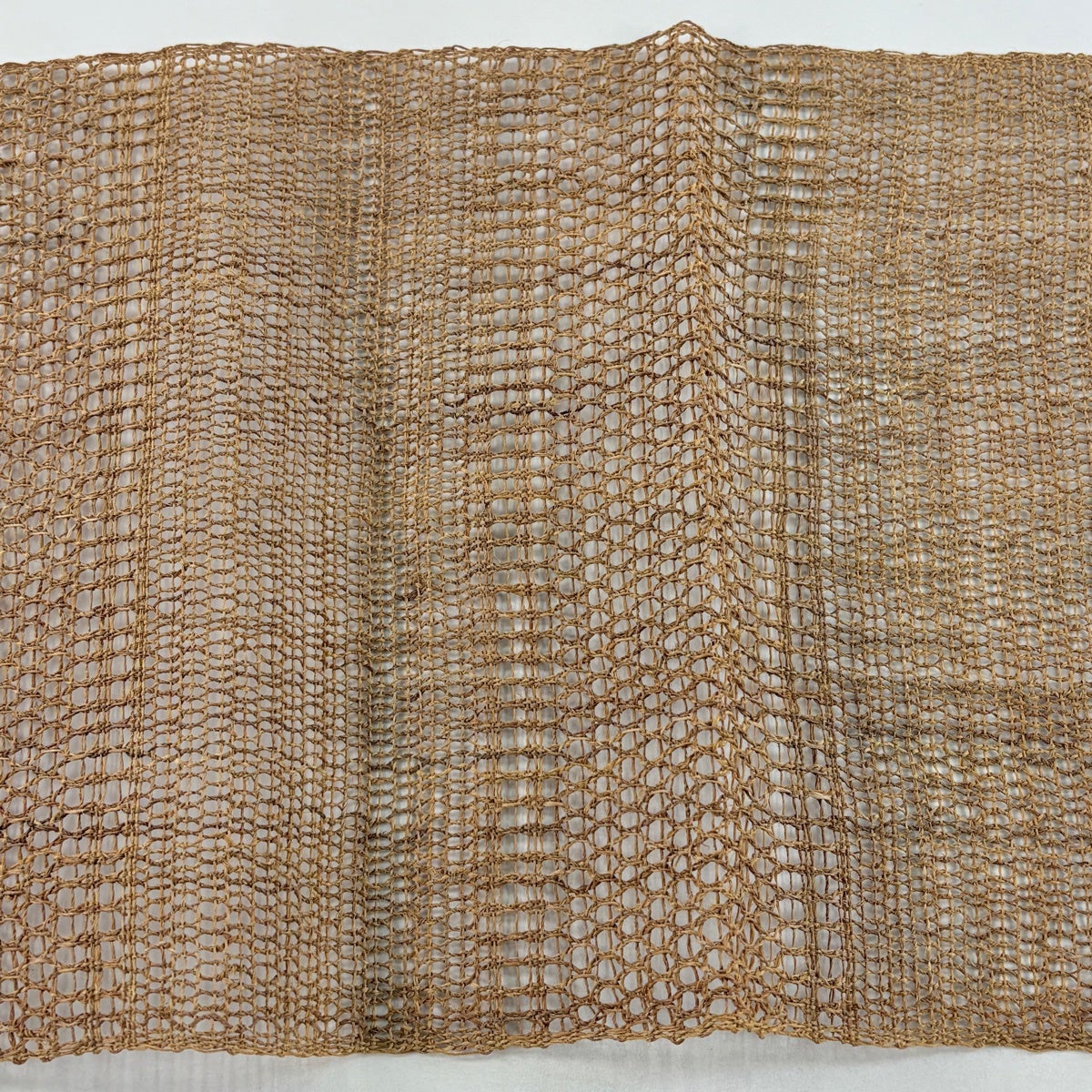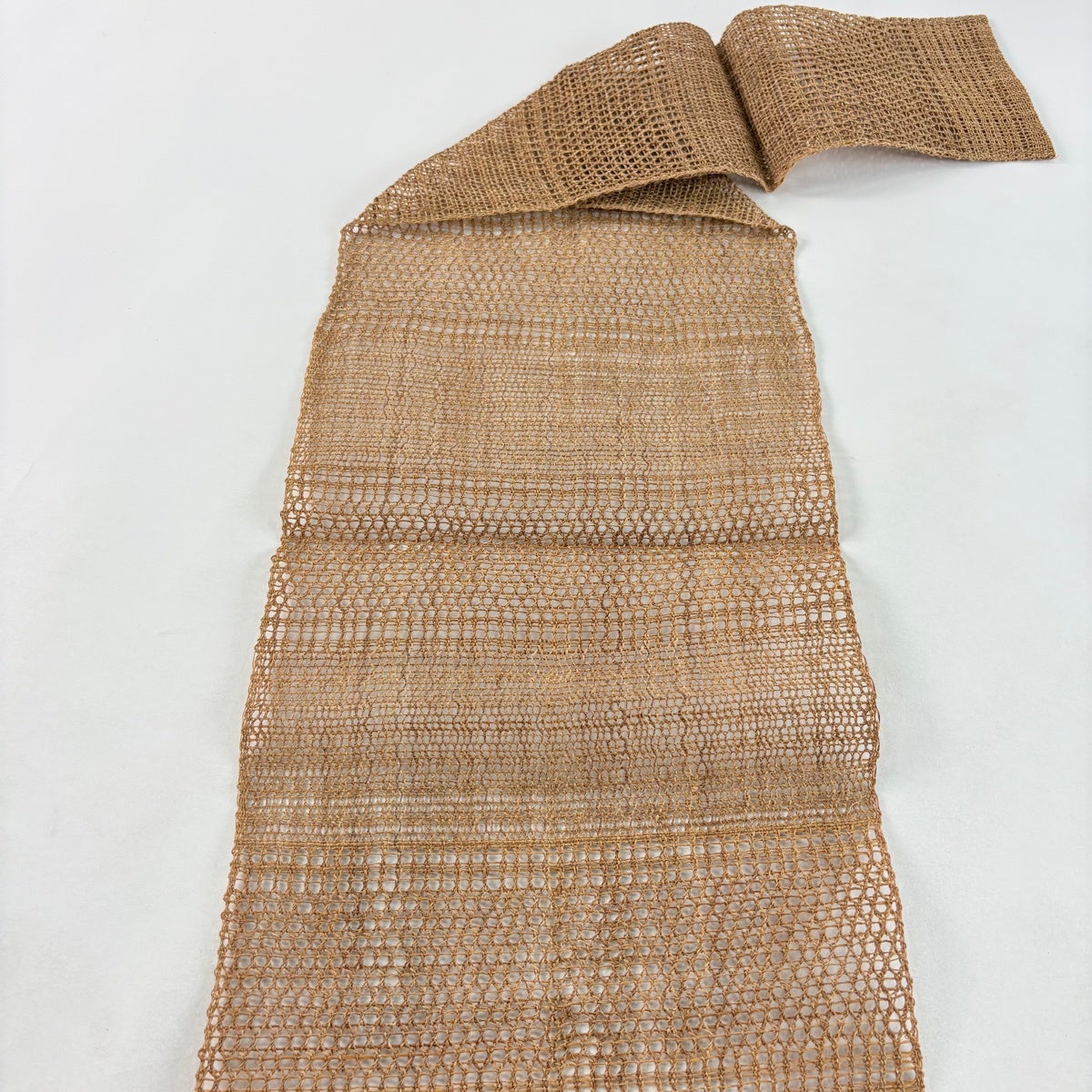 名古屋帯 名品 夏帯 羅 トンネル仕立て 八寸名古屋帯 松葉仕立て 幾何学模様 茶色 麻