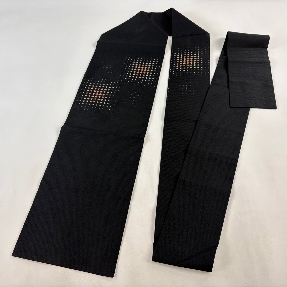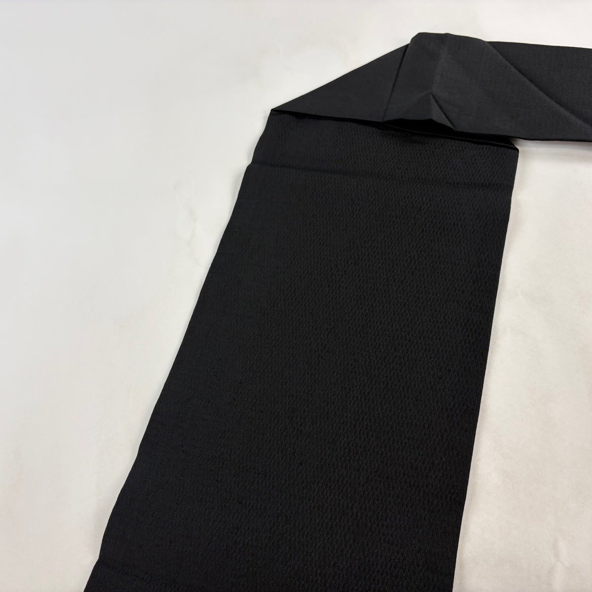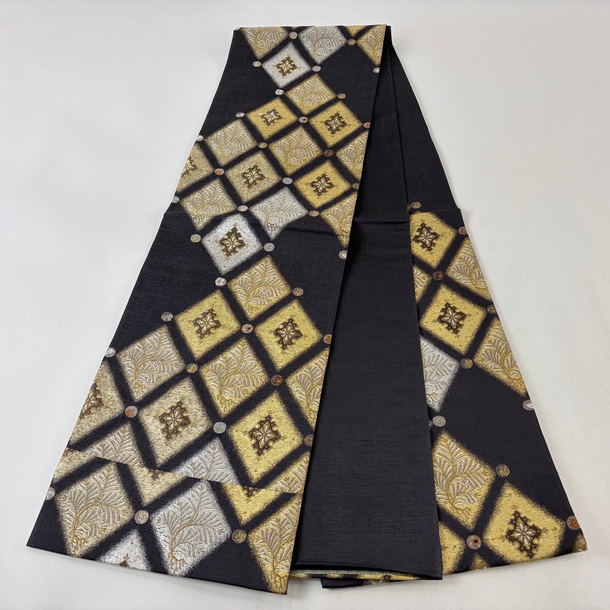 【美品】 名古屋帯 秀品 紬地 菱 刺繍 黒 正絹