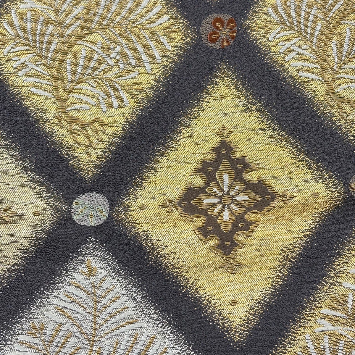 【美品】 袋帯 秀品 鎧威 有職文様 金銀糸 黒 六通 正絹