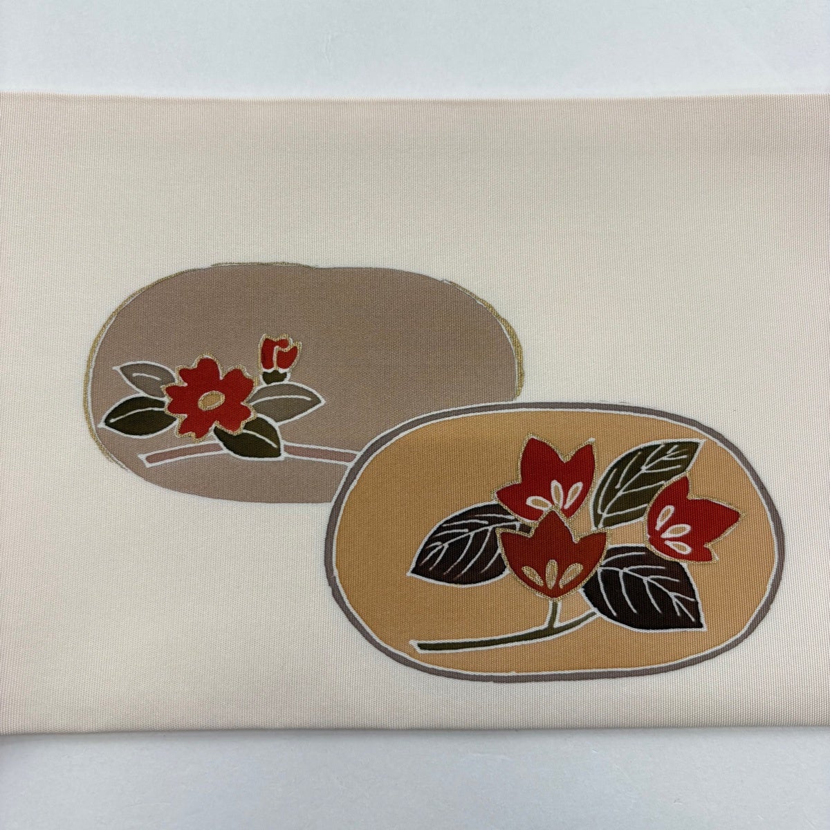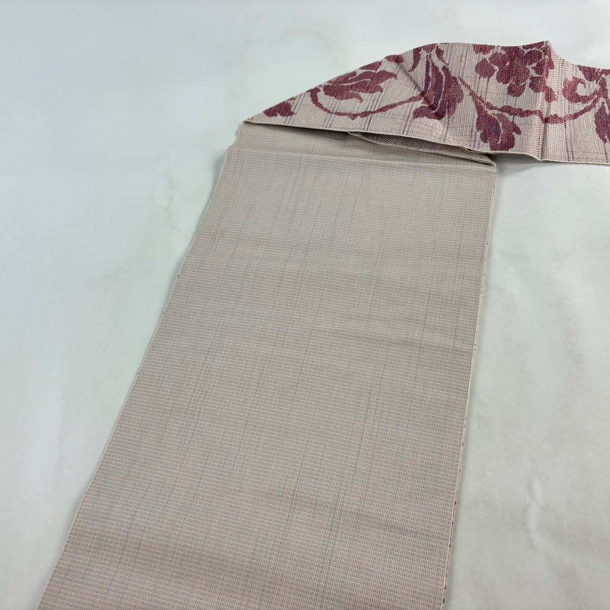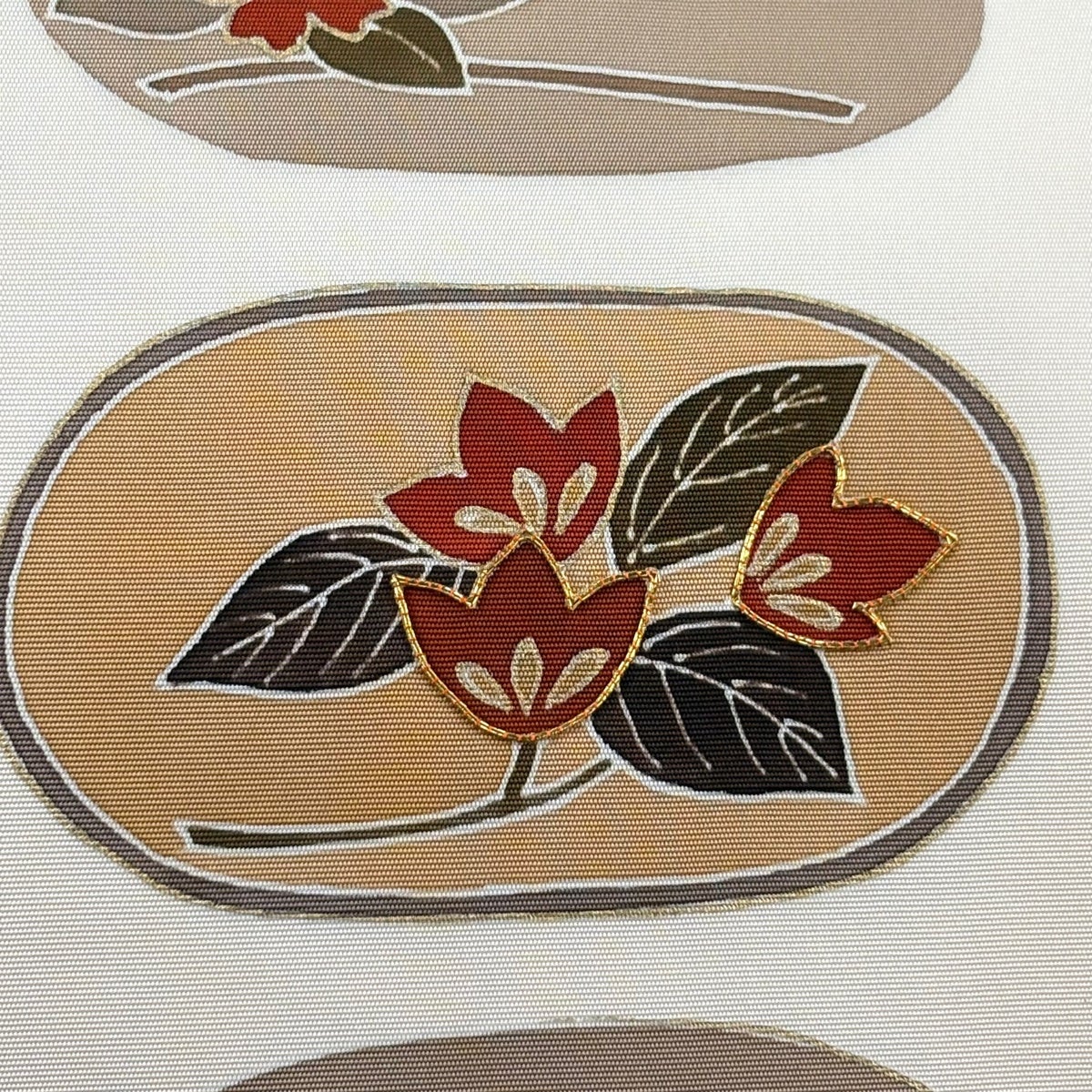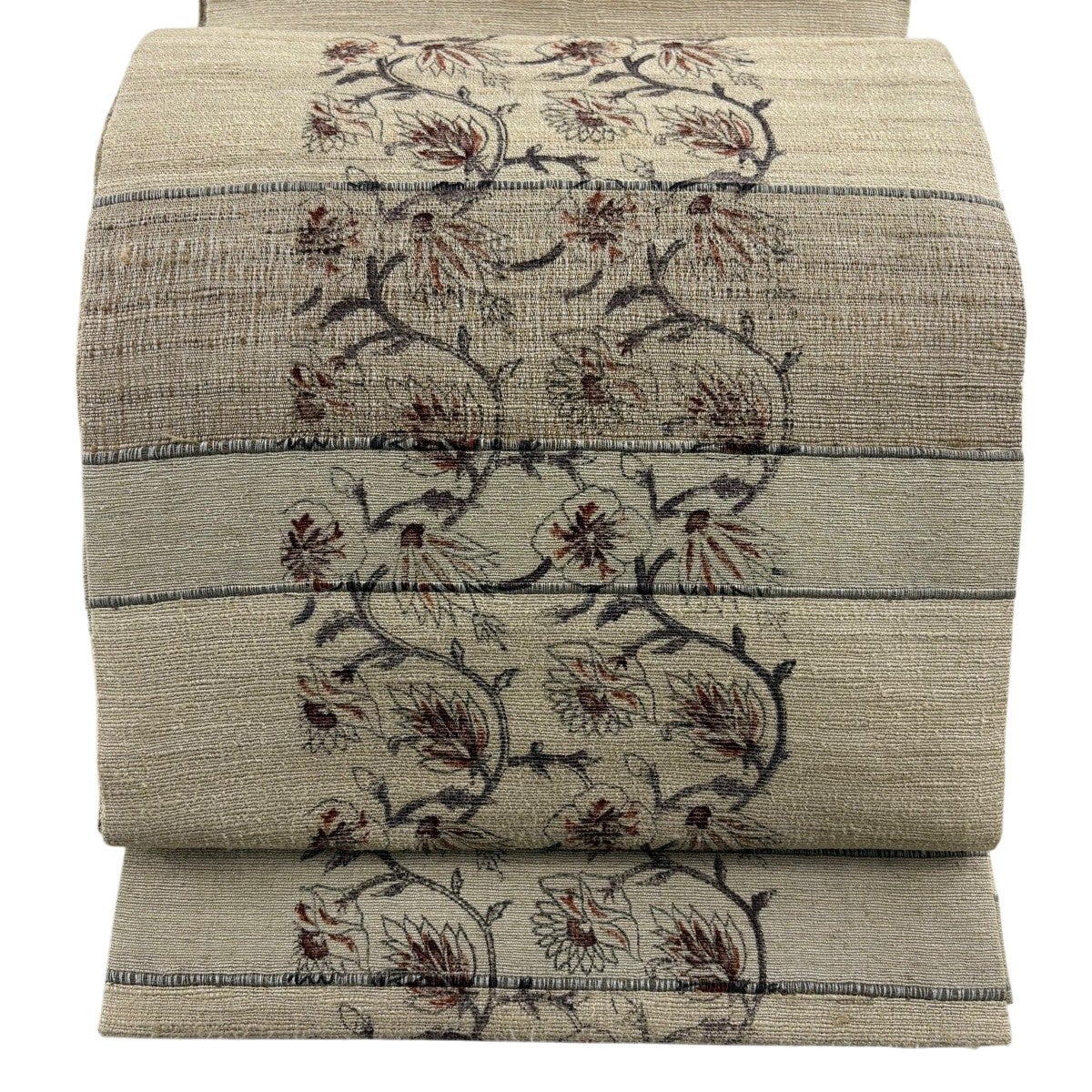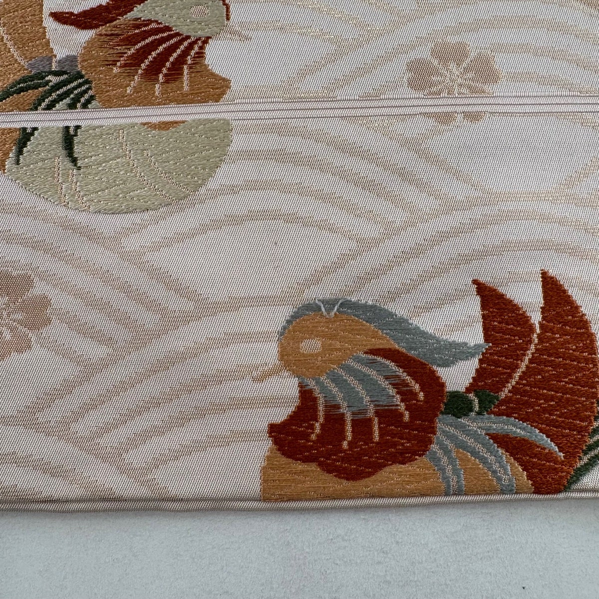 名古屋帯 秀品 夏帯 草花 ベージュ 正絹