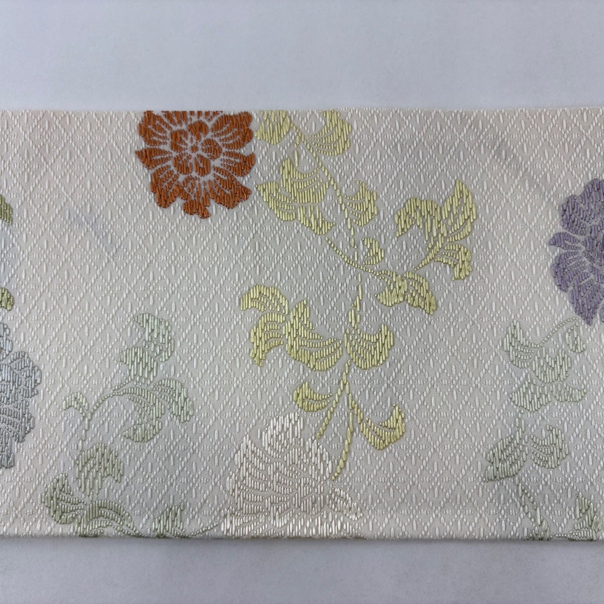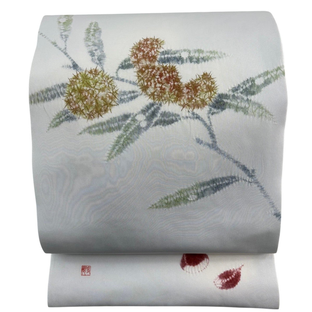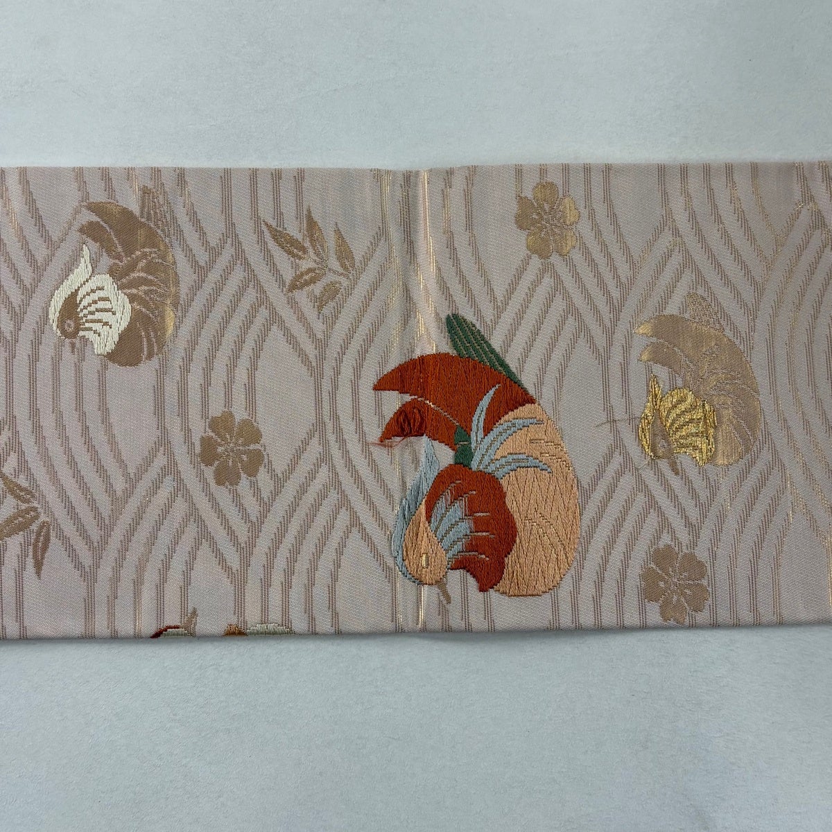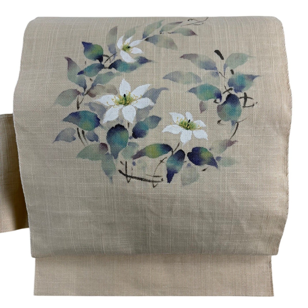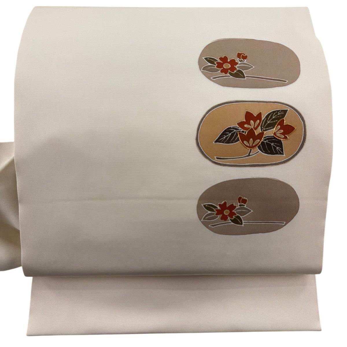 名古屋帯 秀品 夏帯 草花 ベージュ 正絹