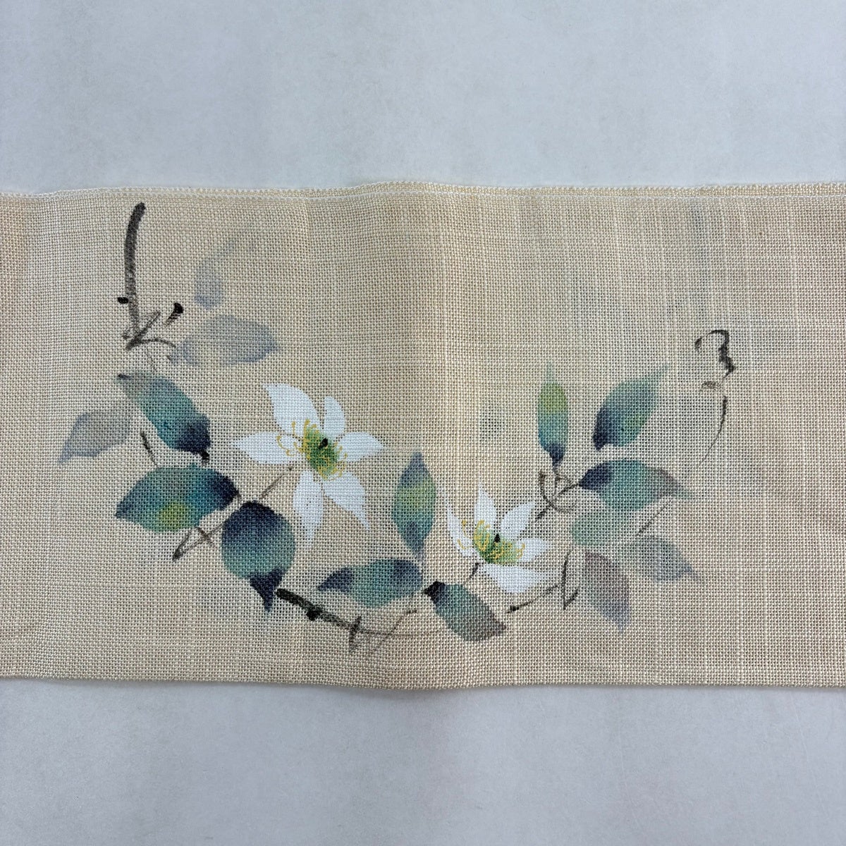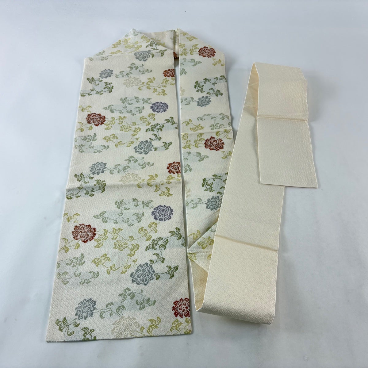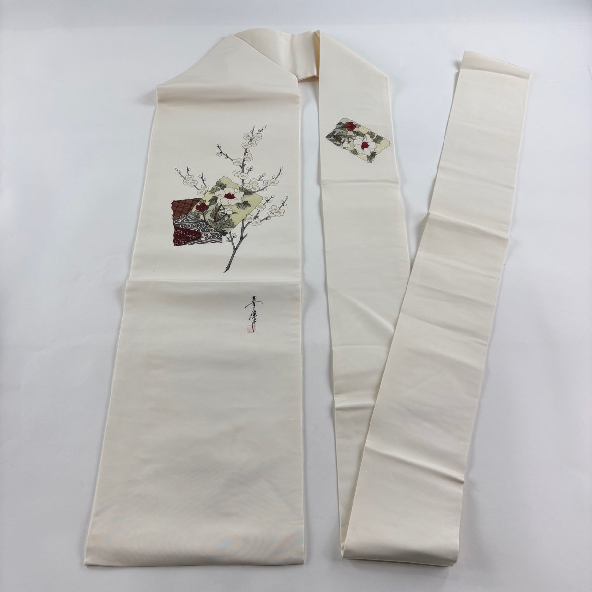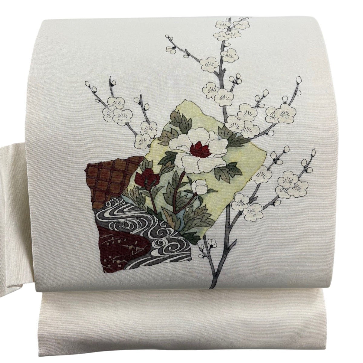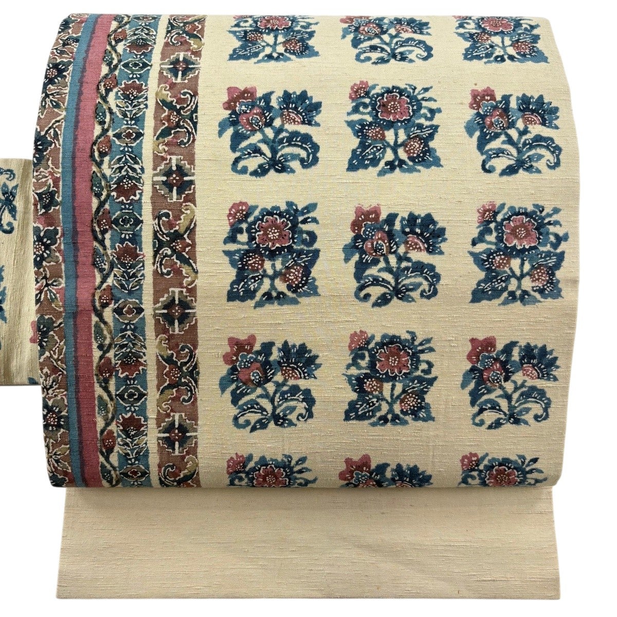 名古屋帯 秀品 夏帯 草花 ベージュ 正絹