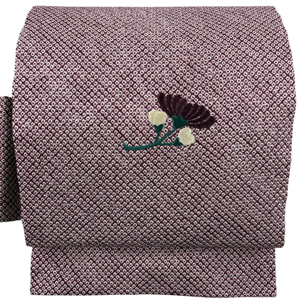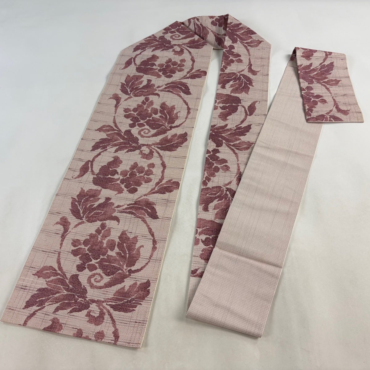 【美品】 名古屋帯 秀品 八寸名古屋帯 花唐草 薄小豆 正絹