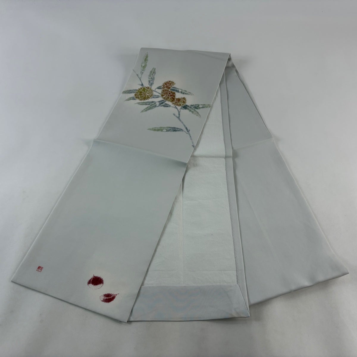 【美品】 開き名古屋帯 秀品 落款あり 栗 絞り 薄緑 正絹