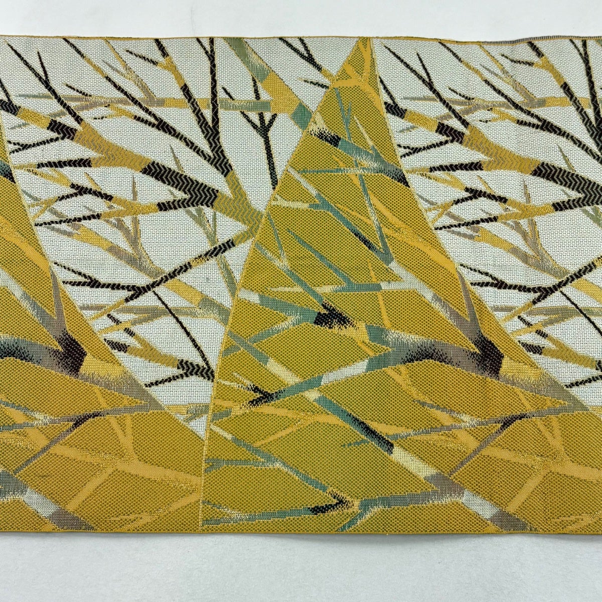 【美品】 名古屋帯 優品 八寸名古屋帯 松葉仕立て 樹木 金糸 山吹茶色 正絹