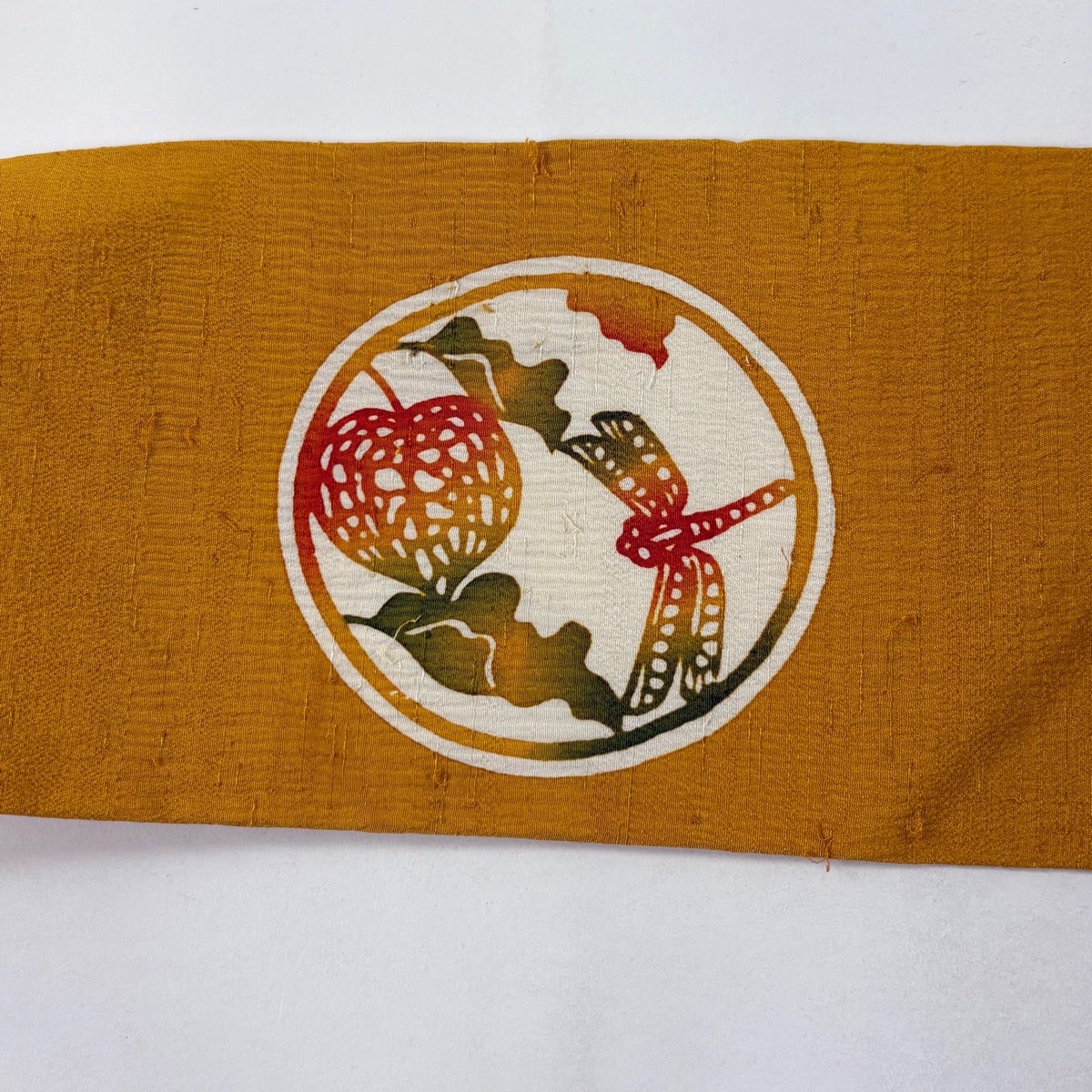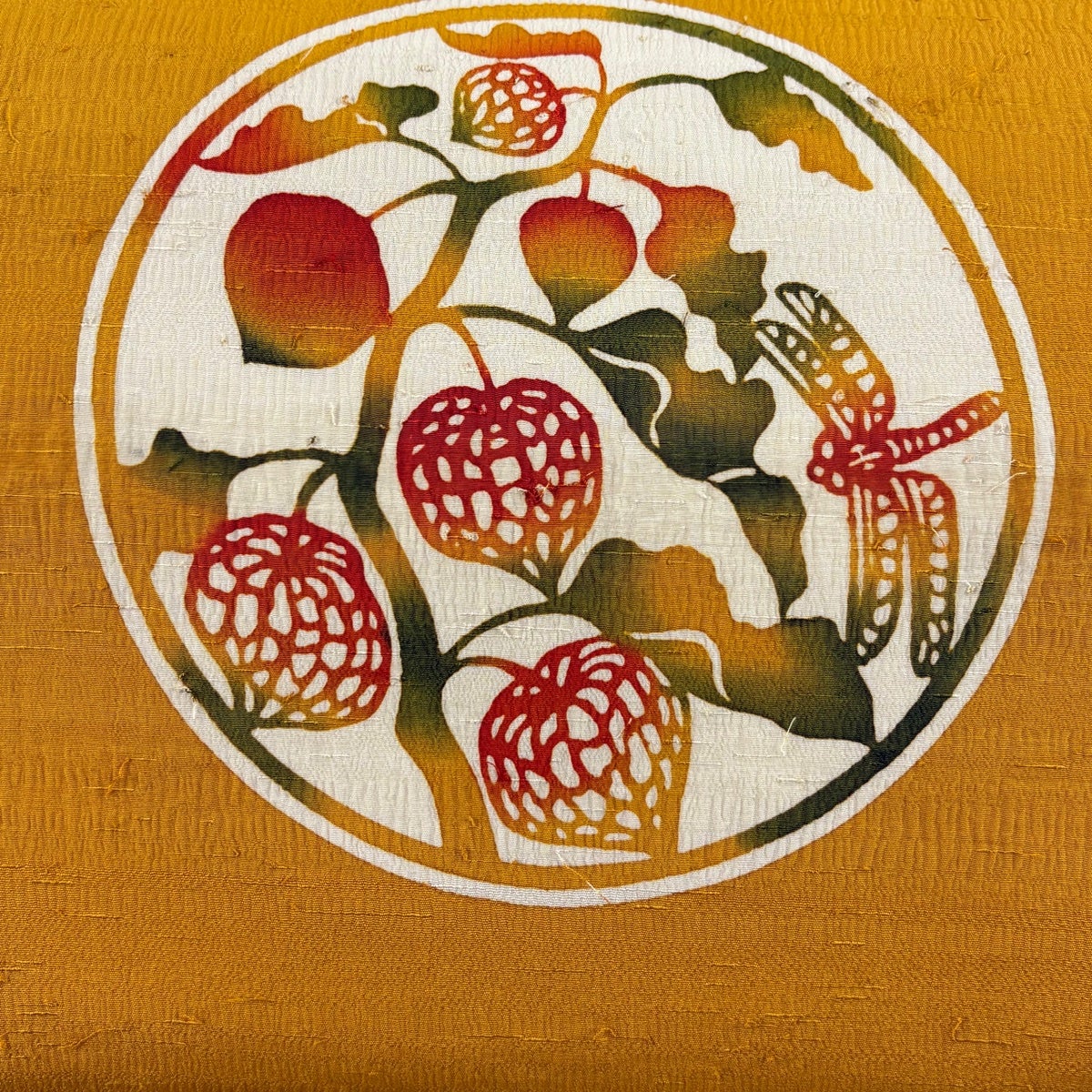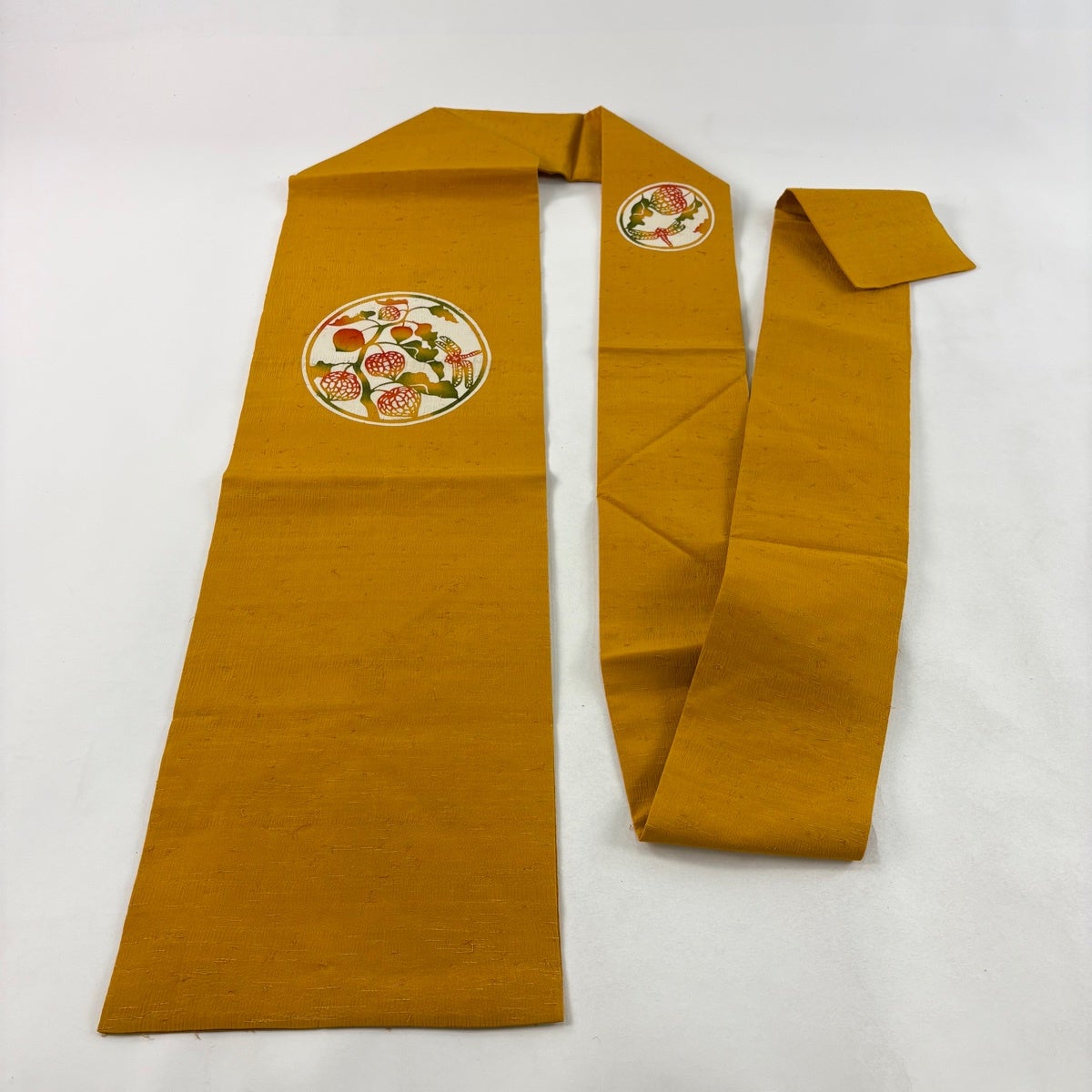 【美品】 名古屋帯 優品 ホオズキ 紬地 山吹色 正絹