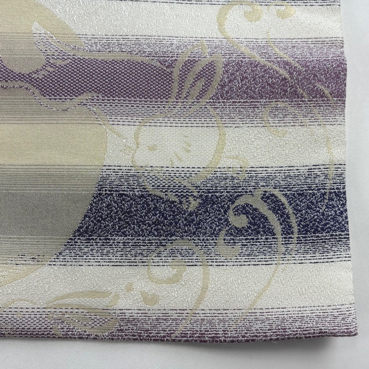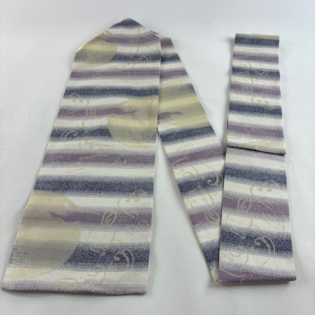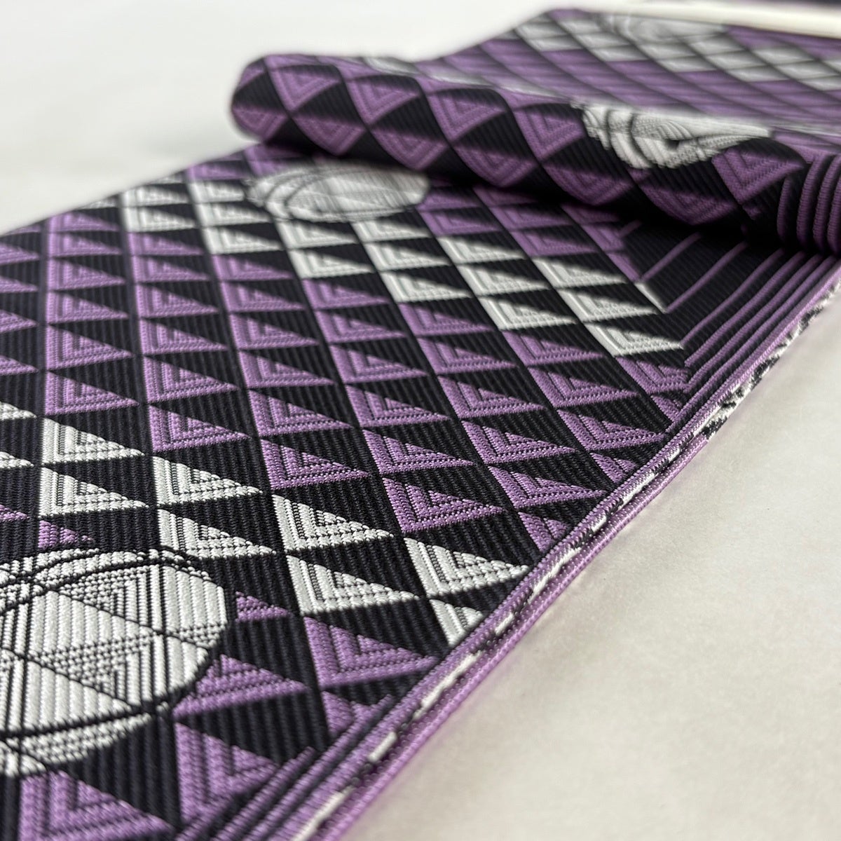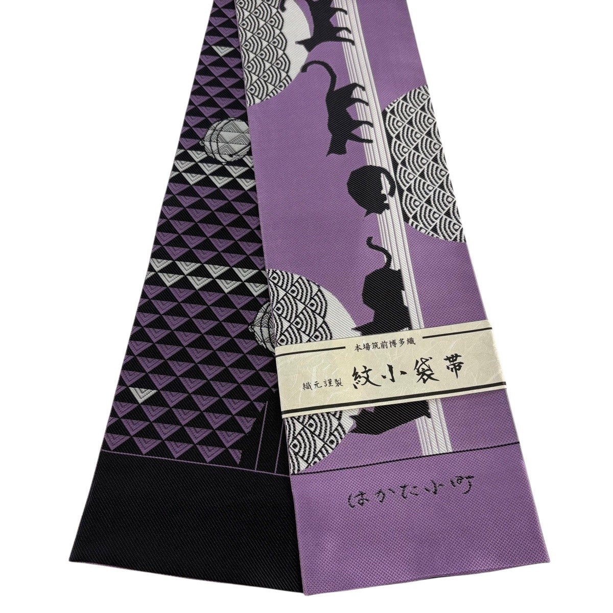 【美品】半幅帯 逸品 本場筑前博多織 はかた小町 猫 青海波 薄紫 正絹
