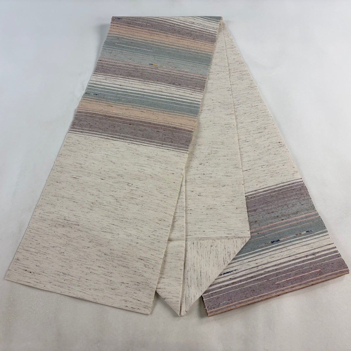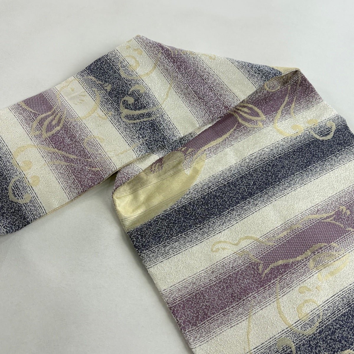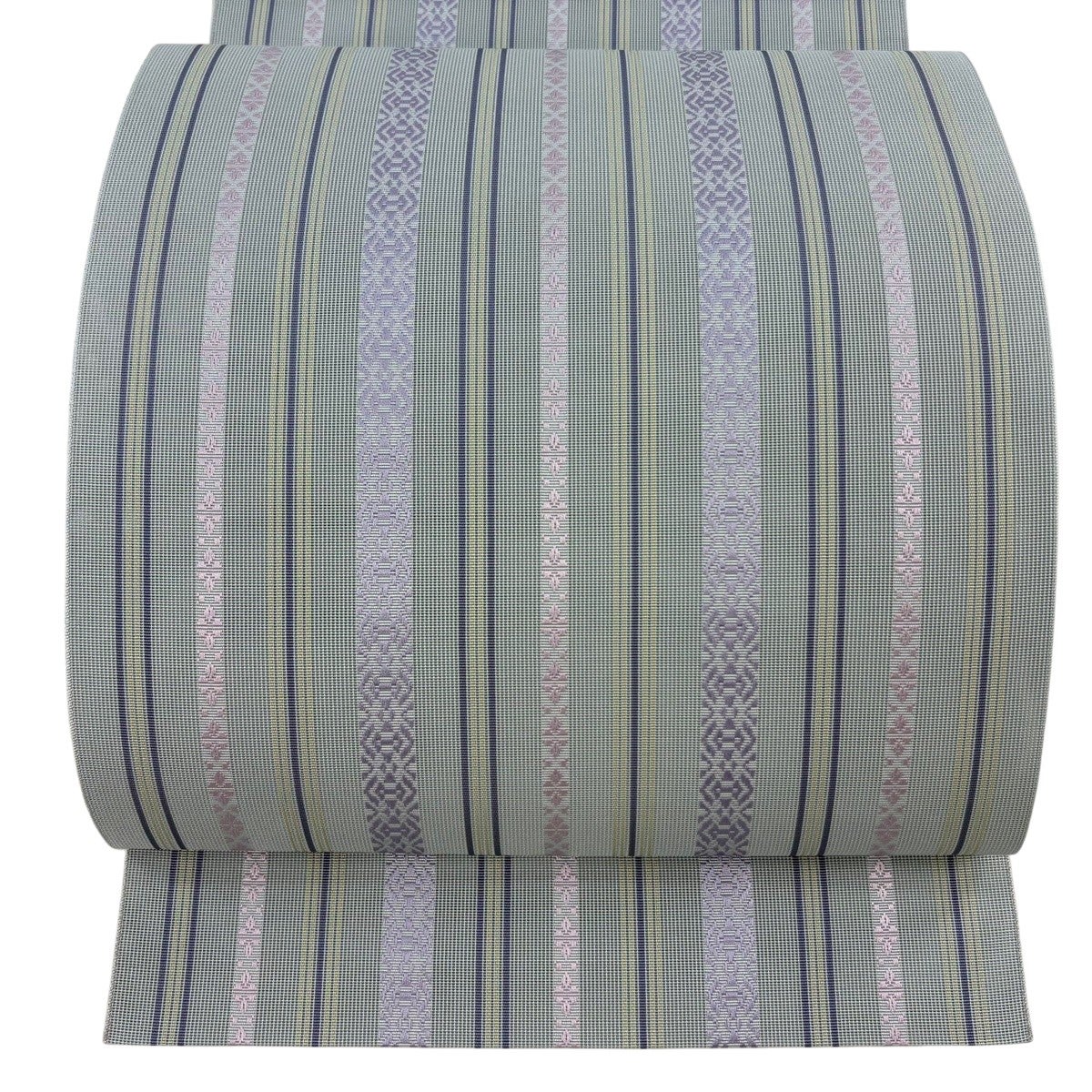 名古屋帯 名品 夏帯 八寸名古屋帯 縦縞 紫 正絹