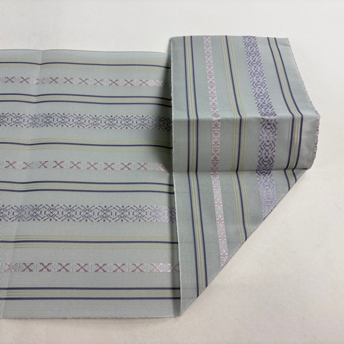 袋帯 名品 金華山織 華文 菱 螺鈿箔 銀糸 水色 お太鼓柄 正絹
