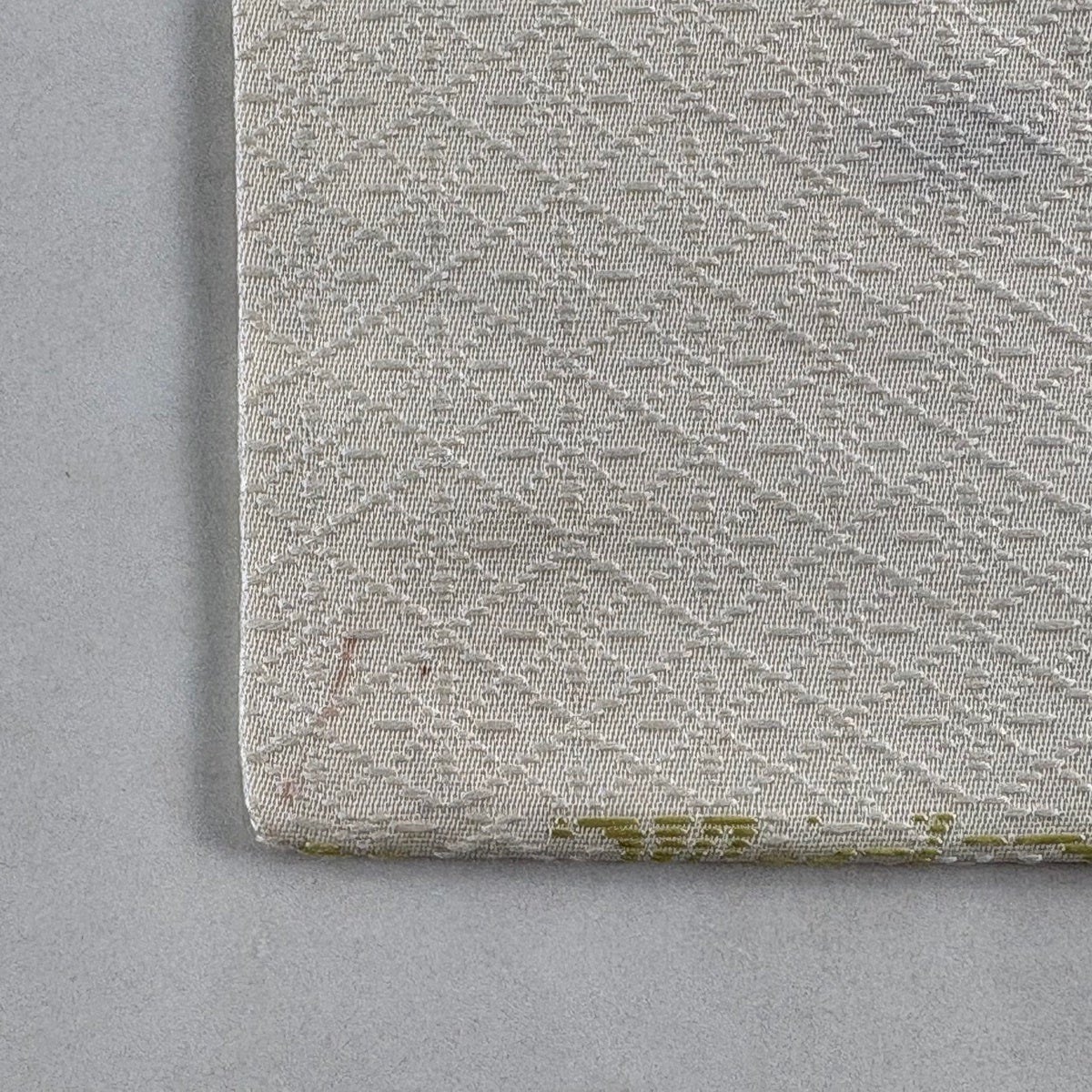 袋帯 秀品 夏帯 草花 幾何学 金銀糸 相良刺繍 灰緑 お太鼓柄 正絹