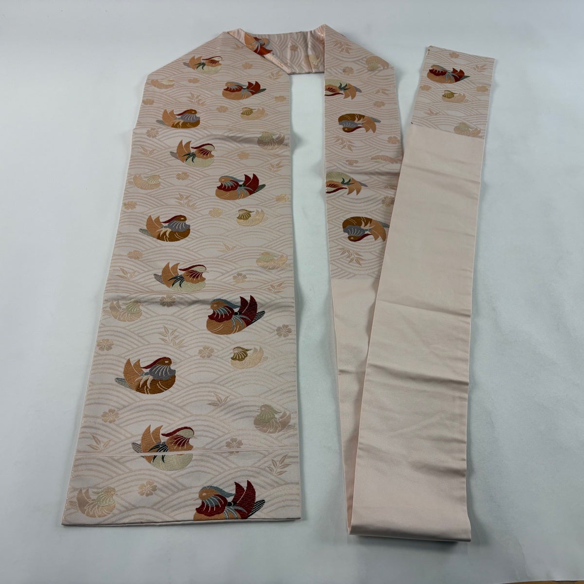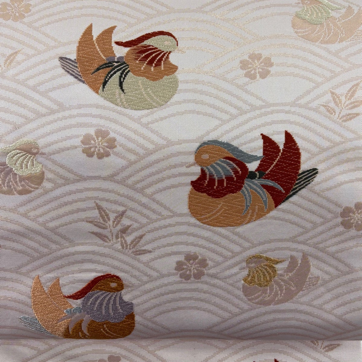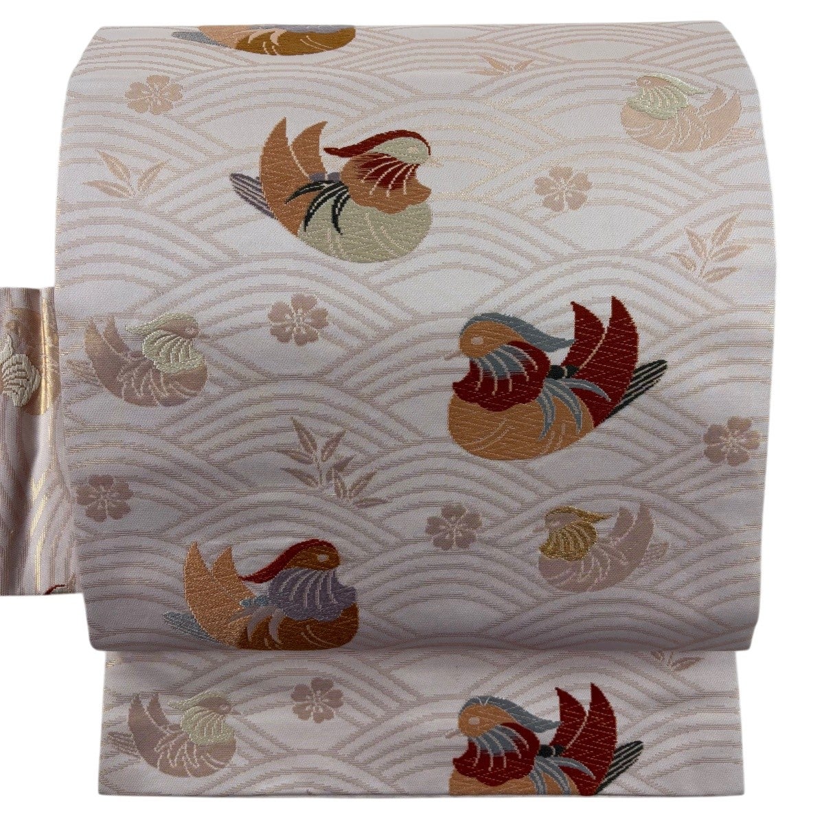 袋帯 秀品 華文 向かい鳥 金糸 箔 金色 六通 正絹