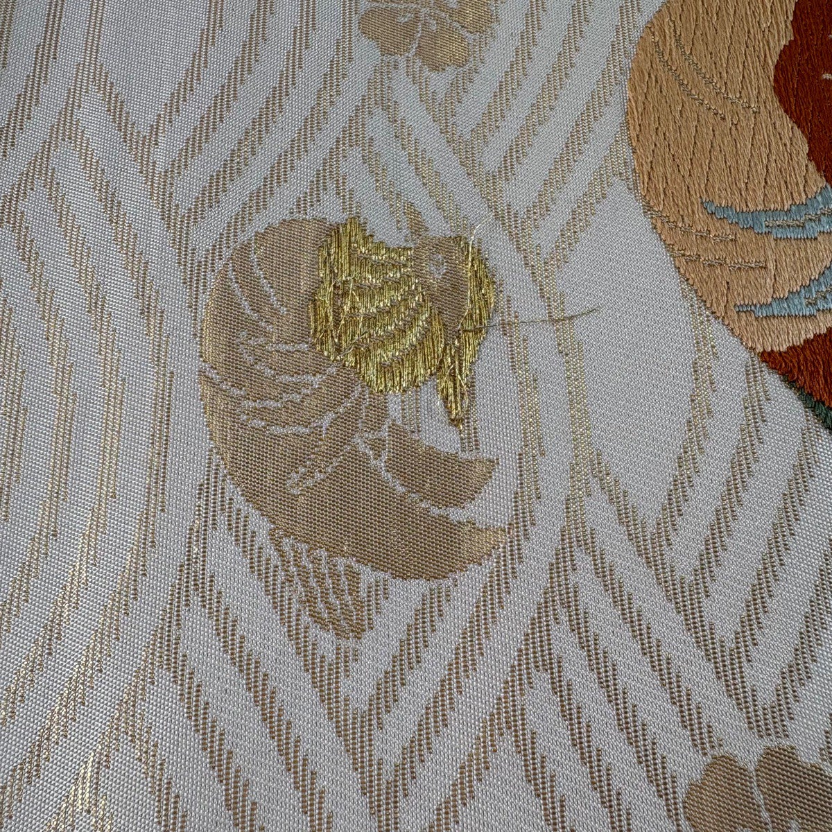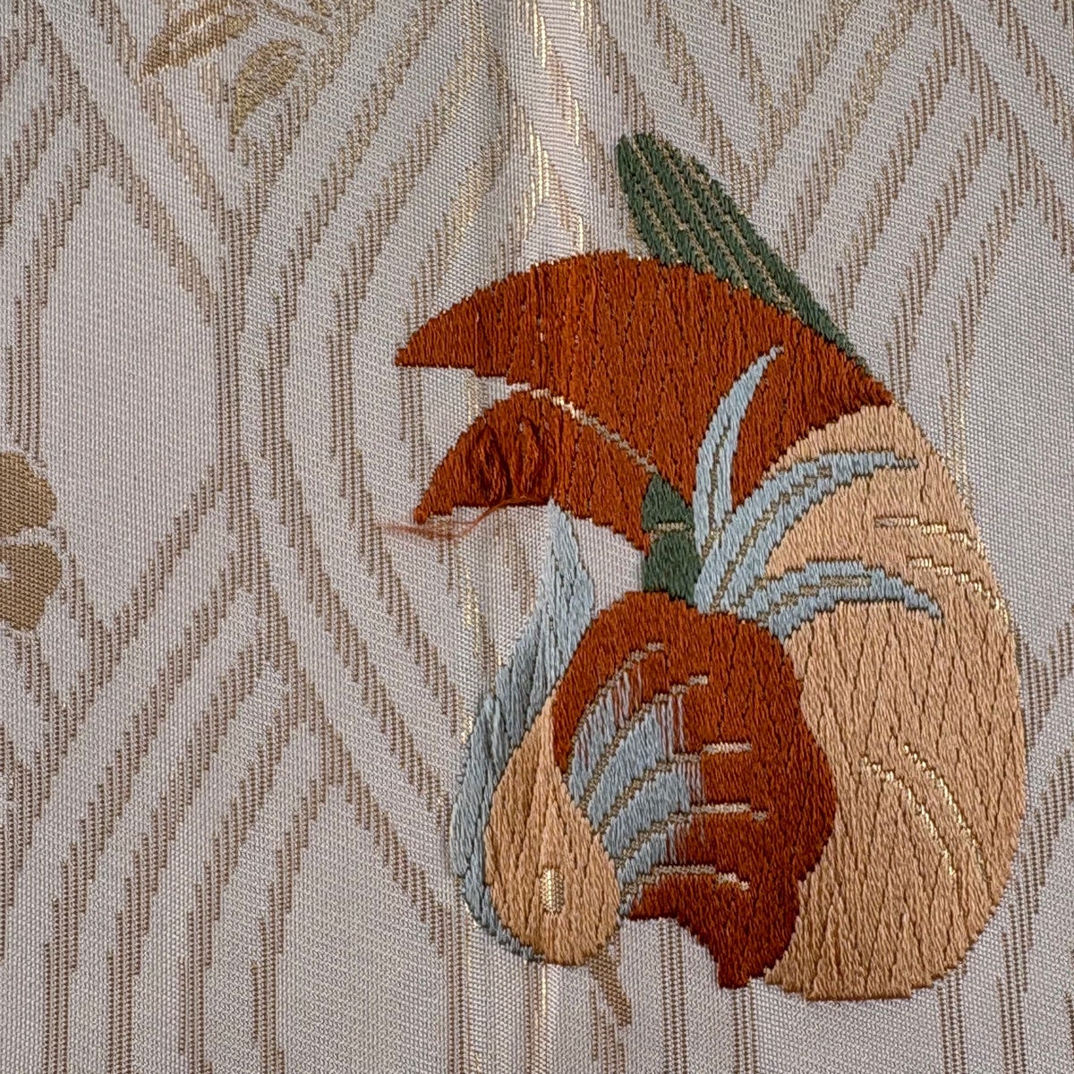 袋帯 秀品 葉と実 シルエット 金糸 銀通し クリーム 全通 正絹