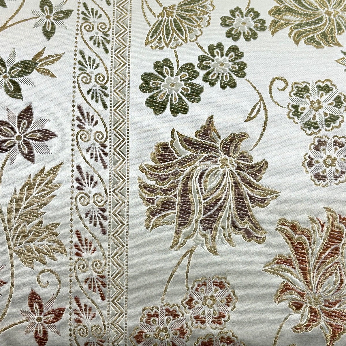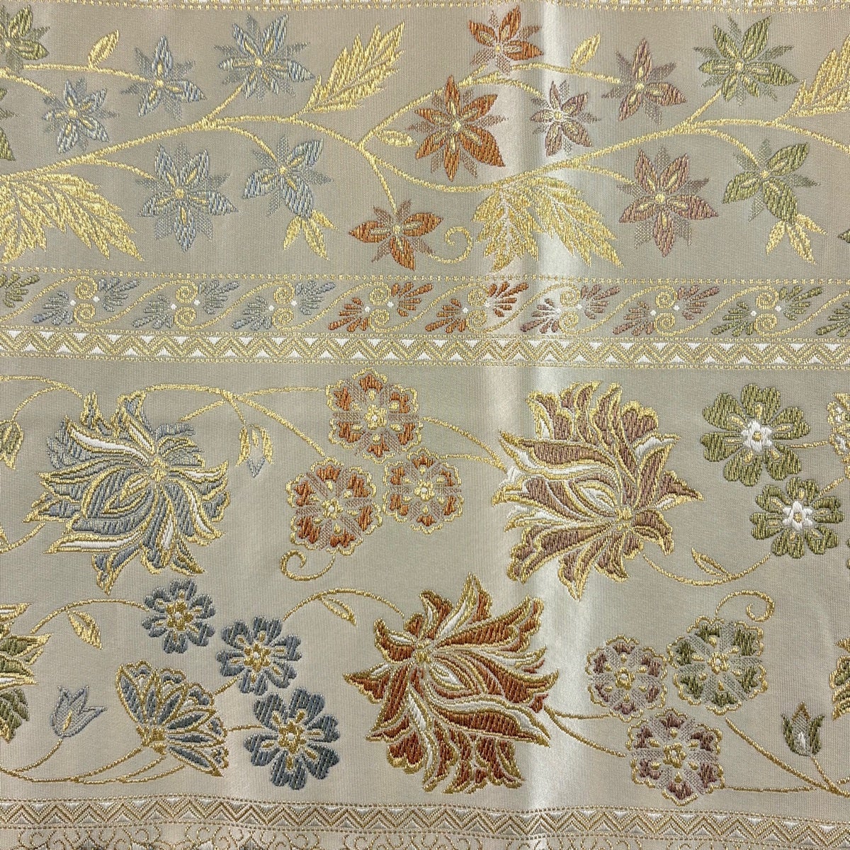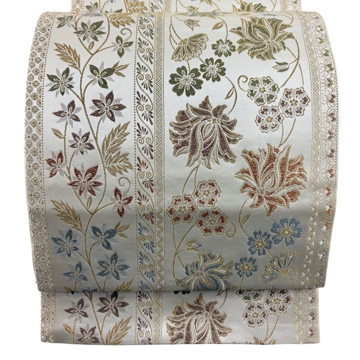 【美品】 袋帯 名品 鈴乃屋 華文 花 箔 クリーム 全通 正絹