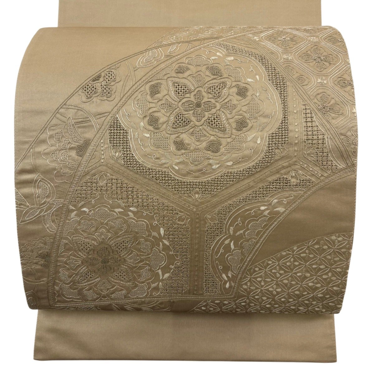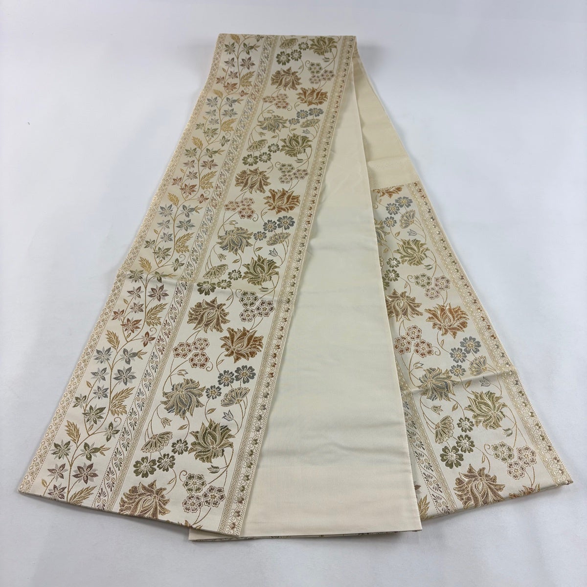 【美品】 袋帯 名品 草花 金糸 ベージュ 六通 正絹