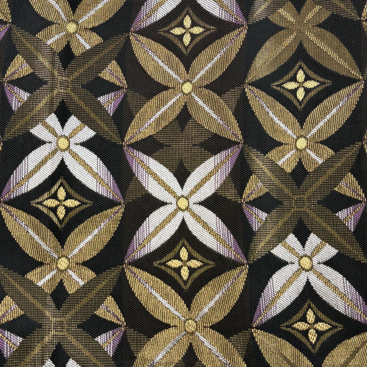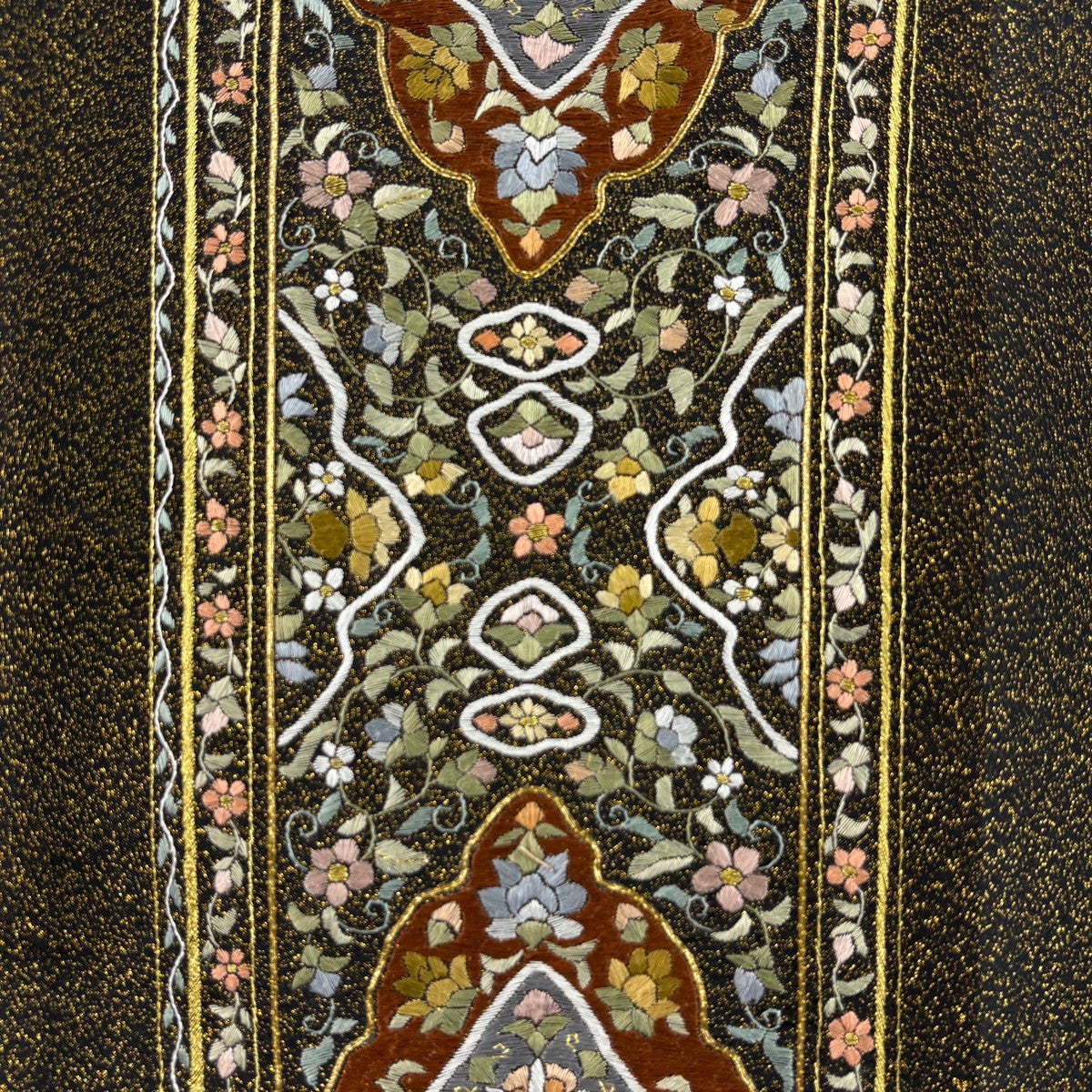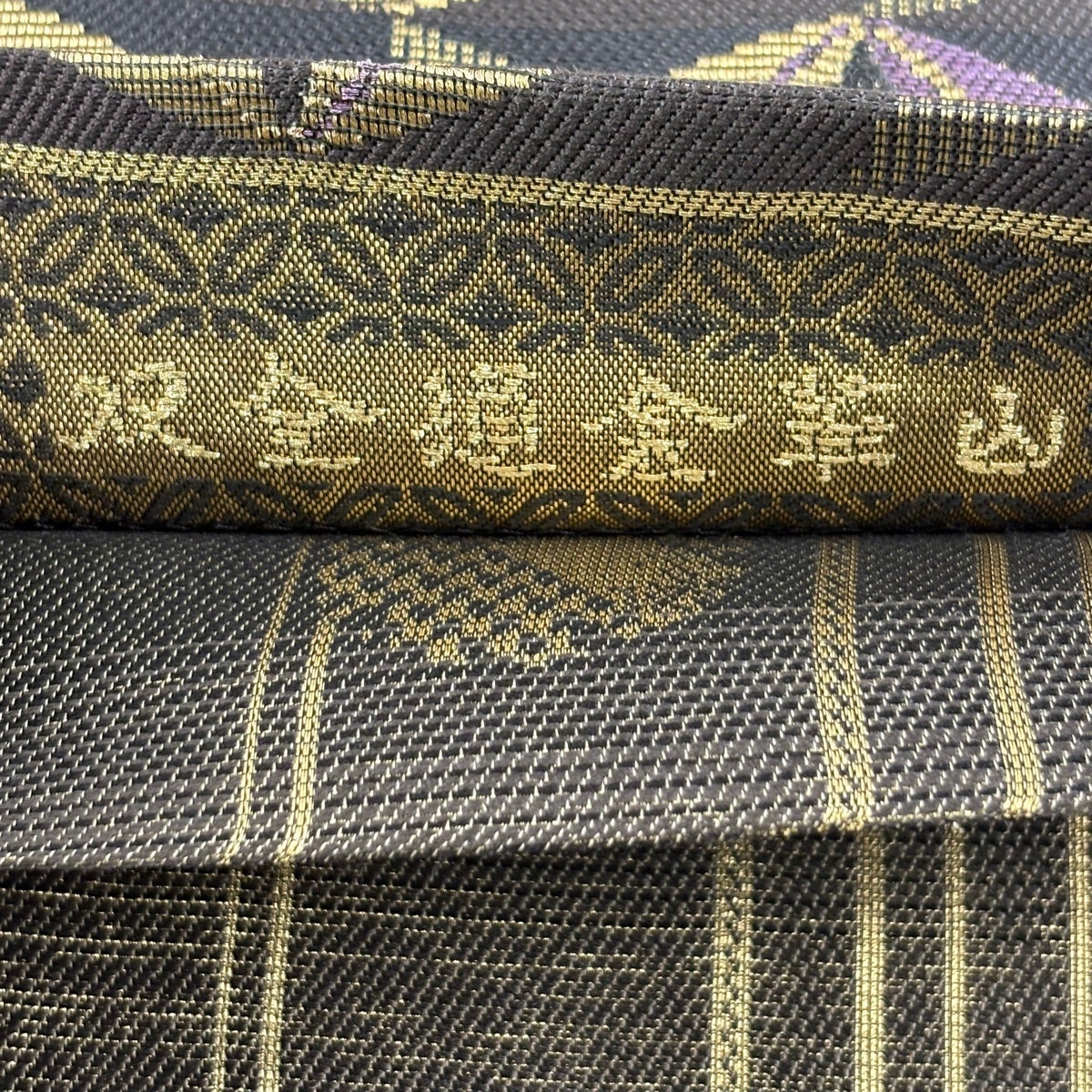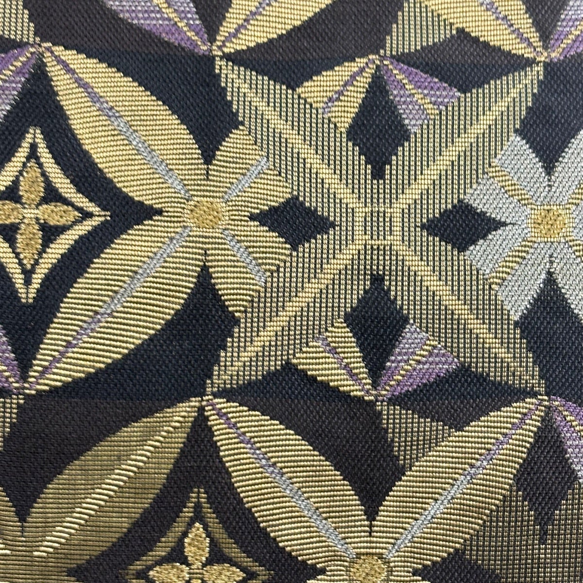 【美品】 袋帯 名品 花菱 花唐草 刺繍 金通し 黒 お太鼓柄 正絹