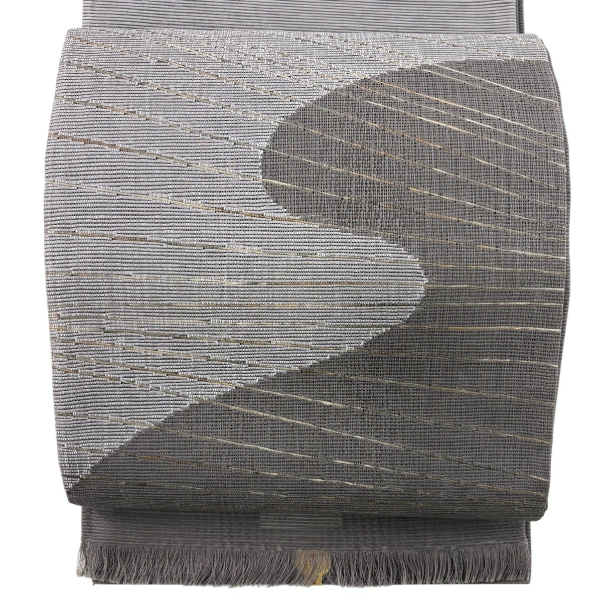 袋帯 秀品 夏帯 絽 菱 縞 青灰色 六通 正絹